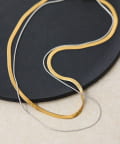 ・スネークと平たいチェーンのバイカラー2連ネックレス