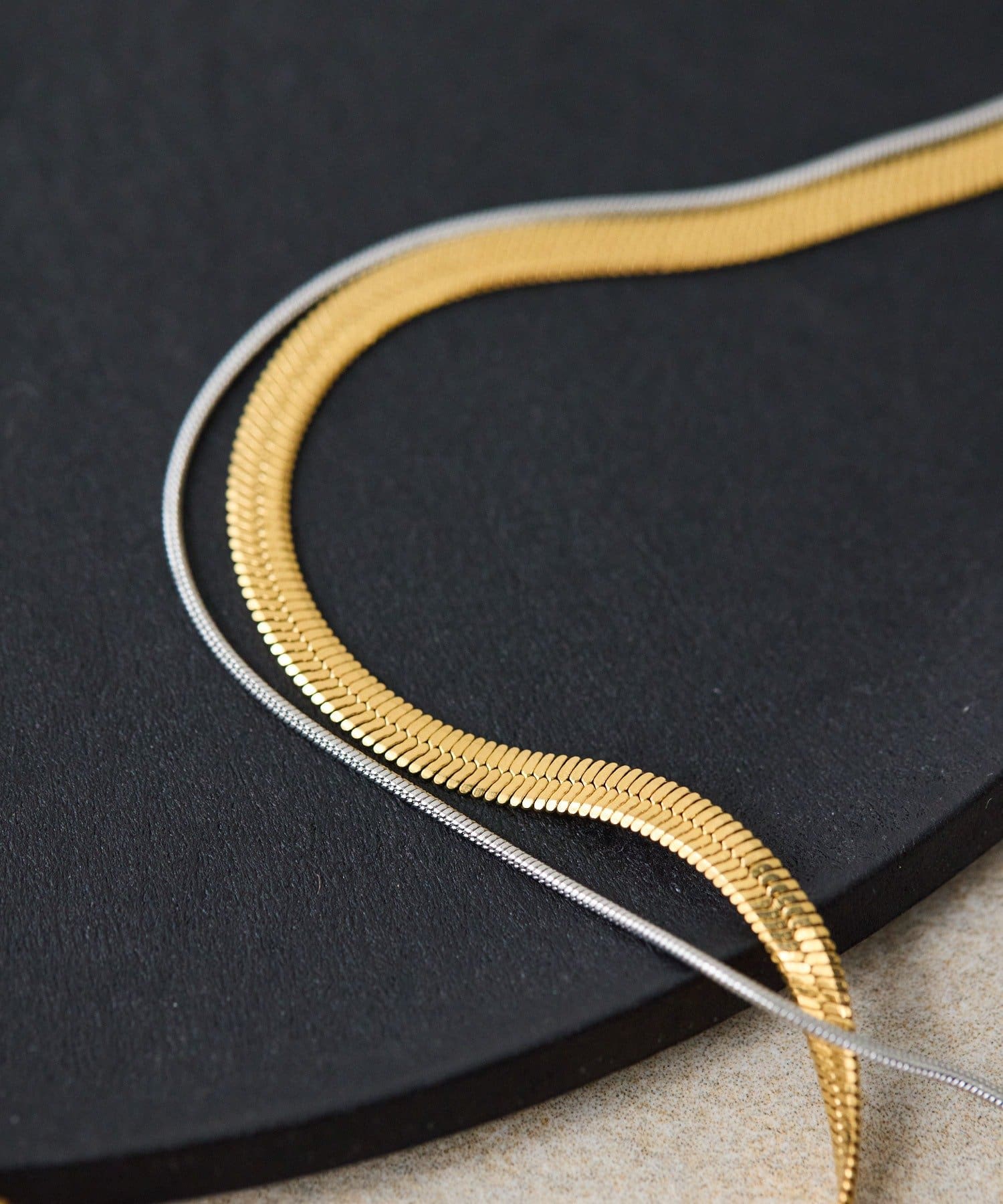 スネークチェーンとフラットチェーンの組み合わせが