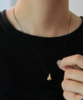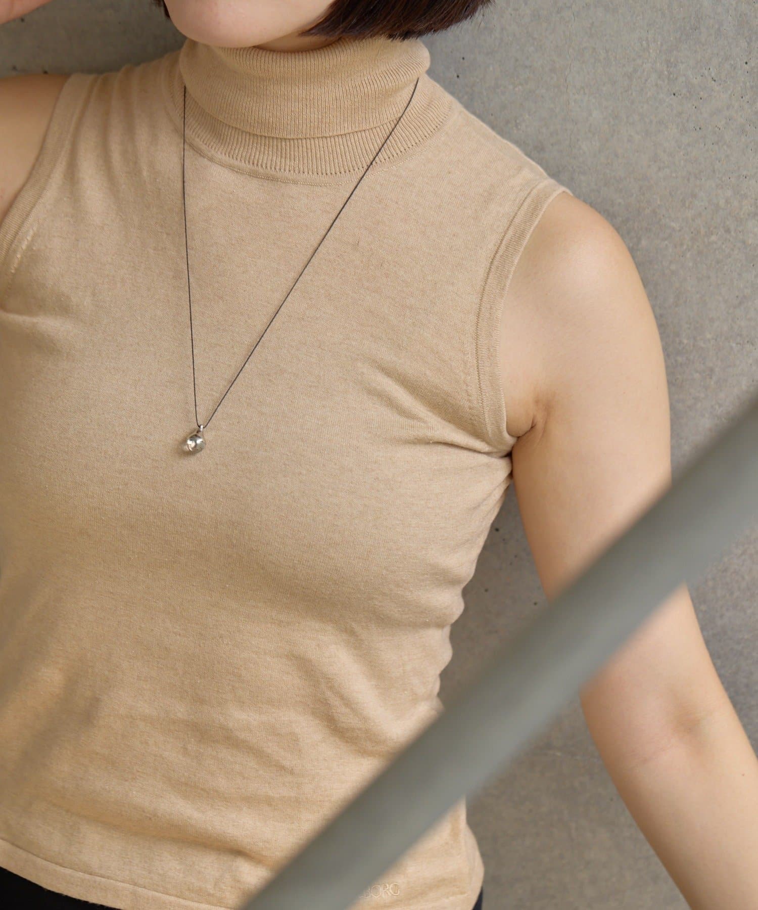 さりげなく輝くラウンド天然石が、胸元に上品な印象をプラス。