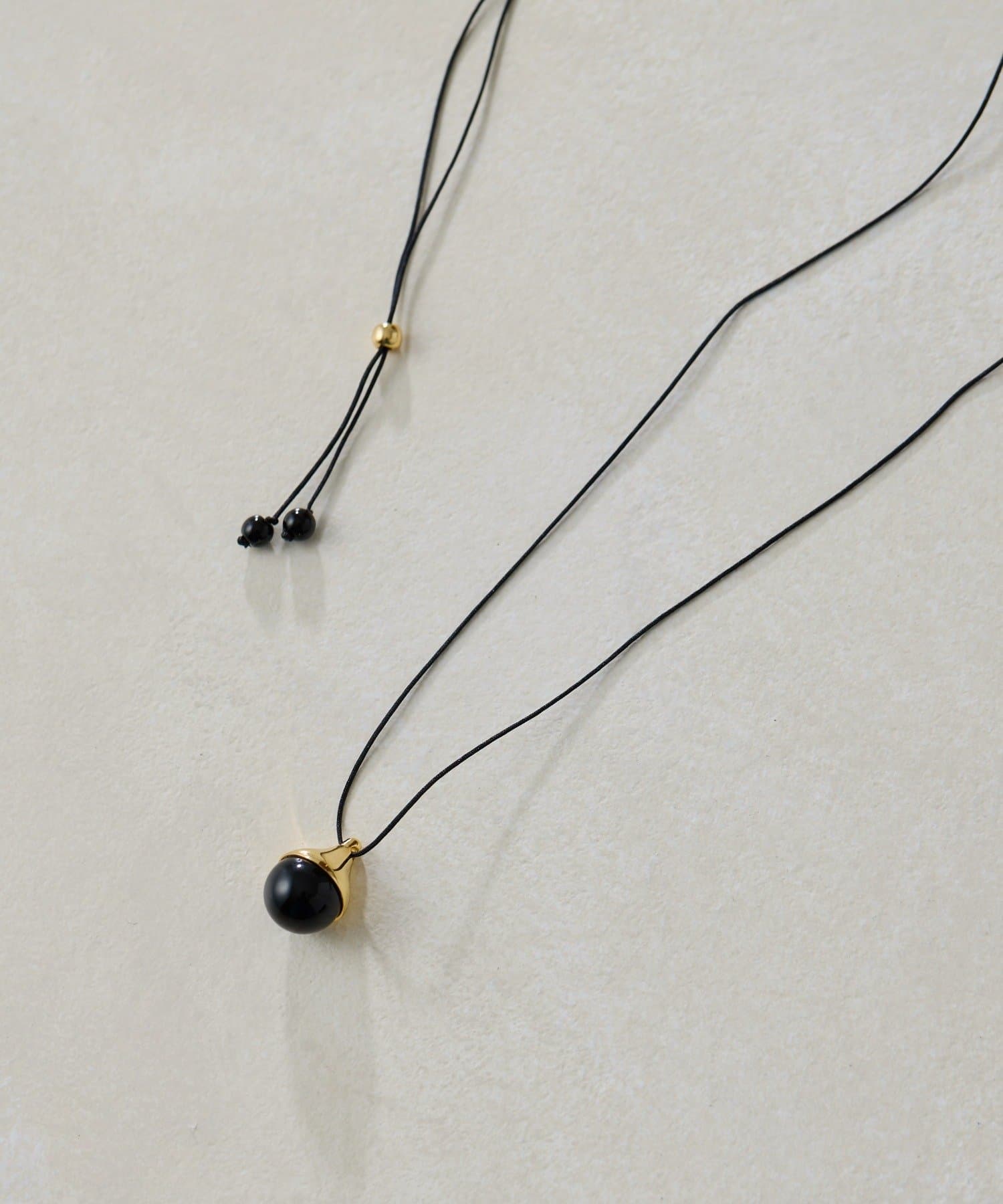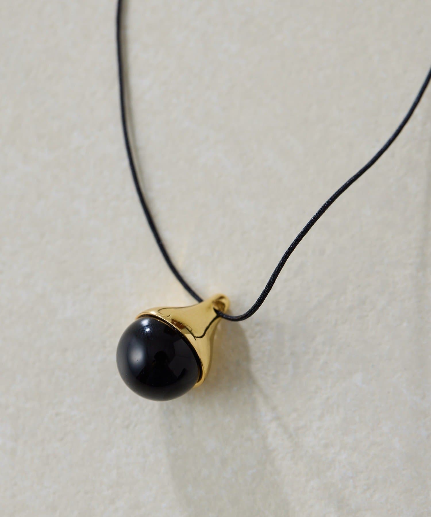 ・メタルキャップのついたラウンド天然石が一粒ついたロープ状ネックレス