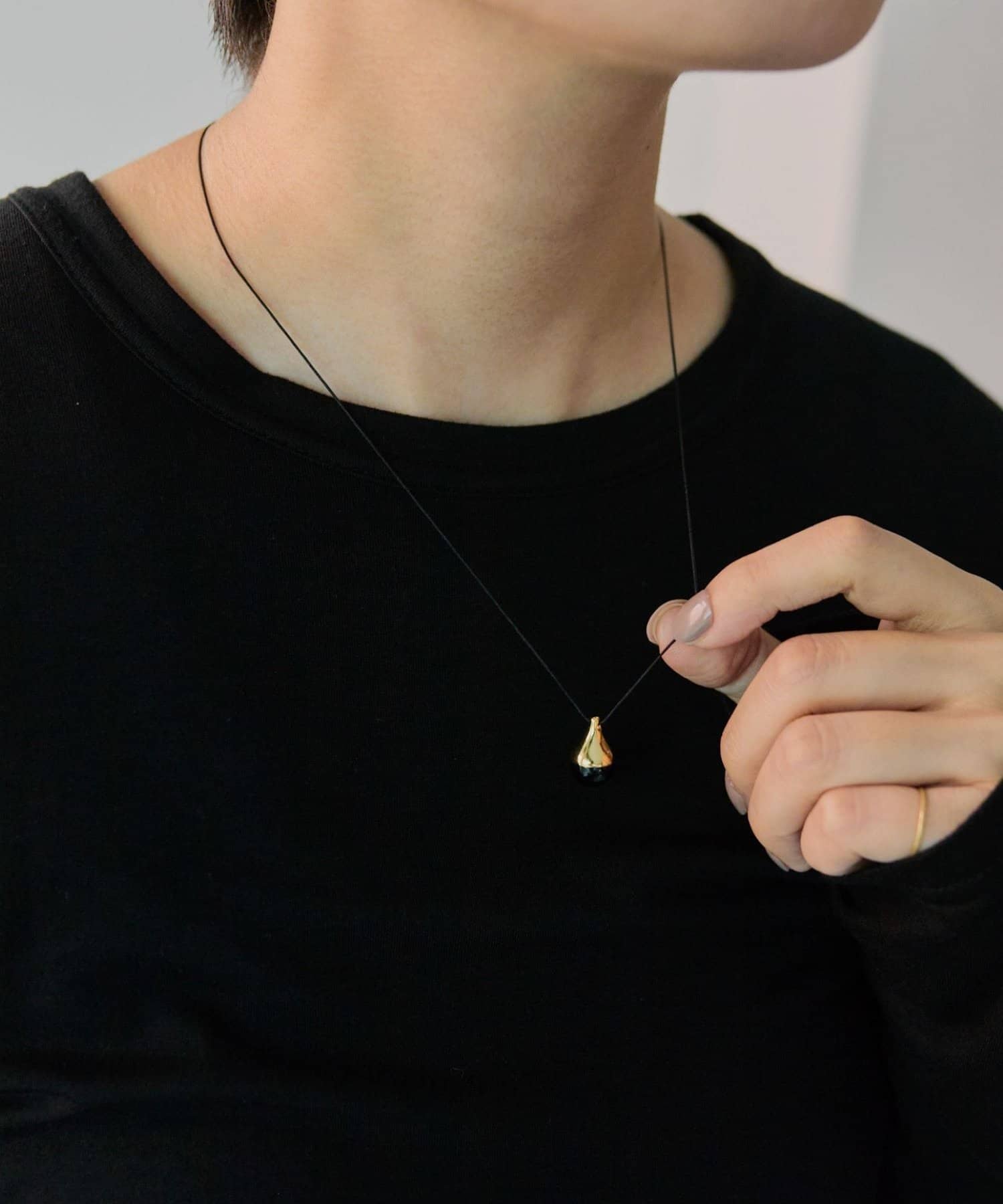 細いロープ状のネックレスは、どんなスタイルにも合わせやすいデザインです。