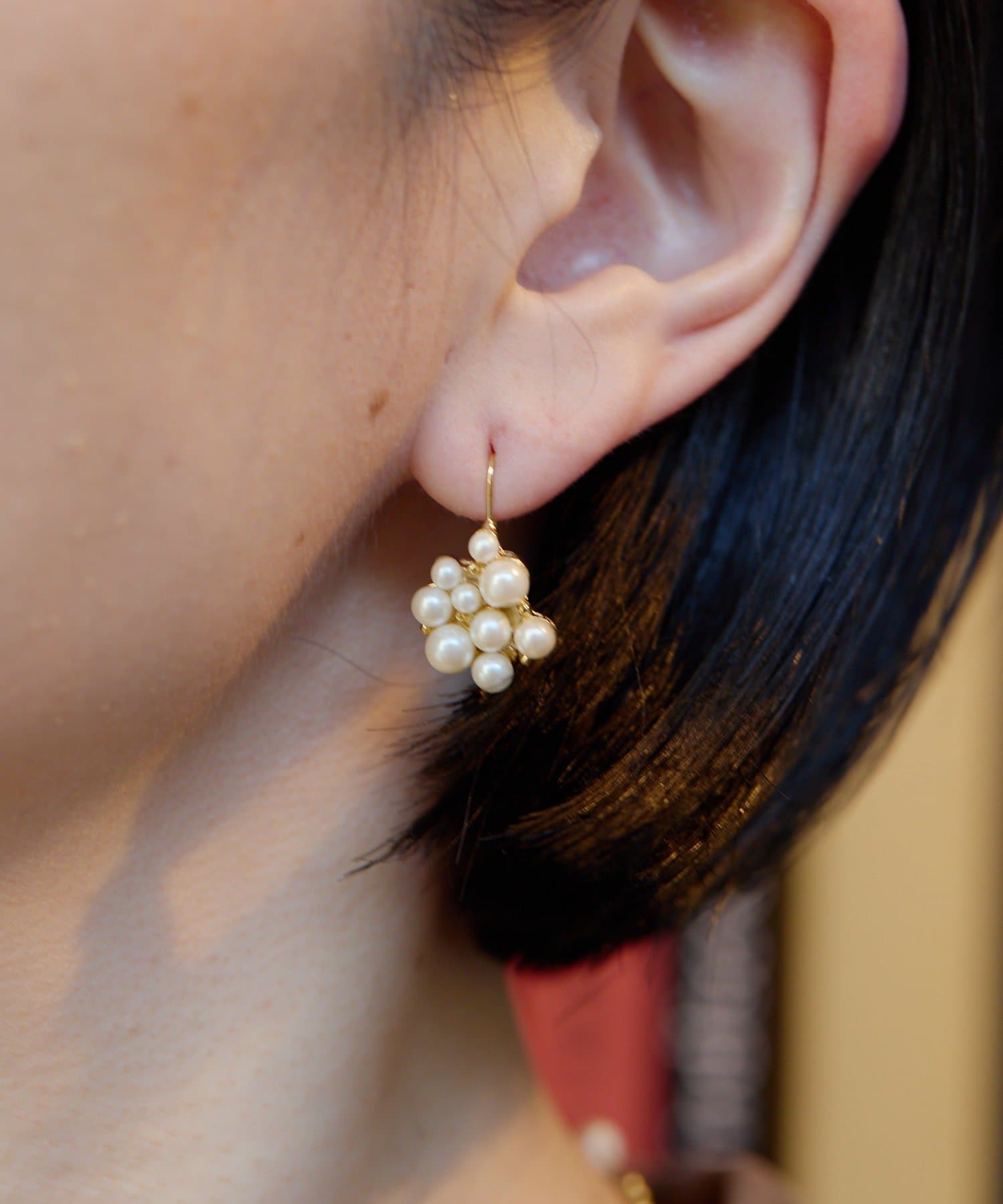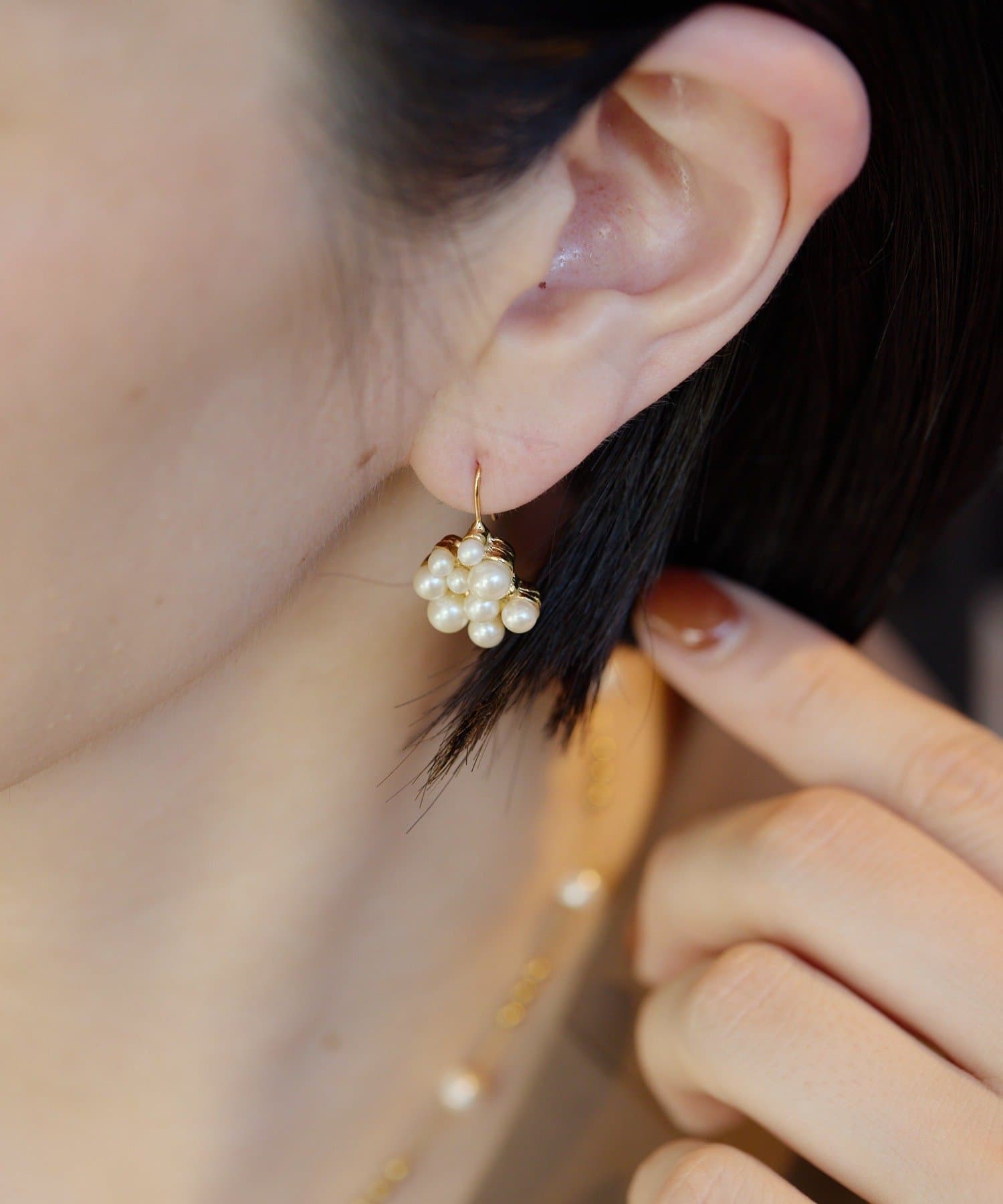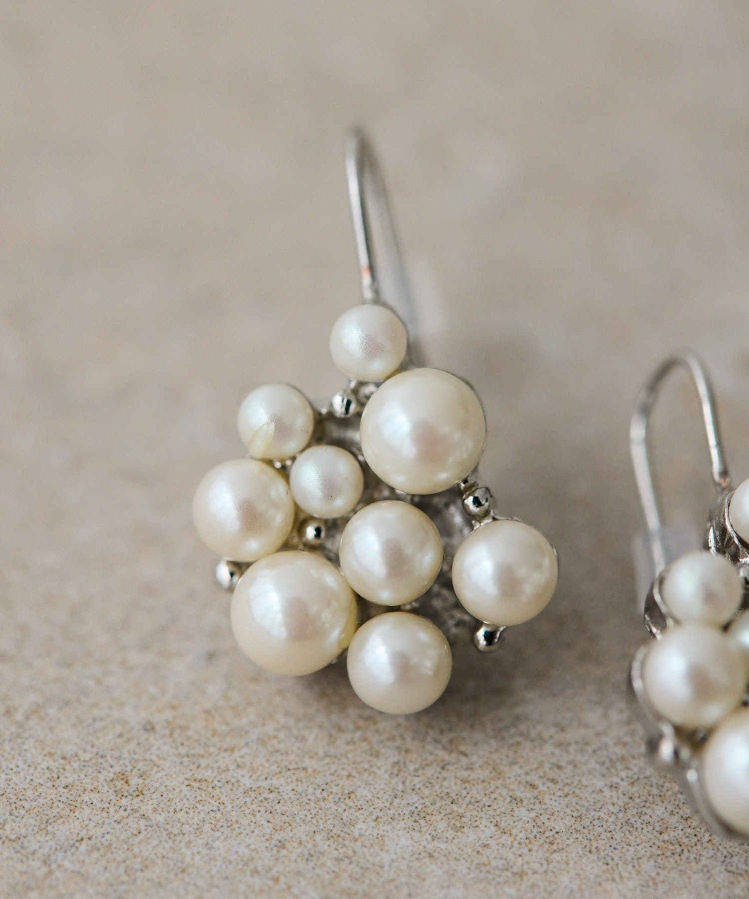 大小のパールが寄り添い、まるで小さなブーケのような華やかさを演出します。