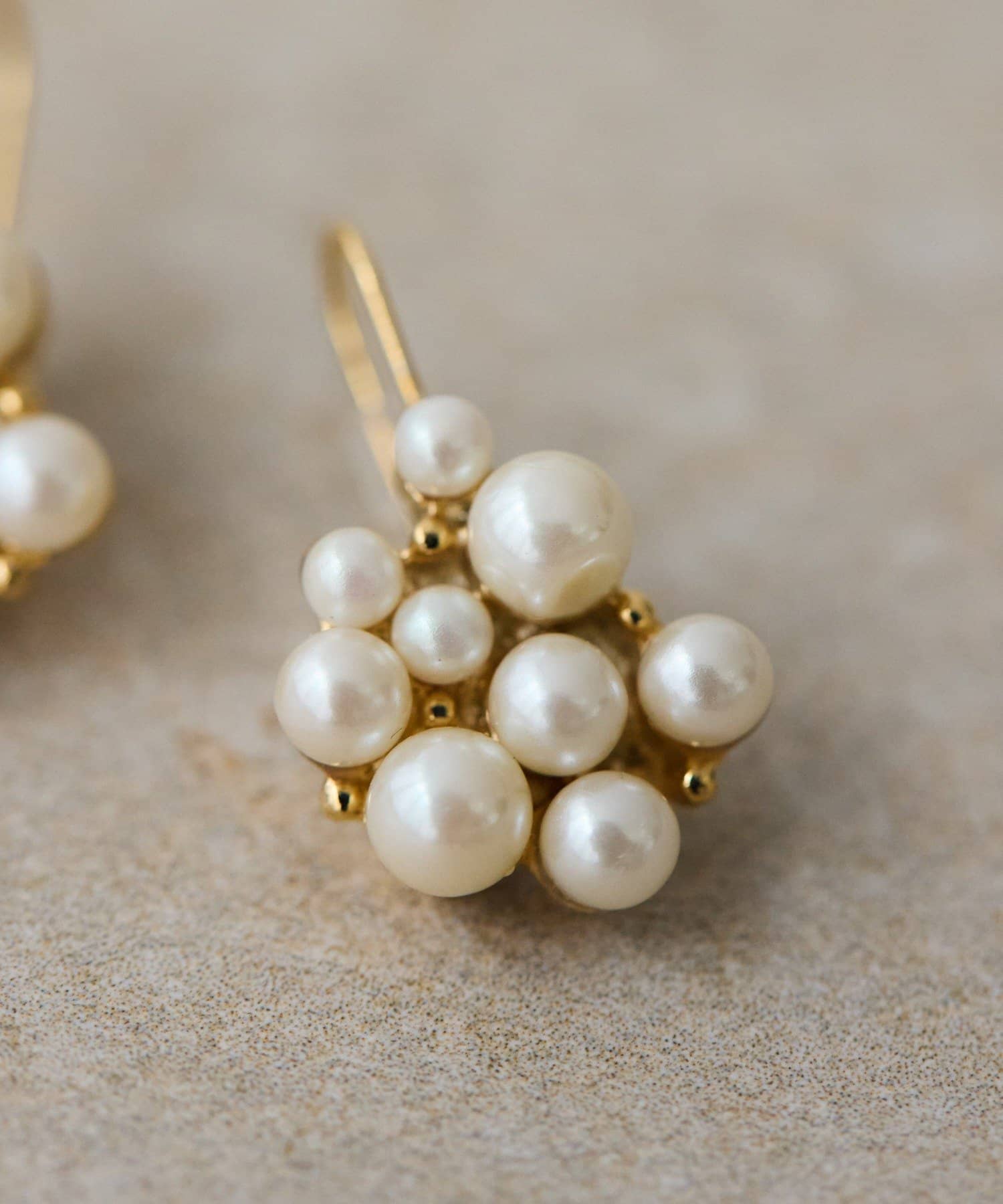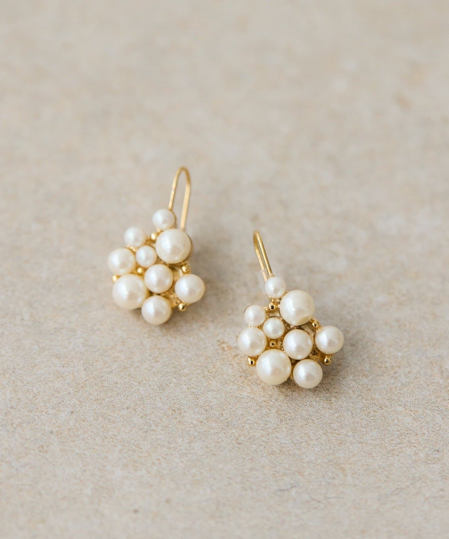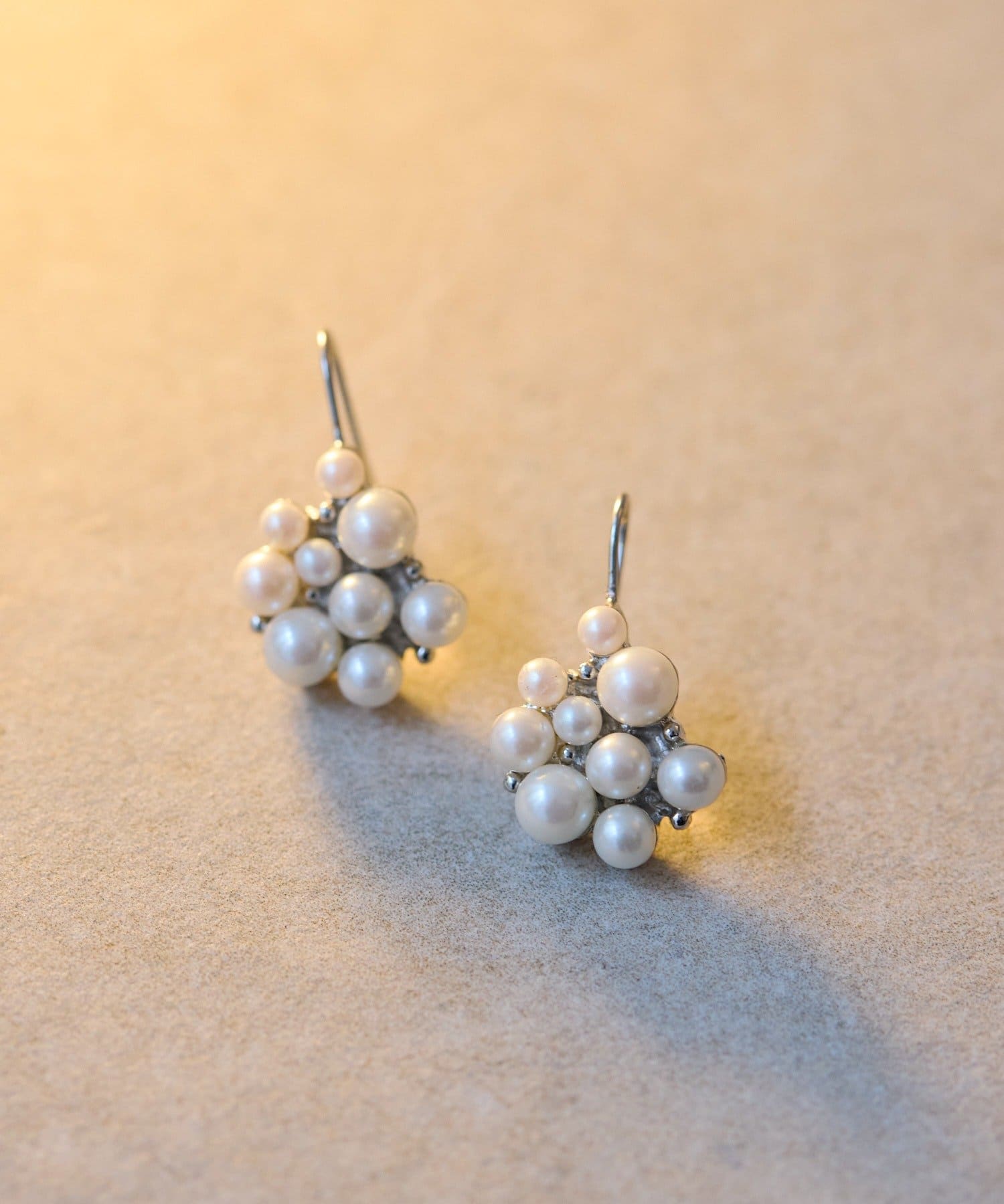 大小のパールが寄り添い、まるで小さなブーケのような華やかさを演出します。