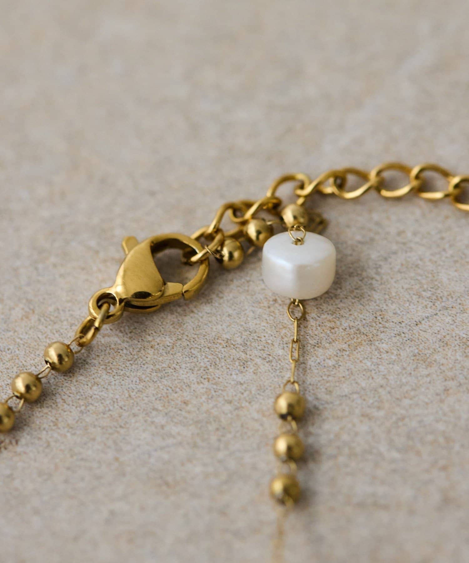 ・淡水パールとメタルボールの組み合わせが素敵なチェーンを使用