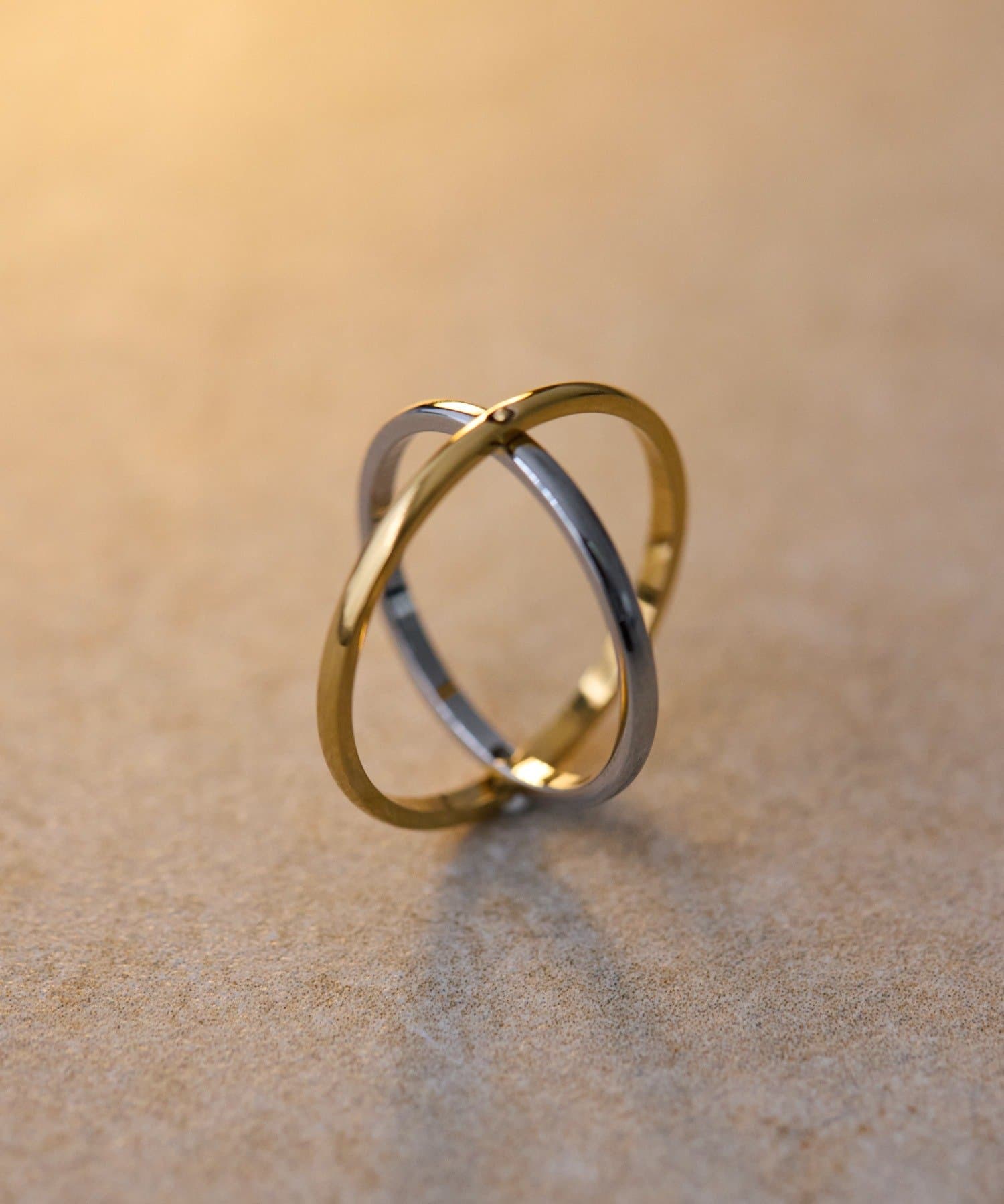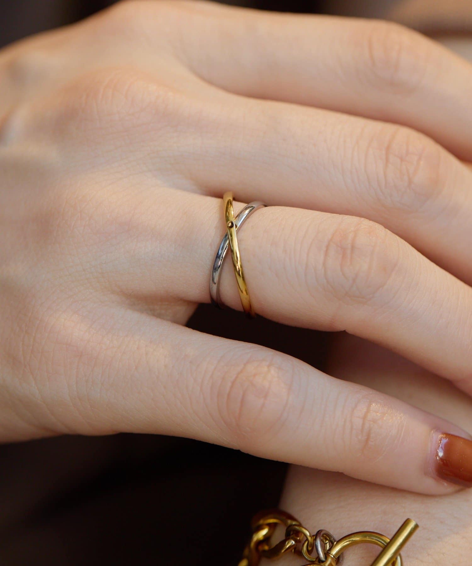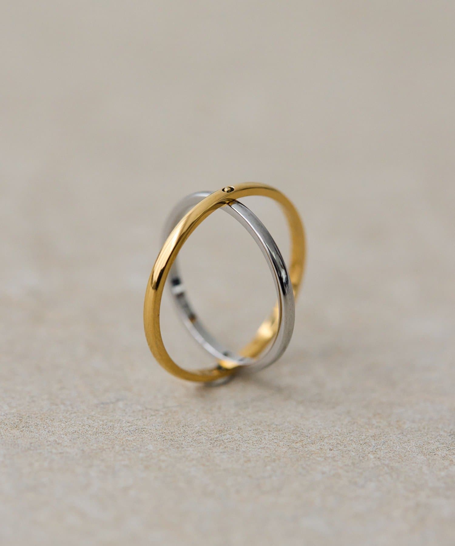 ・ゴールド×シルバーのコンビカラーで、ずらしてバイカラーリングとして楽しむことも