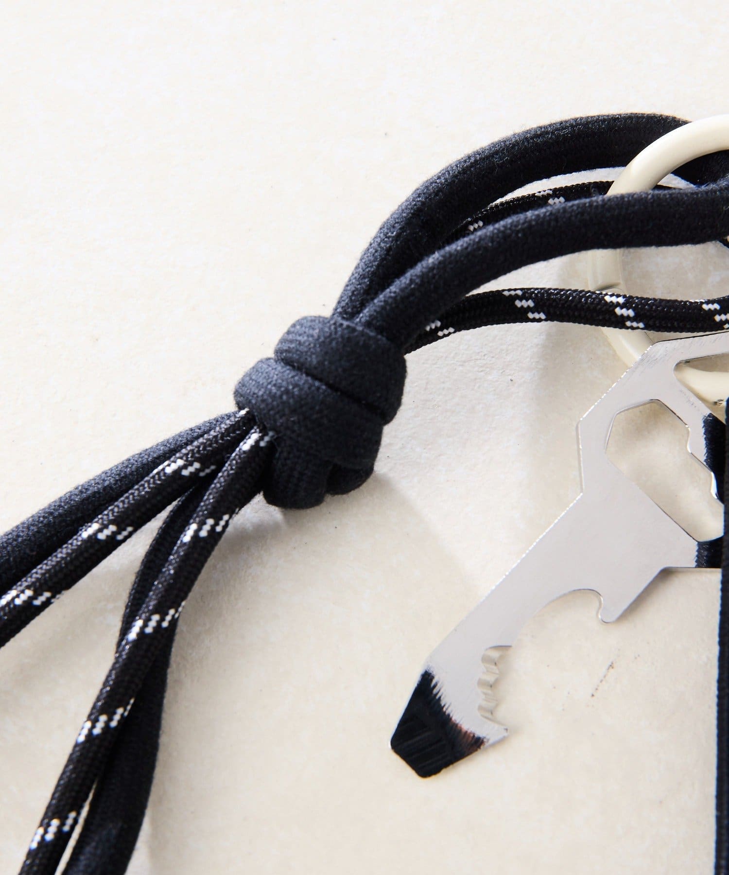 さりげない個性を演出する、鍵型マルチツールチャームもポイント。