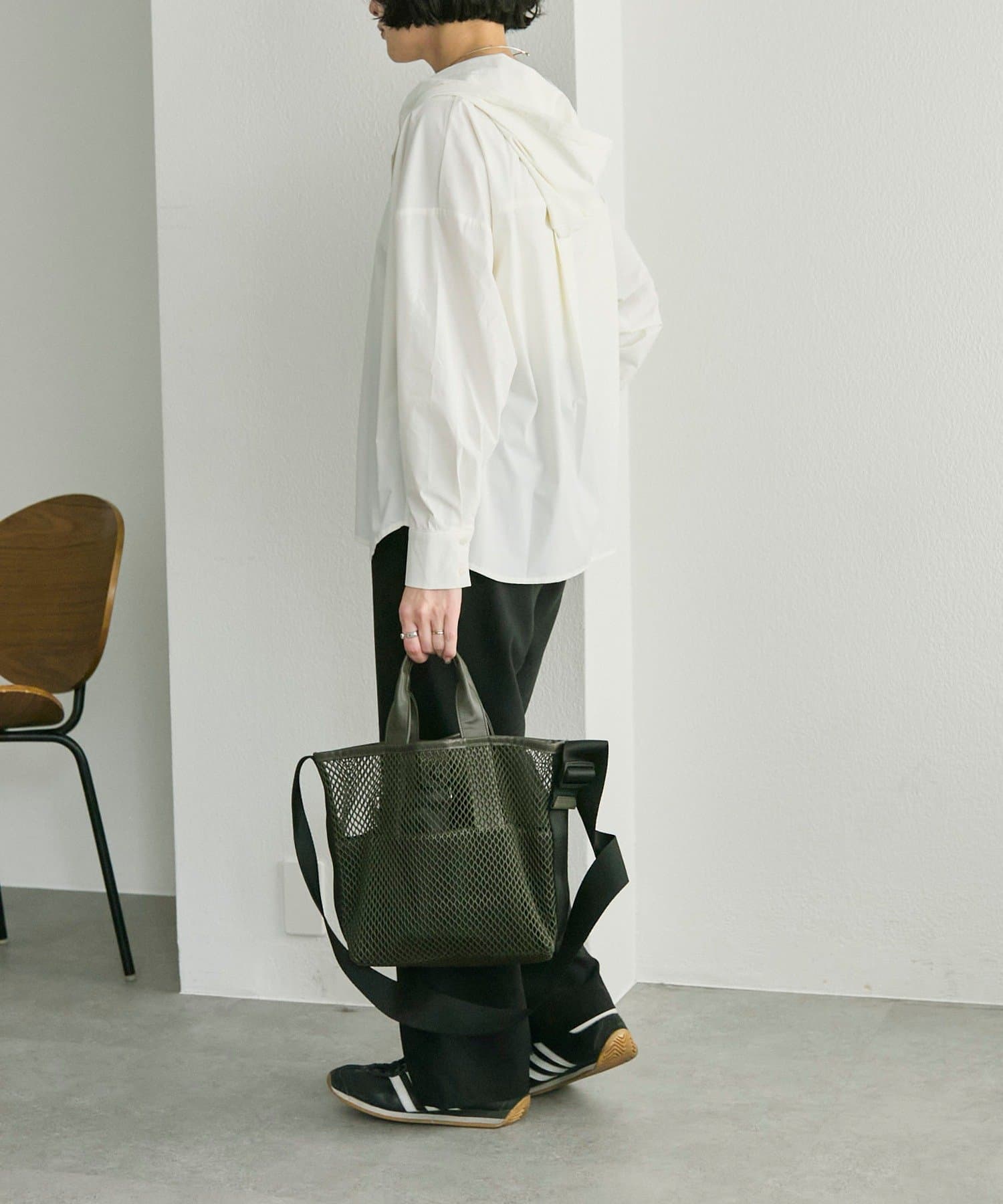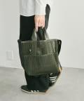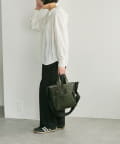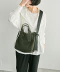 • カーキ/サイズ:持ち手30cm、高さ25cm、開口幅35cm、底幅23.5cm、マチ13cm、ショルダー全長~106cm、重さ350g