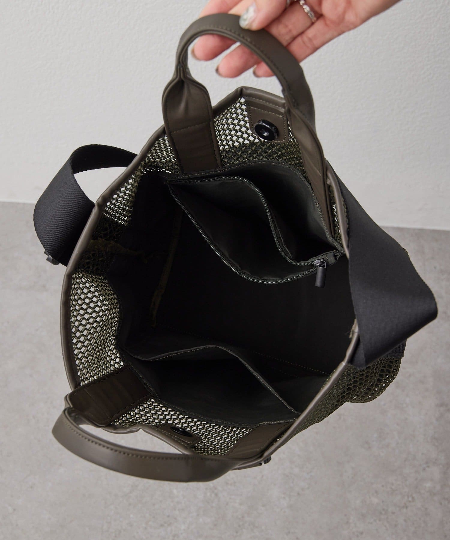 ・バッグ本体の下半分にはポケットの裏地付きで中が見えにくい仕様