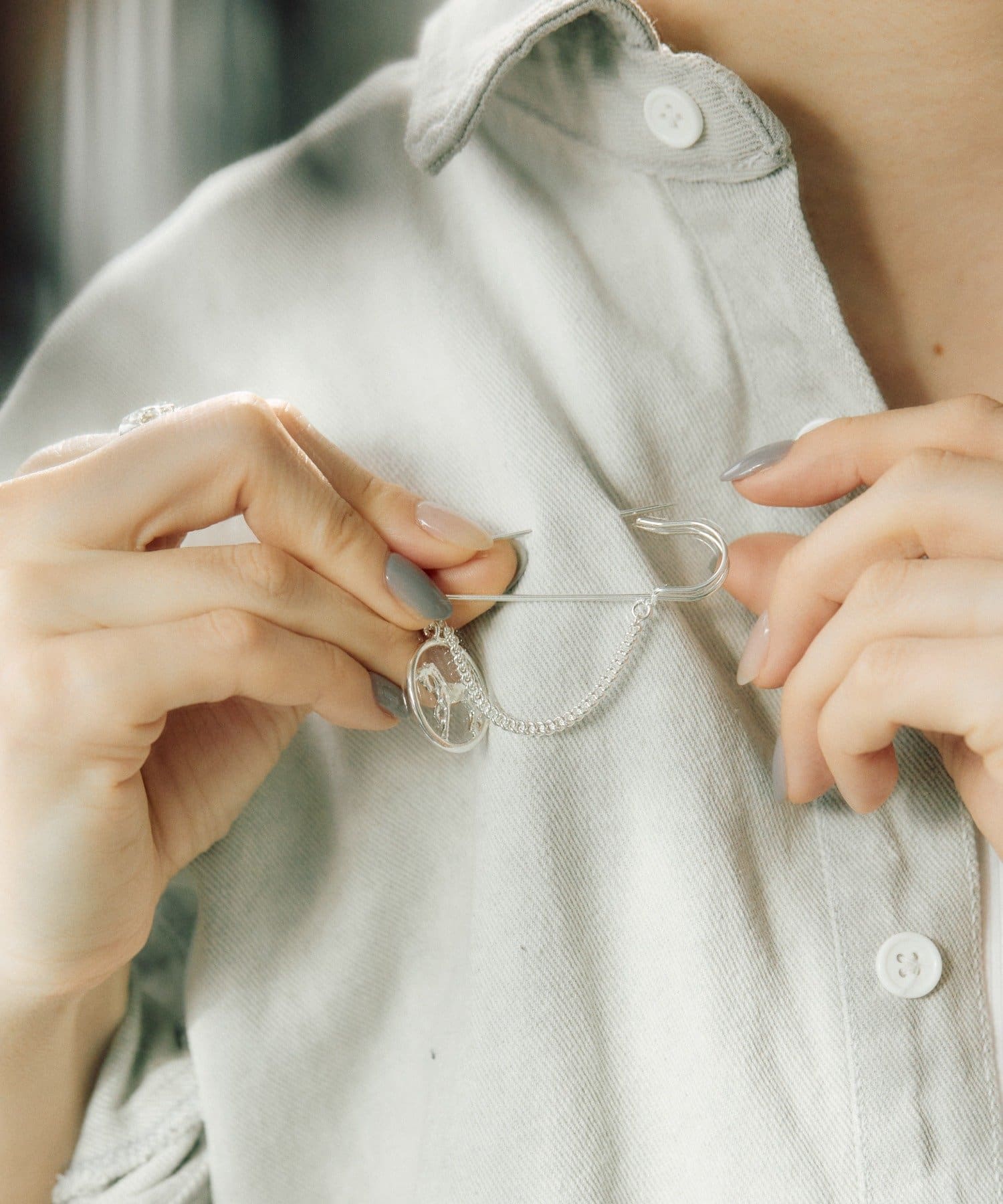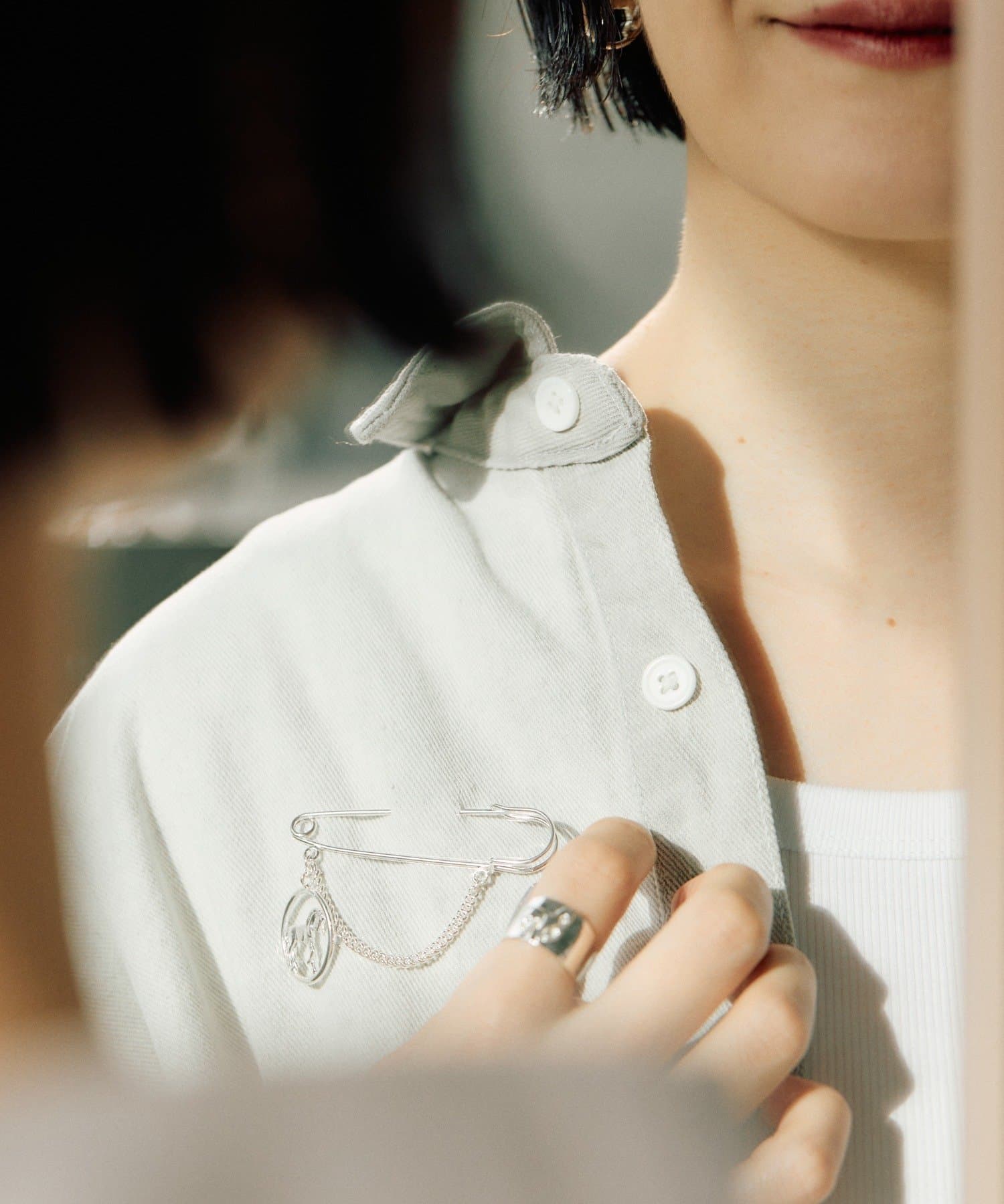 ジャケットやバッグ、ストールなどにプラスして、いつものスタイルに知性とエレガンスをプラスしてくれます。