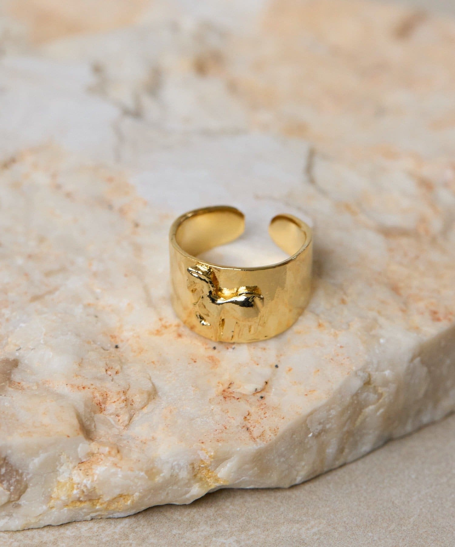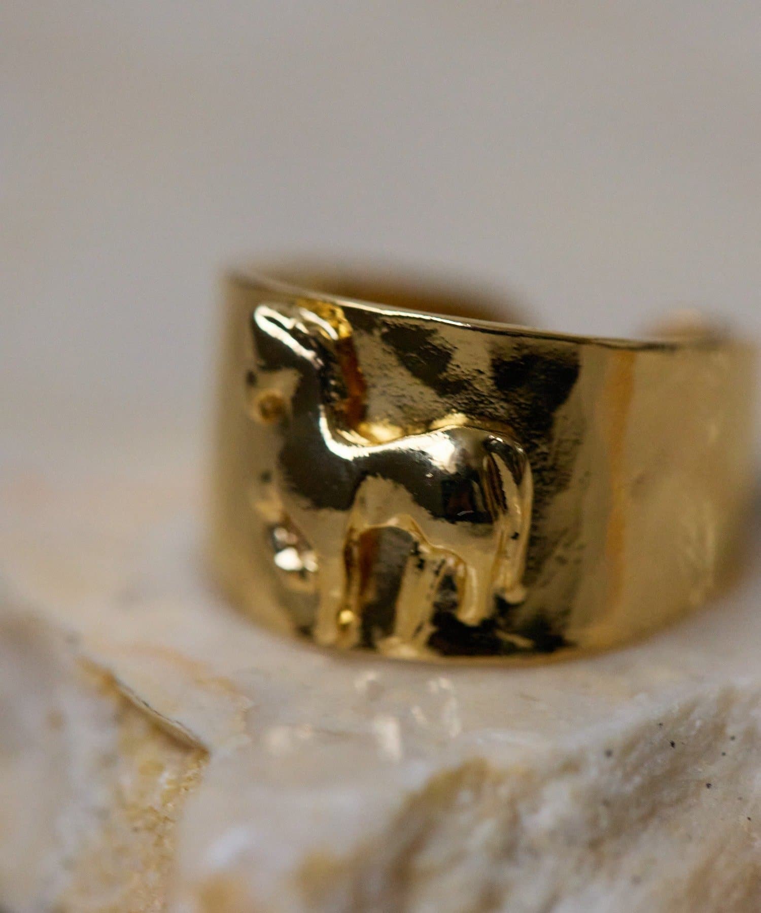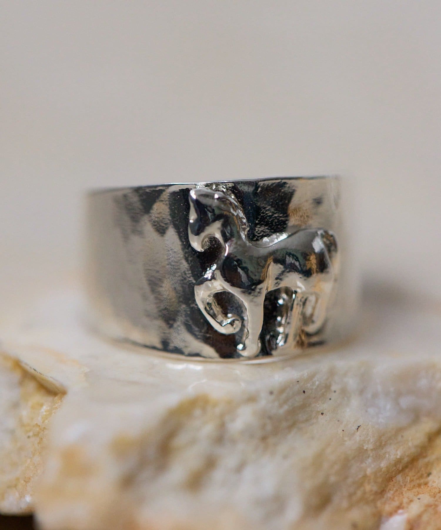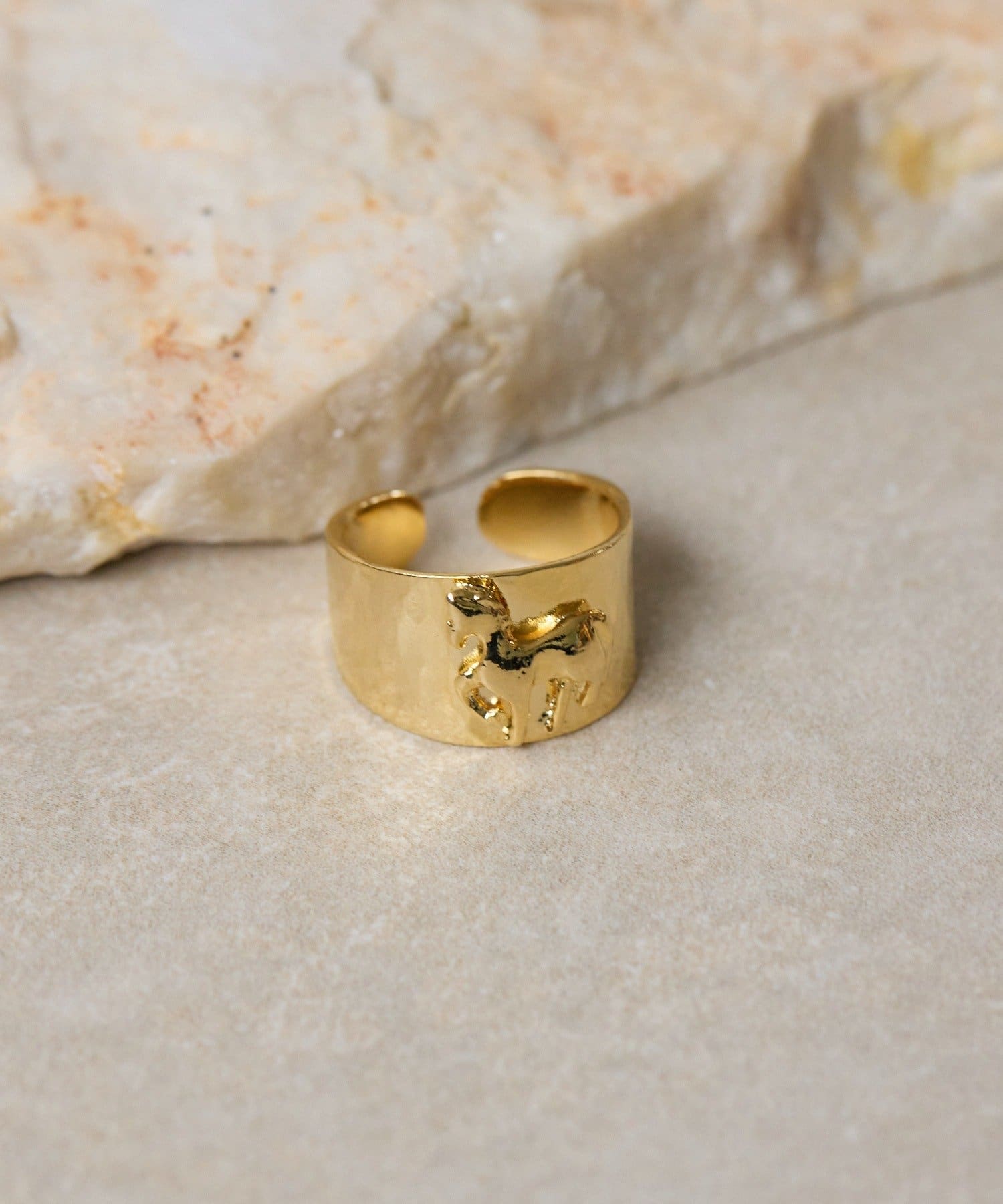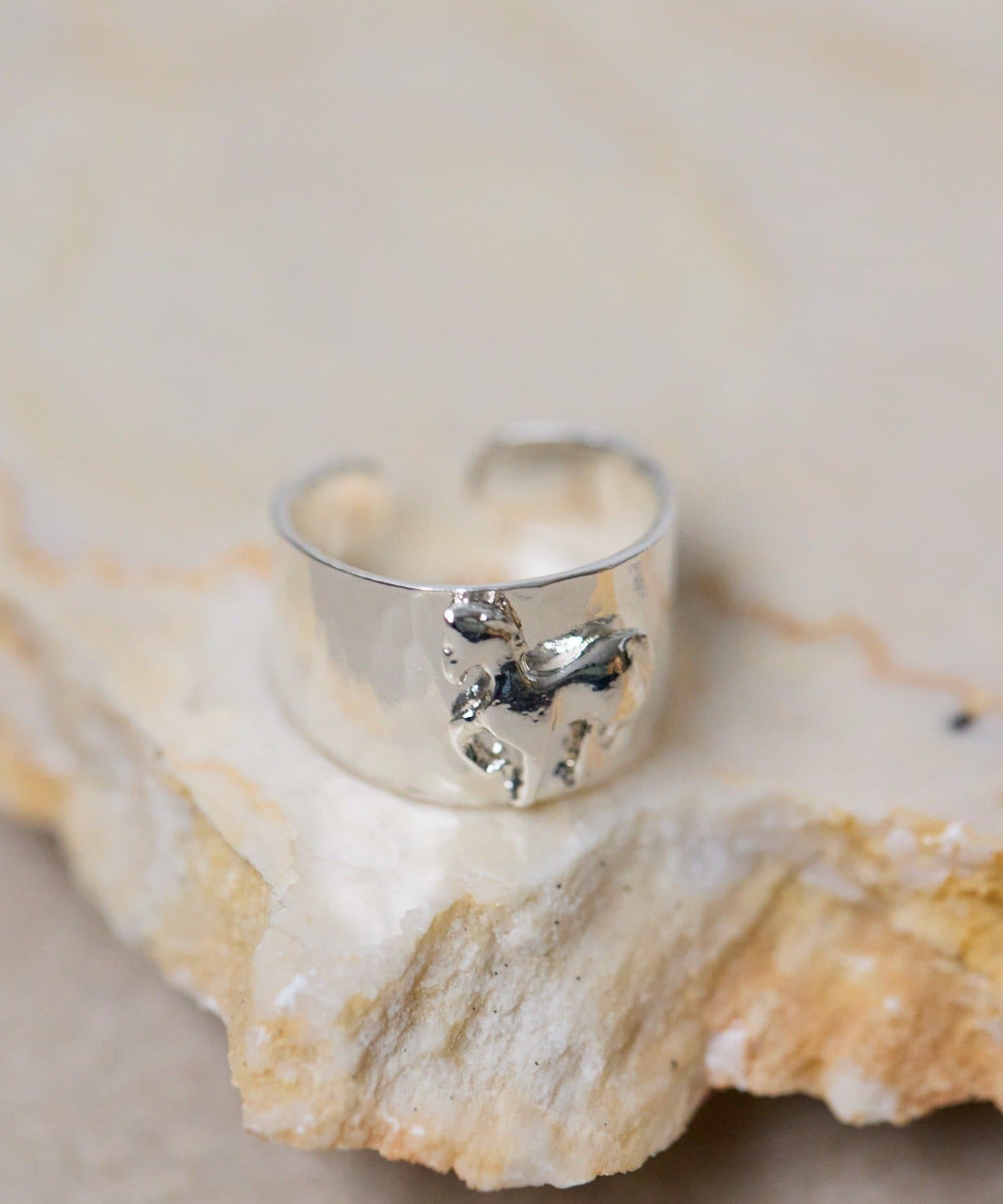 幸運の象徴とされる馬をモチーフにした、存在感のあるリングです。