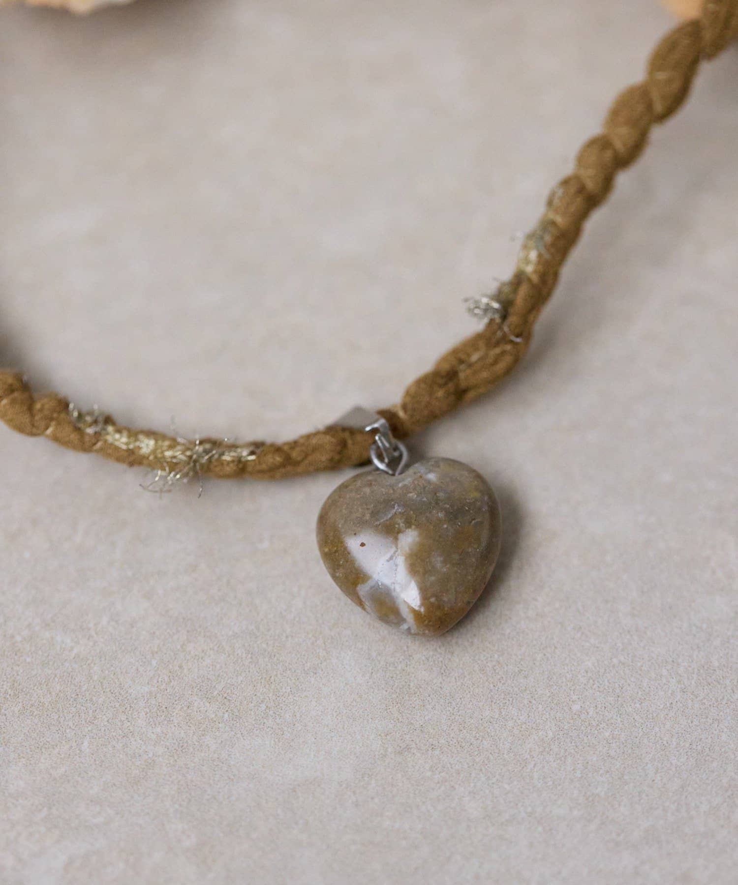 ・トップに付いているクレージーアゲートは、柄が不規則でユニークな色味がポイント。ハート型なのも可愛い