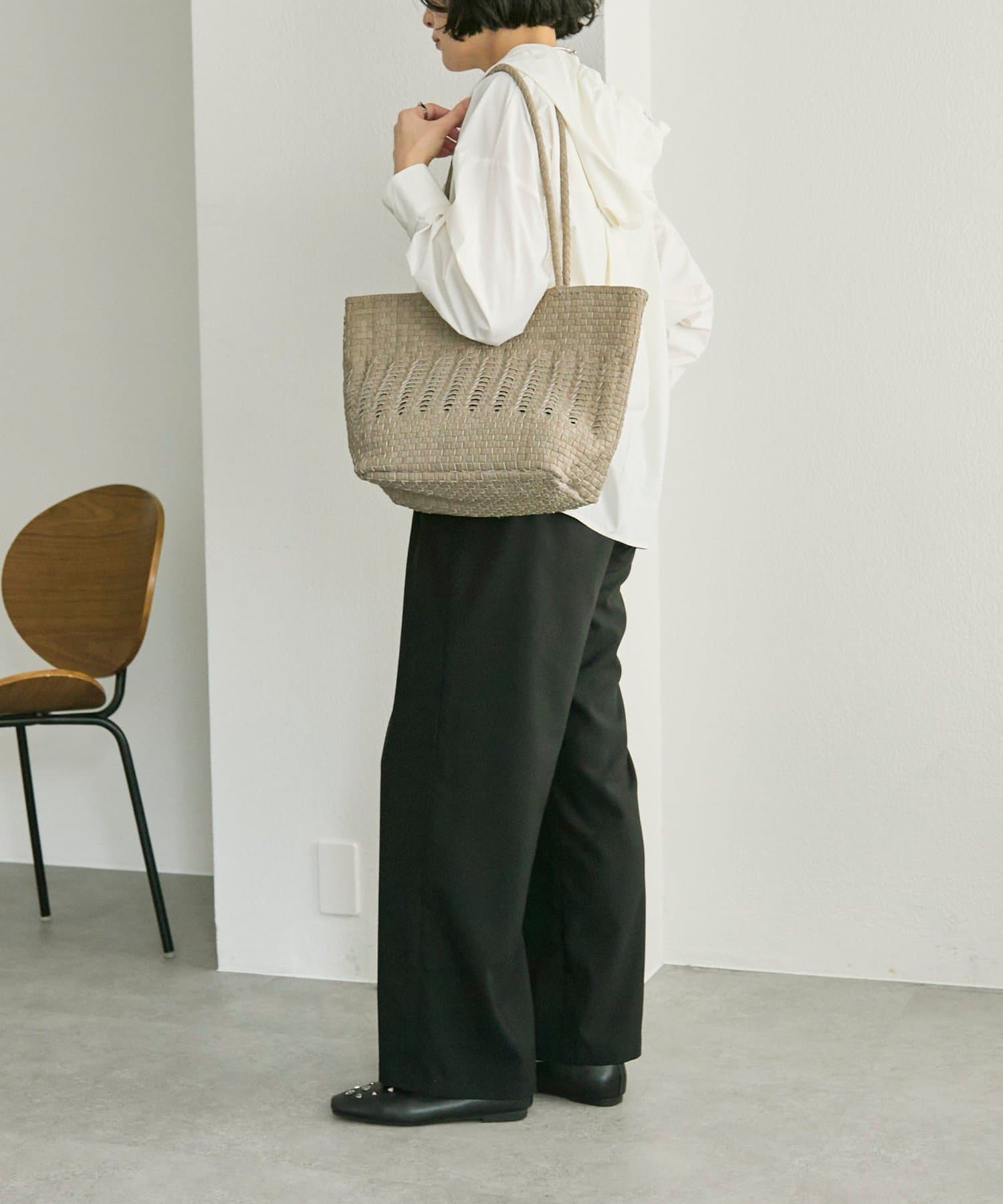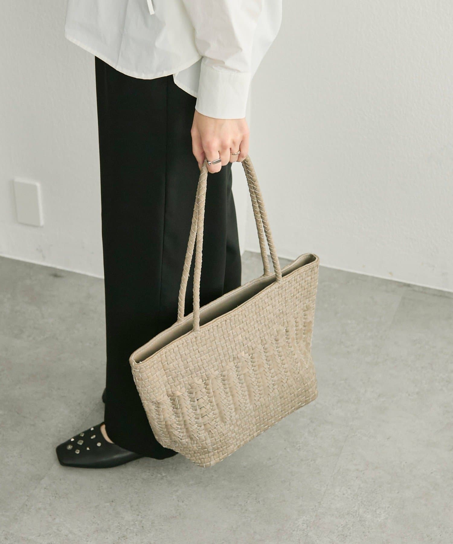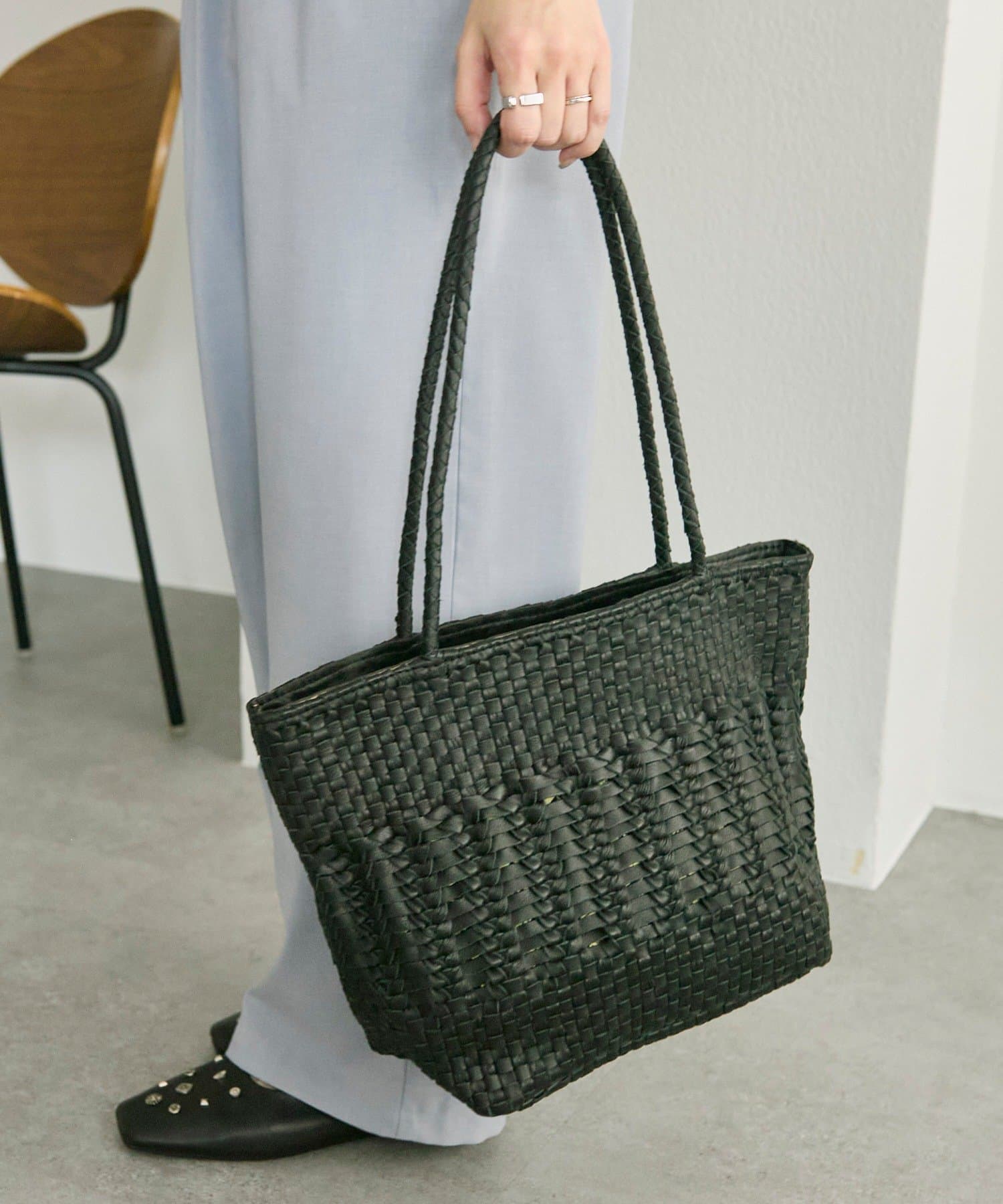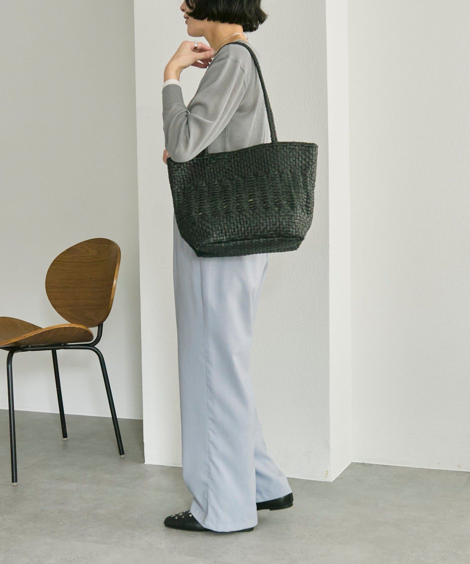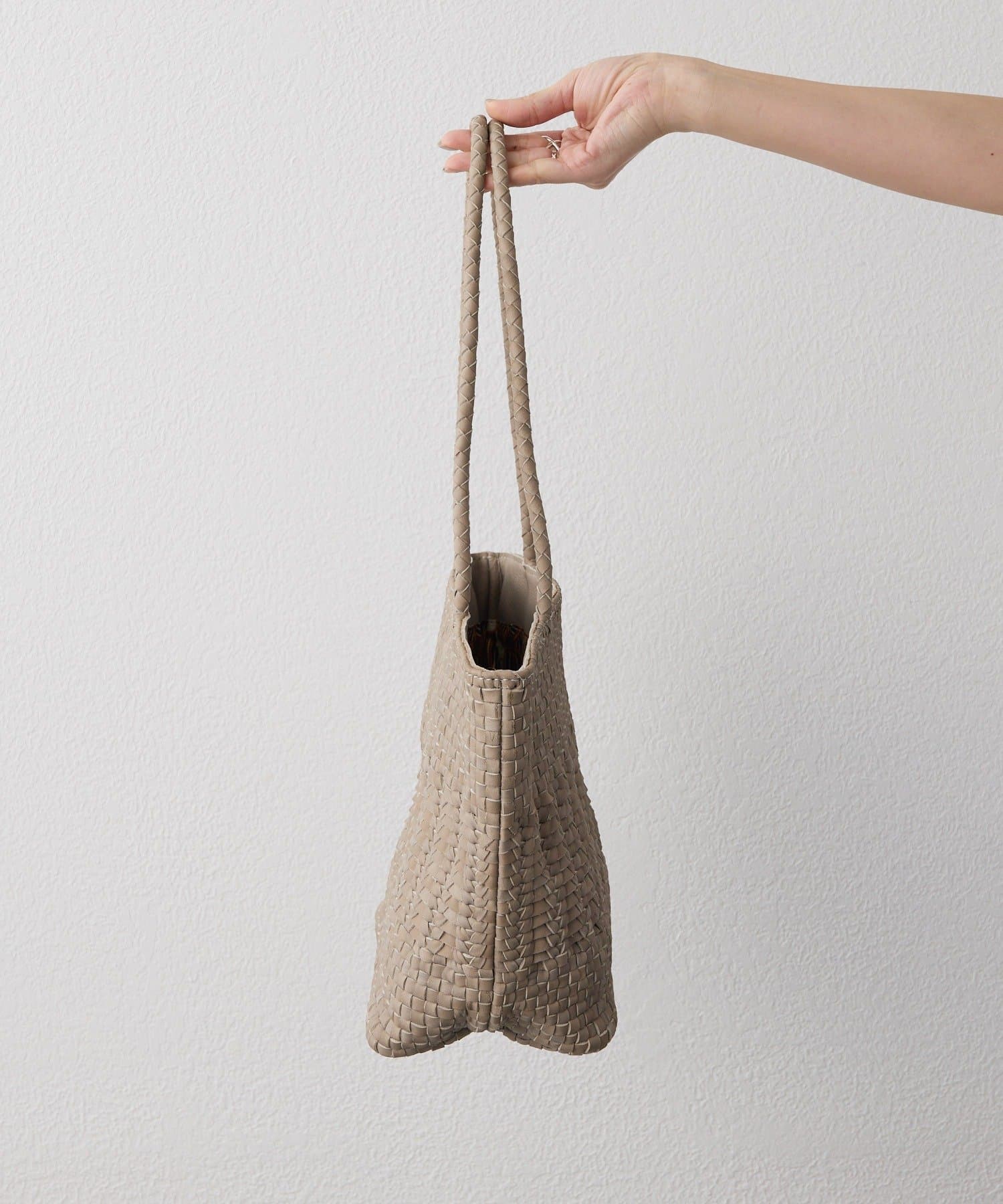 丁寧に編み込まれた素材が、上品で落ち着いた雰囲気を演出。