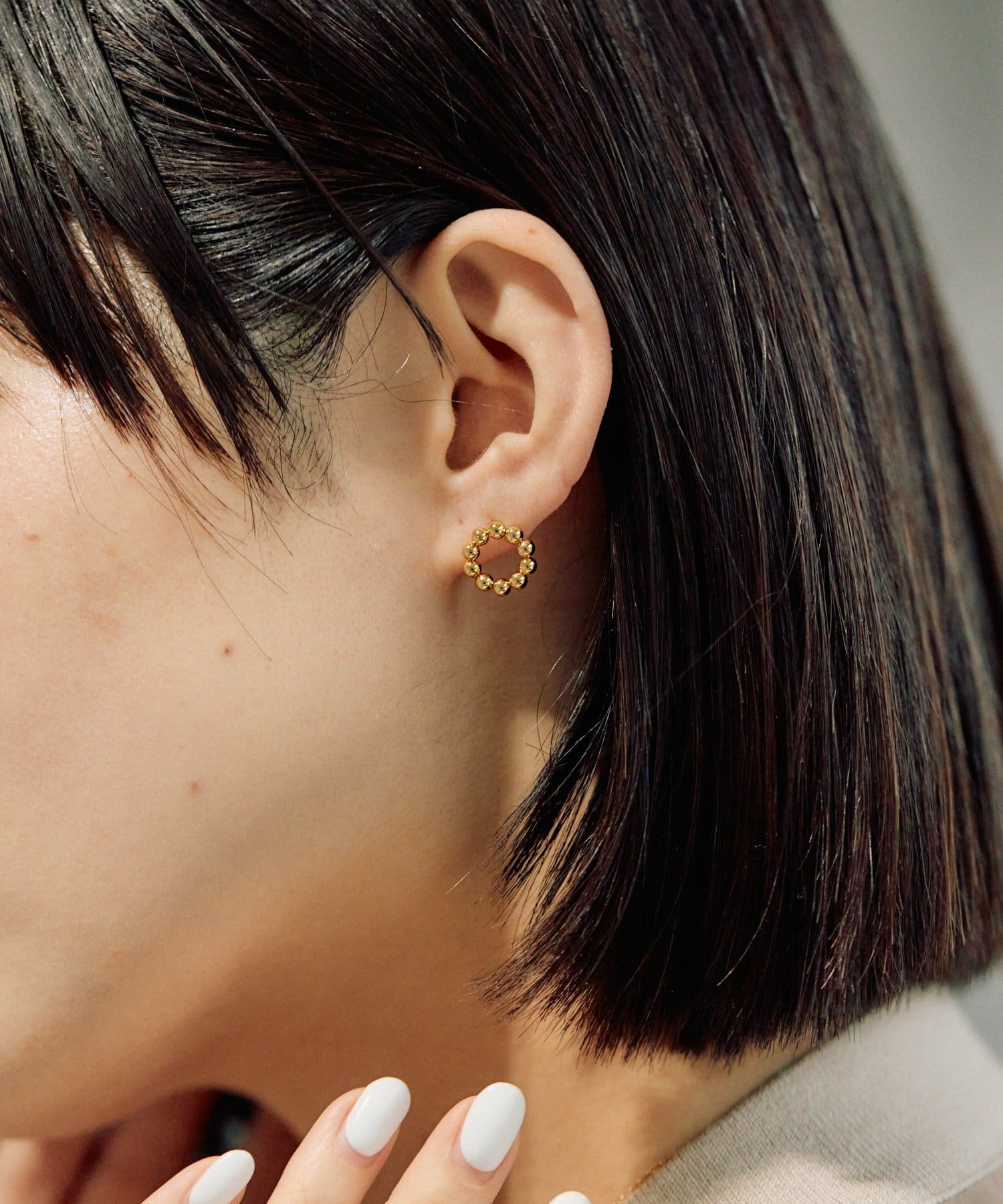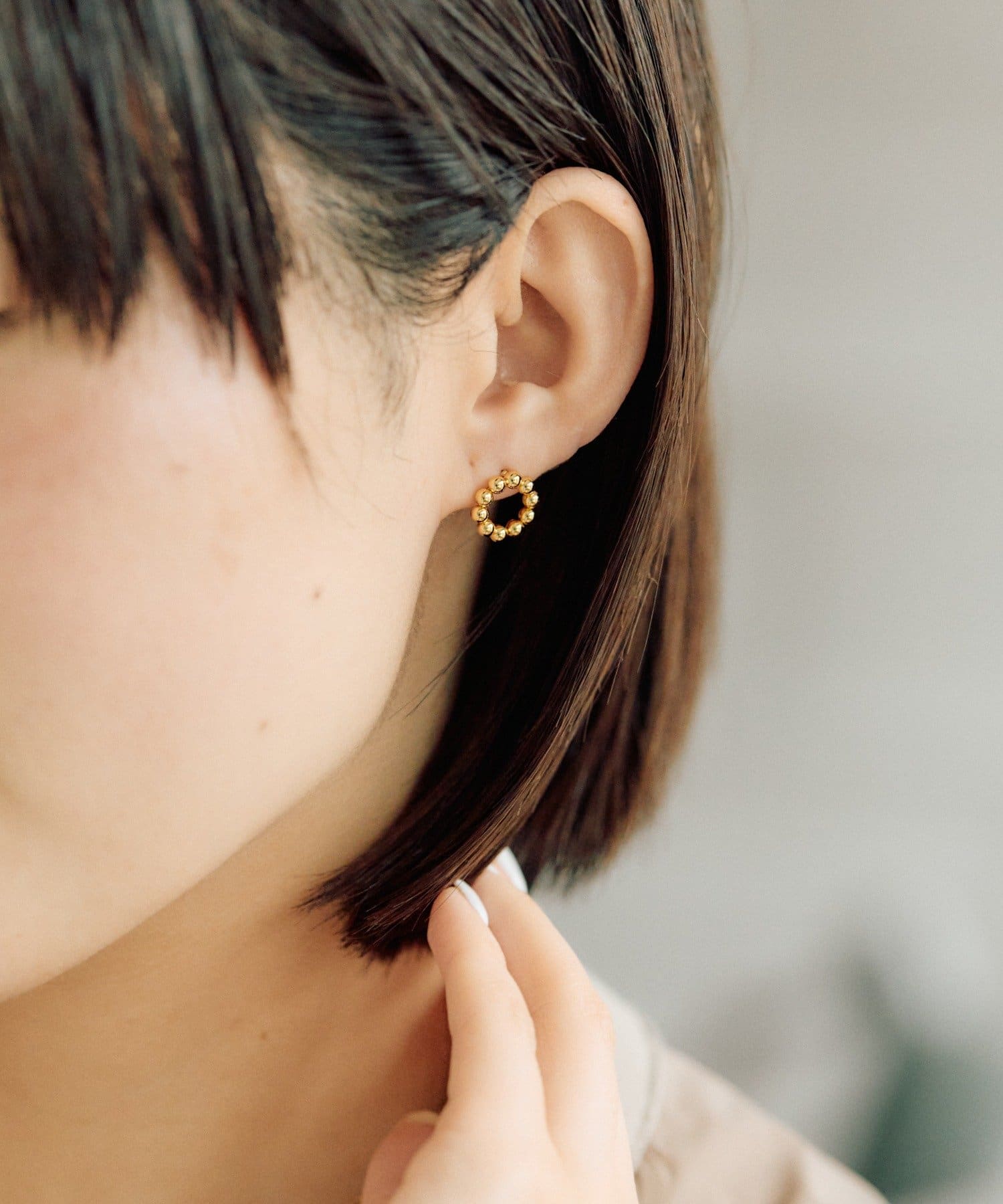 ボールチェーンを繋げたようなデザインが、耳元にさりげない個性をプラス。