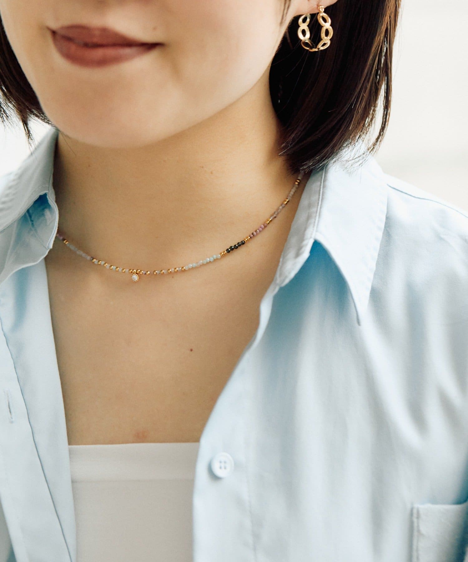 極小カットの天然石を贅沢に使用し、グラデーションカラーで首元を彩ります。