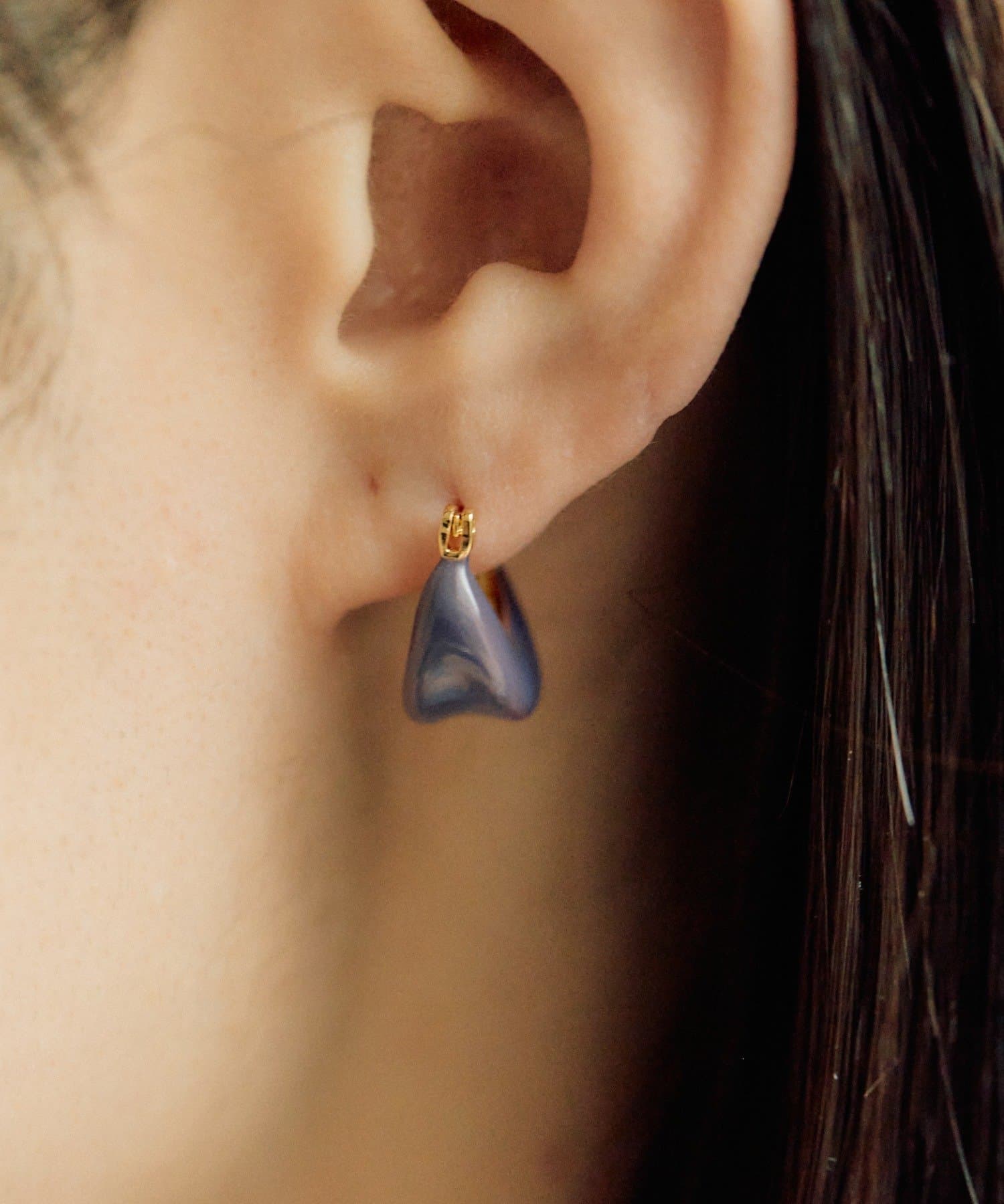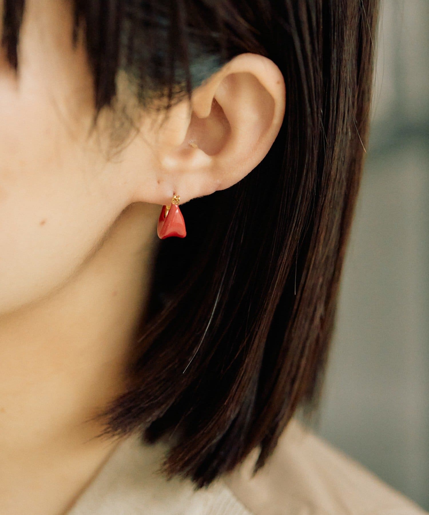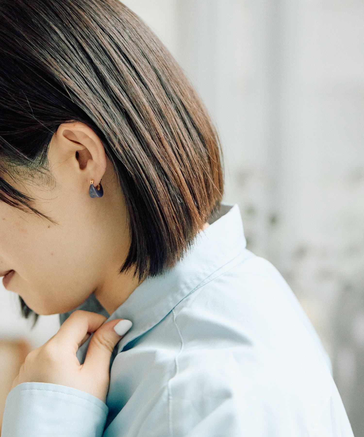 耳たぶに沿うようにフィットするデザインで、小さいながらもメタルの重みが大人っぽさを演出。