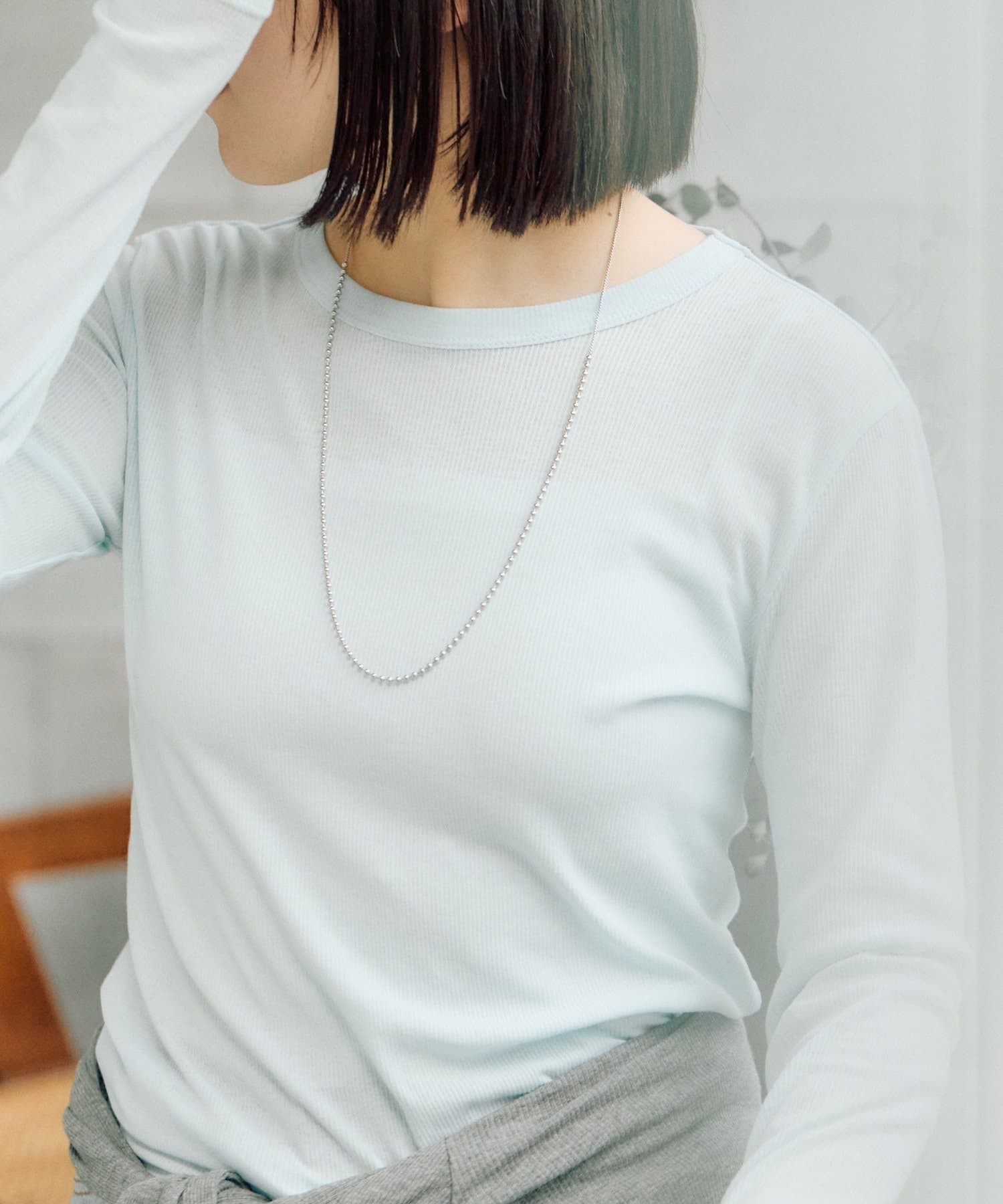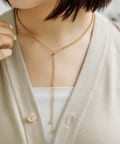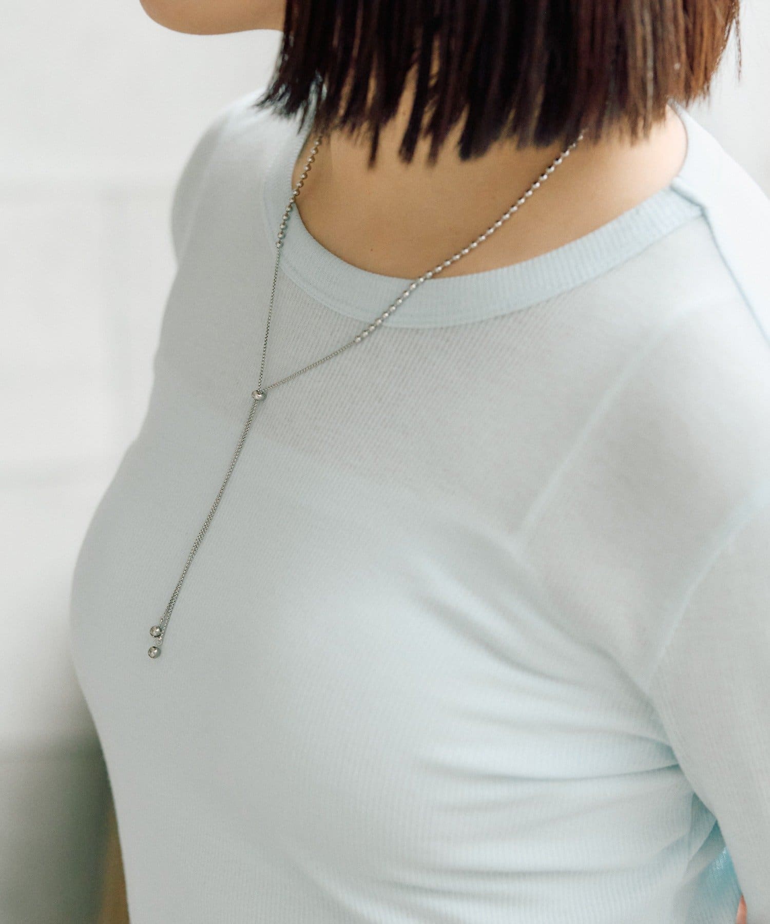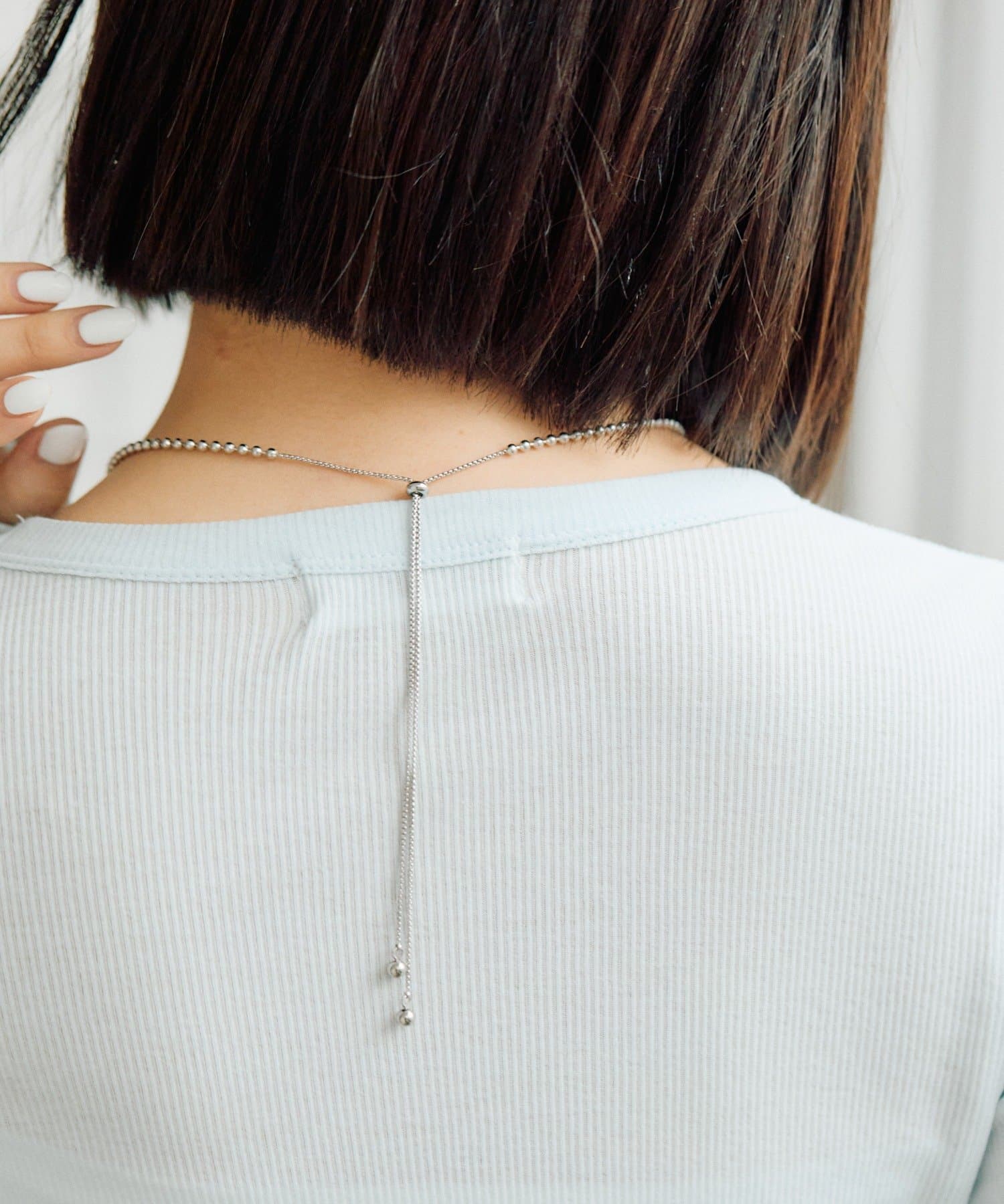ボールチェーンと繊細なチェーンの組み合わせが、洗練された印象を与えるスライドネックレスです。