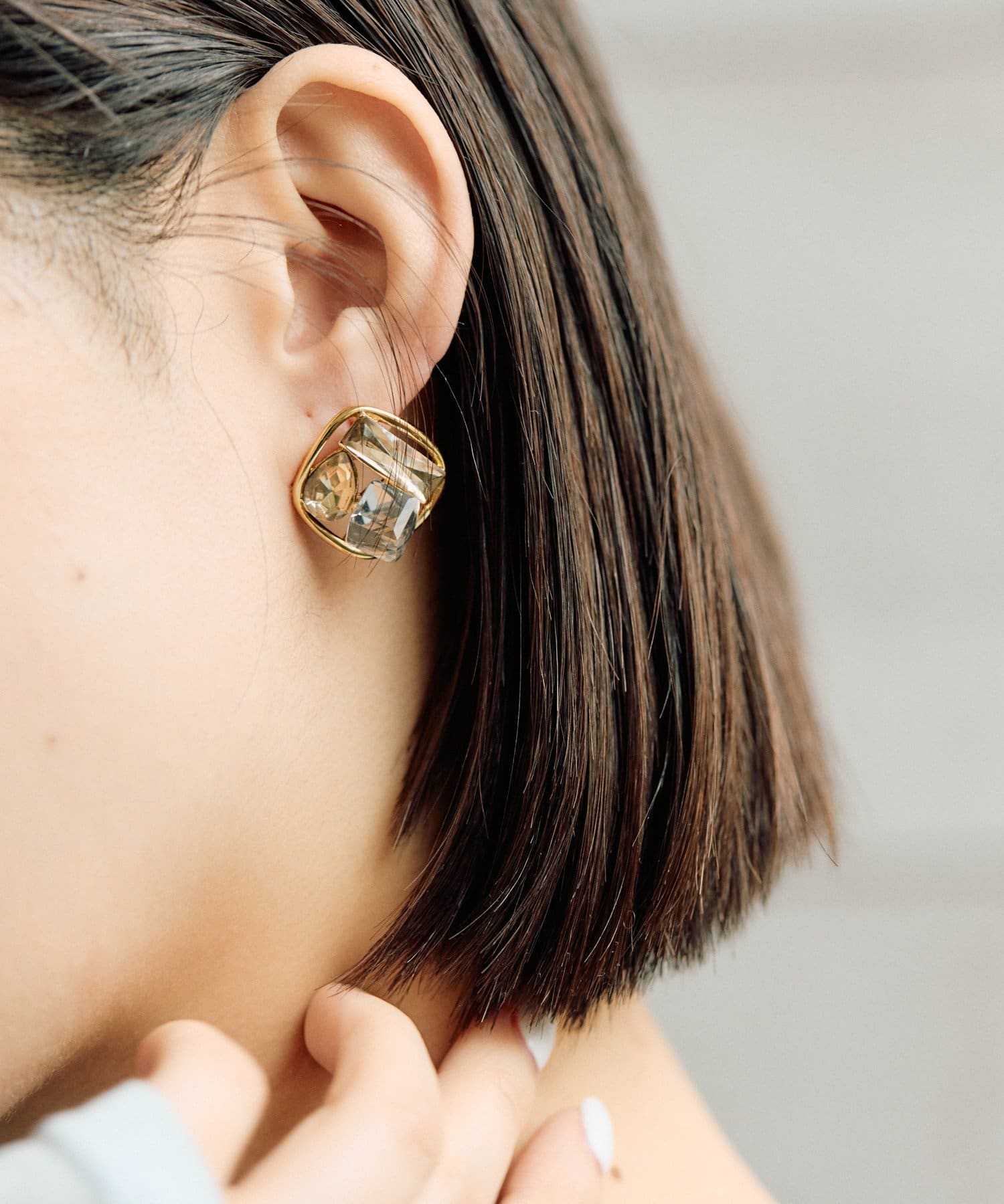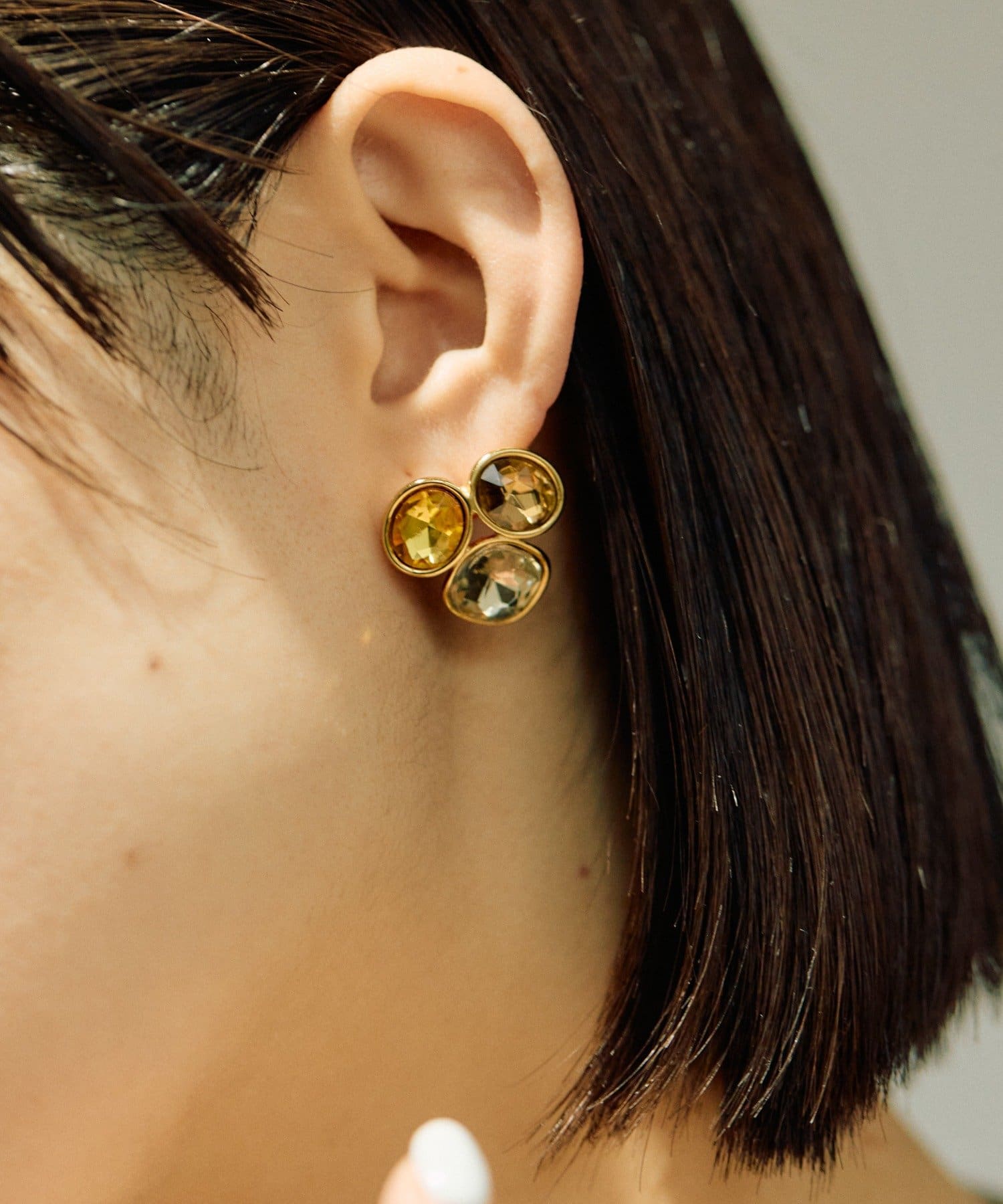 ・落ち着いたカラーのビジューが目を引く、華やかなピアス