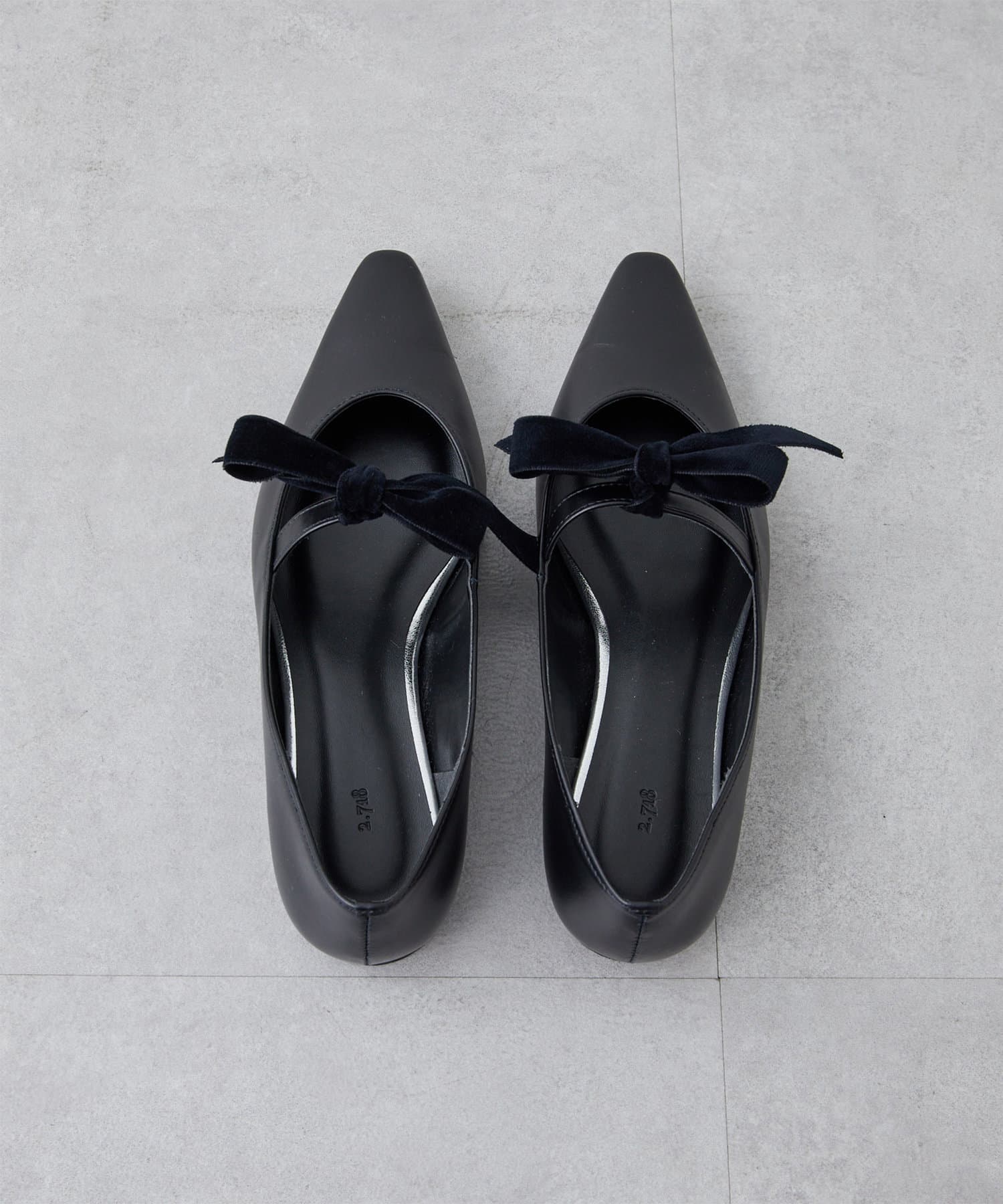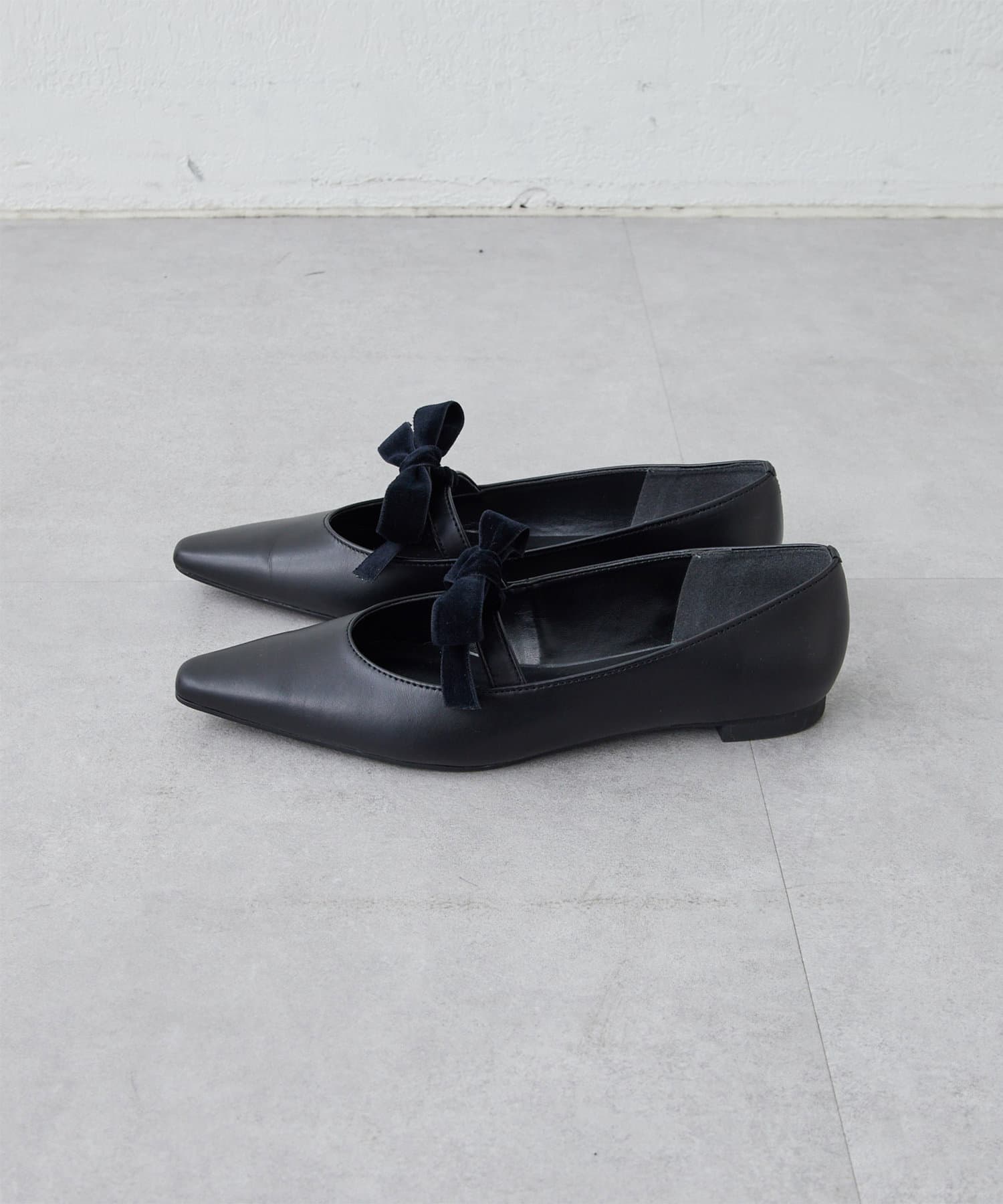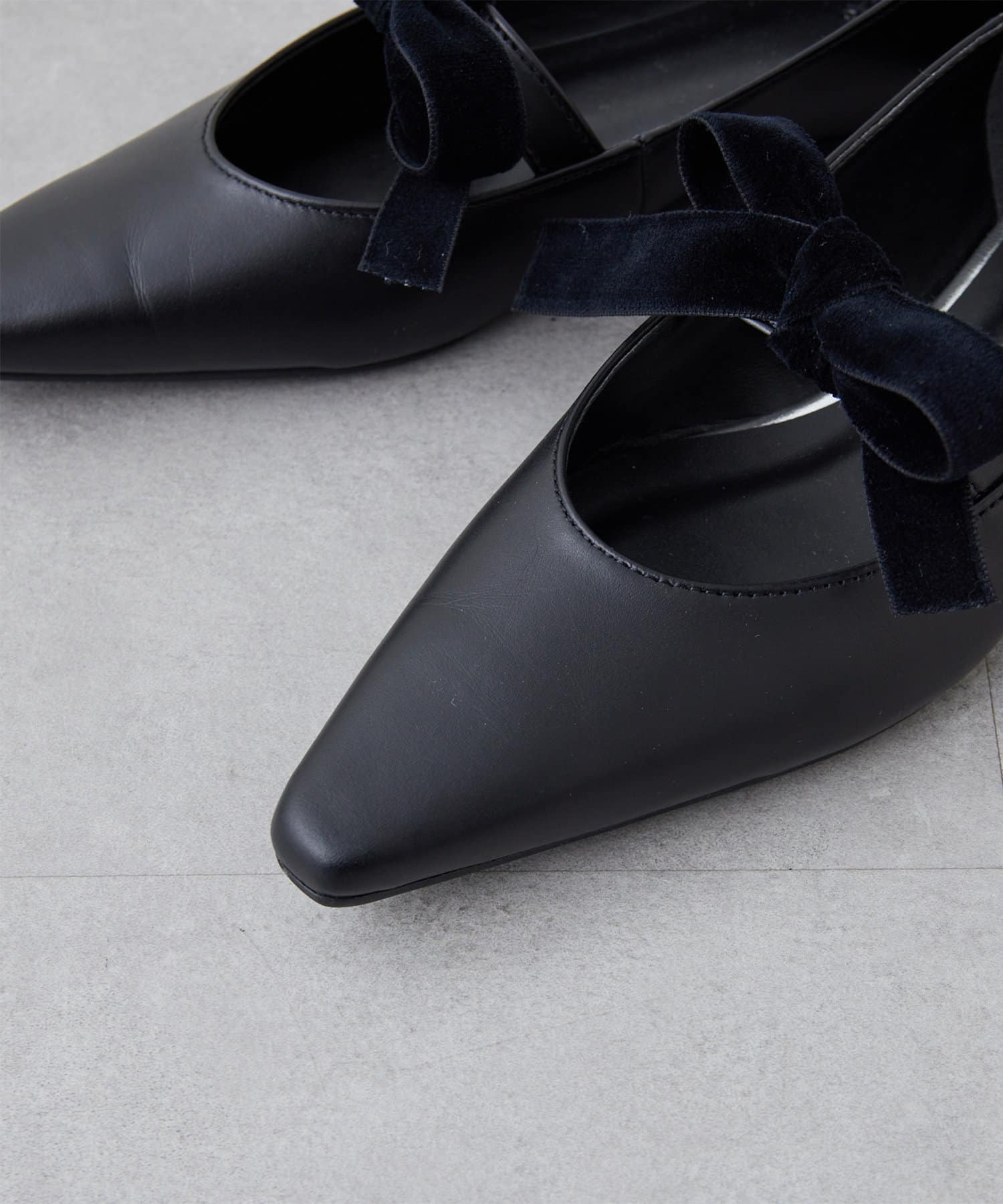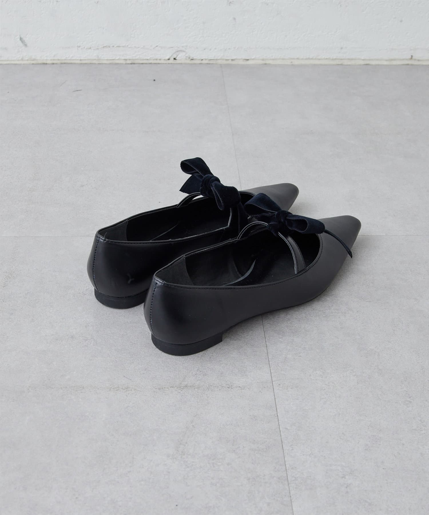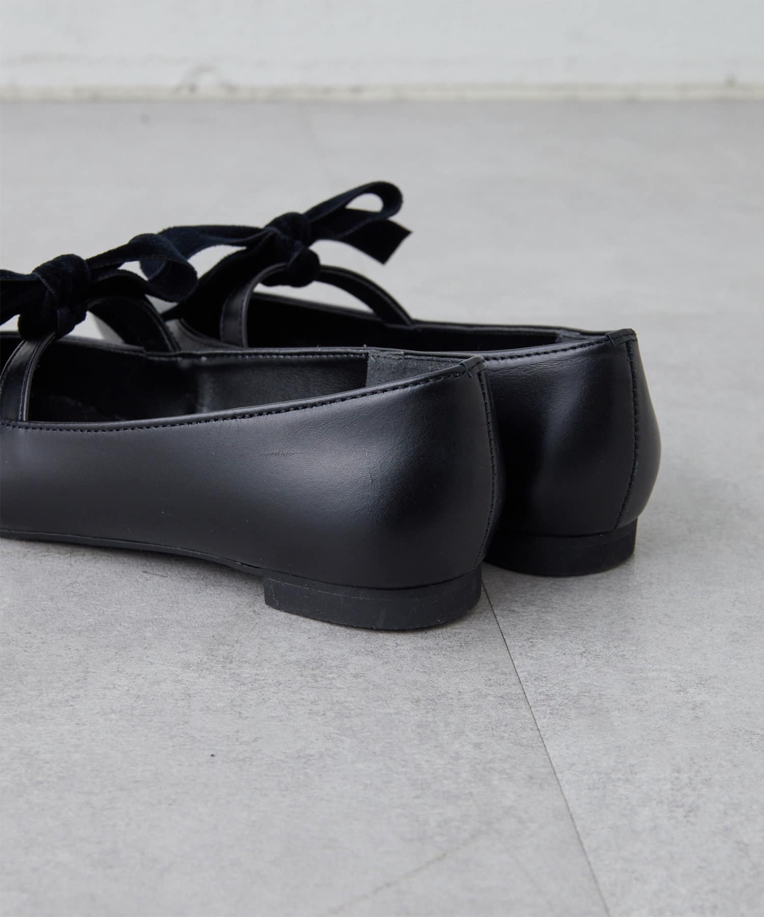 ●取り外しが可能なリボンが付いた2WAY仕様のフラットシューズ。