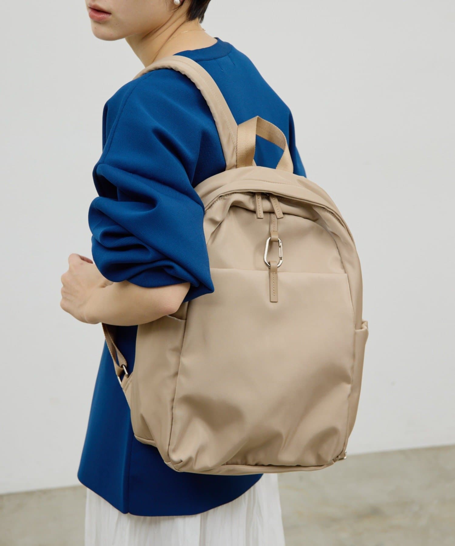 ●フロントにはカラビナデザインのワンポイント。
