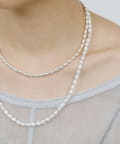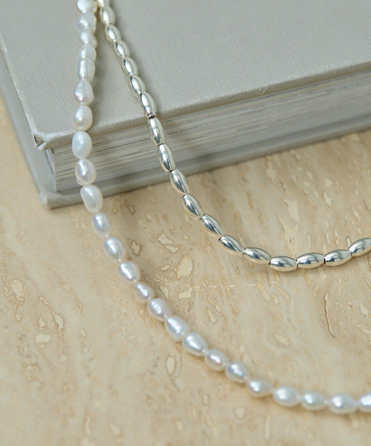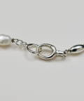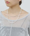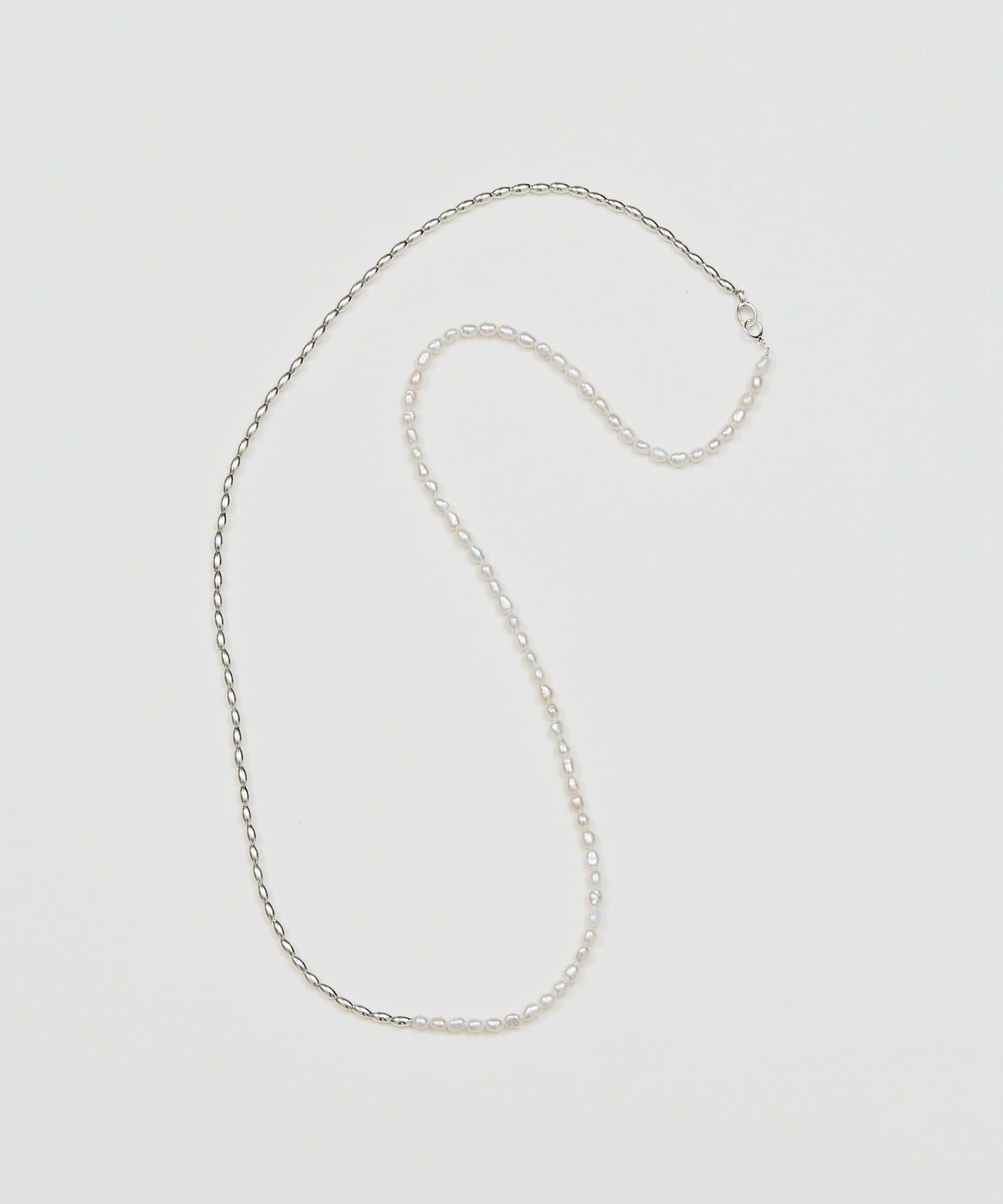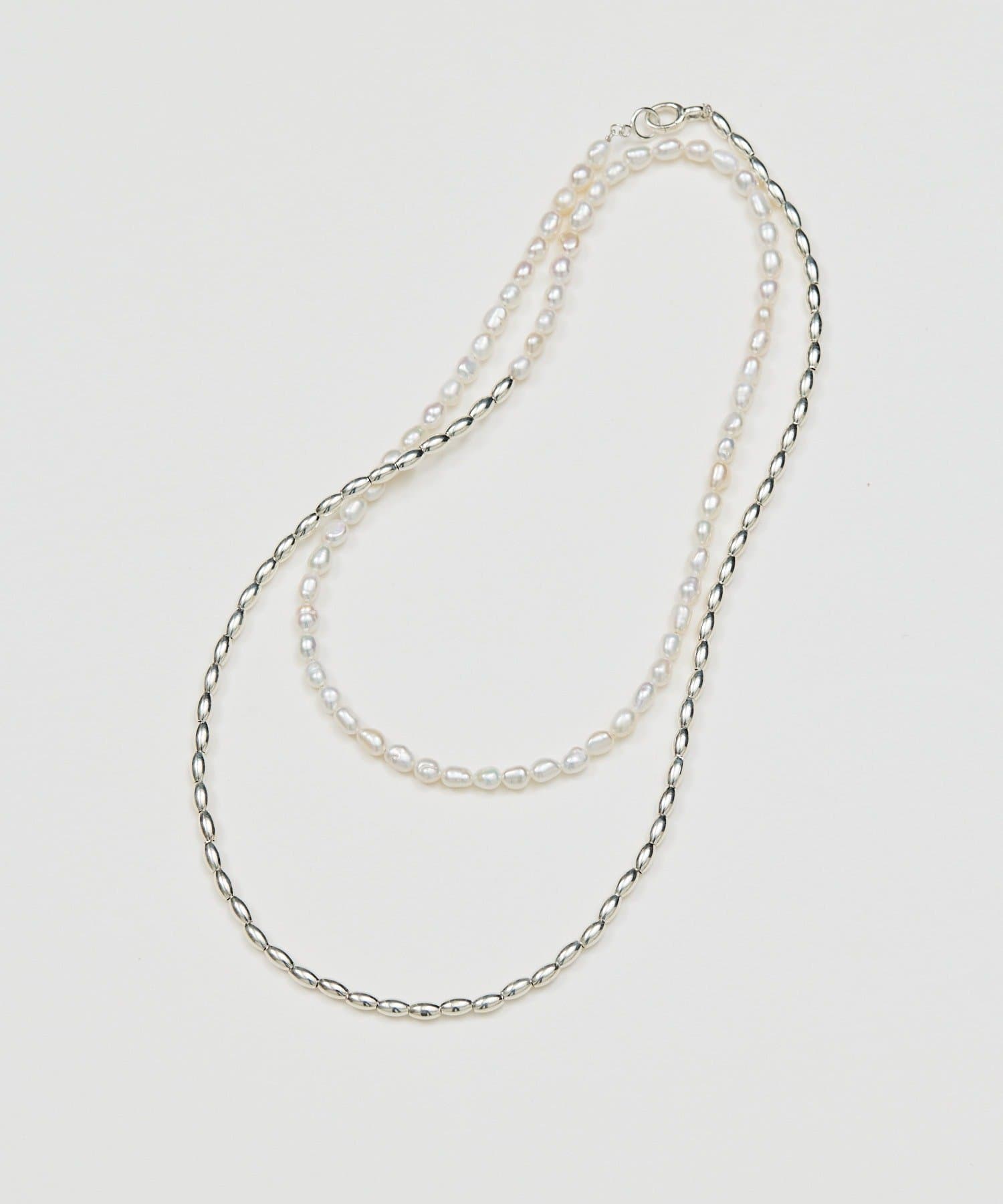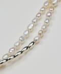 ●小粒パールとモードなシルバーパーツの個性が光るネックレス。