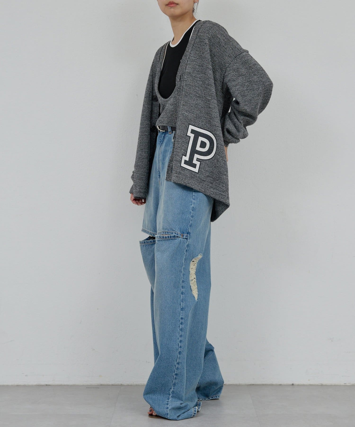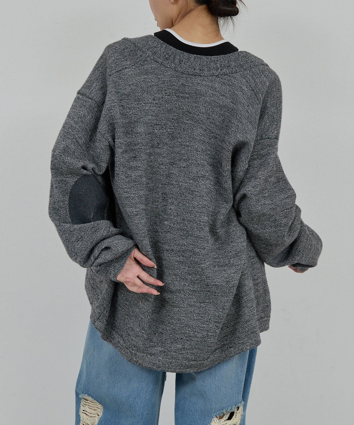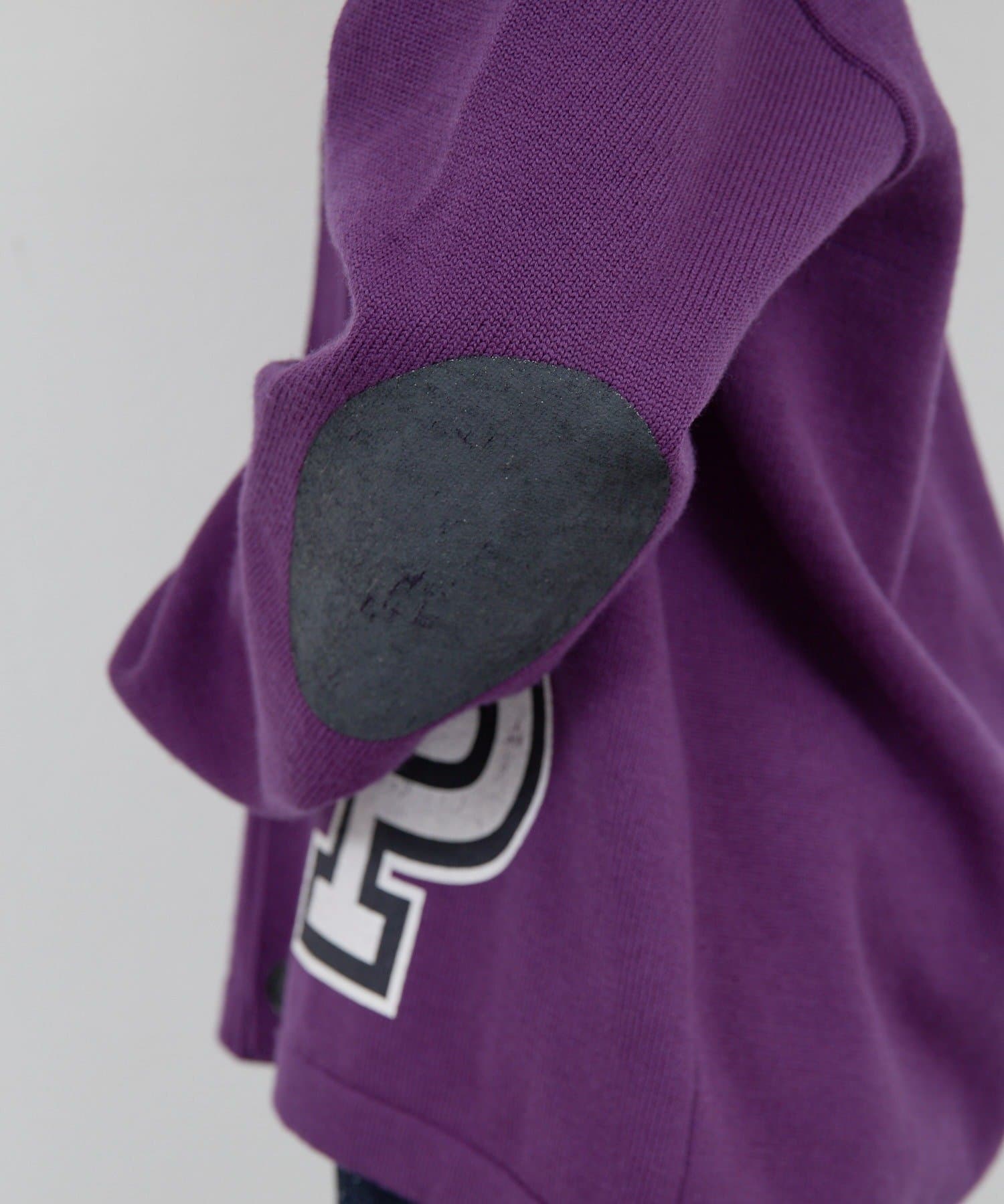 ●カレッジ調のレタードとエルボーパッチがポイント。