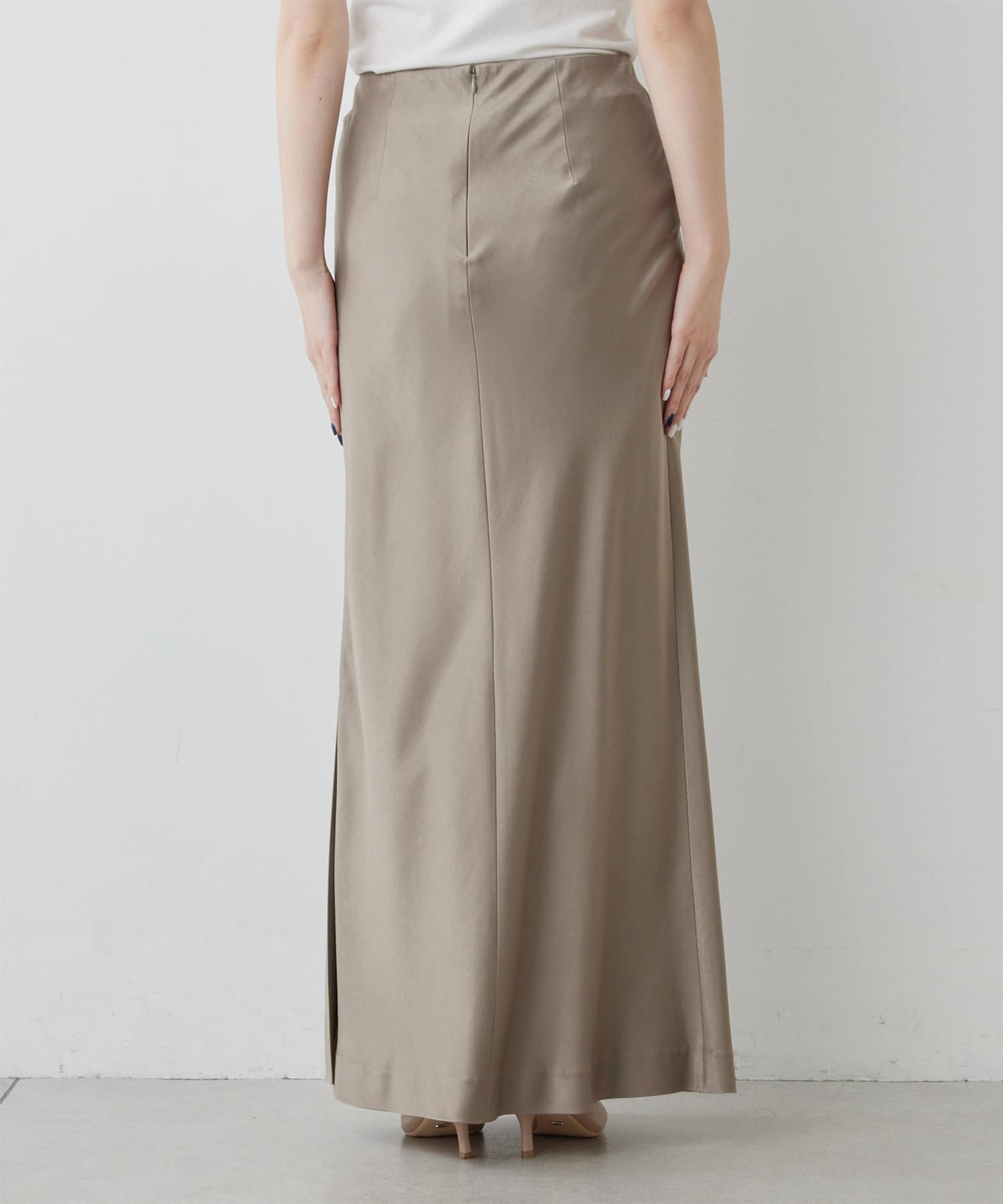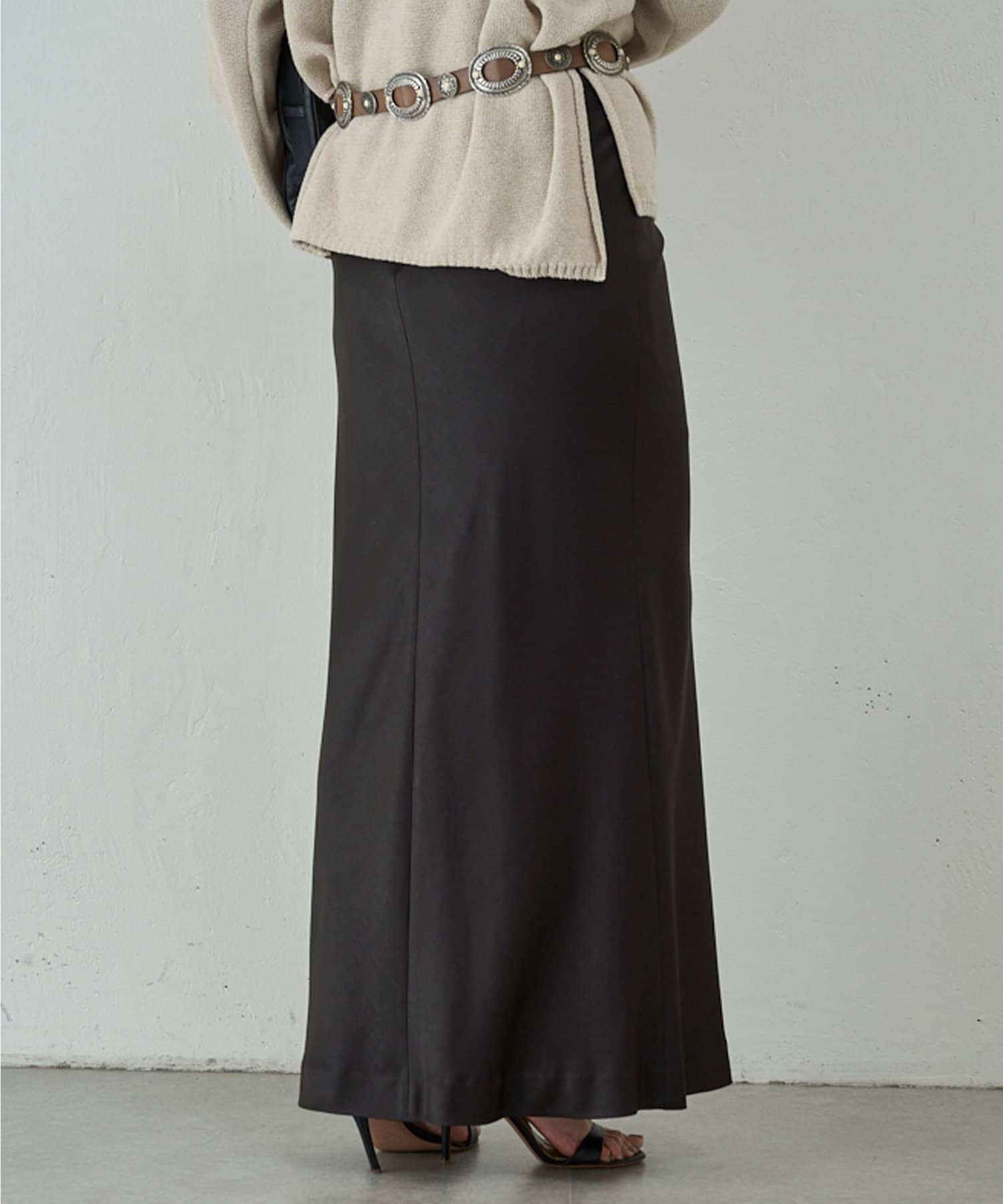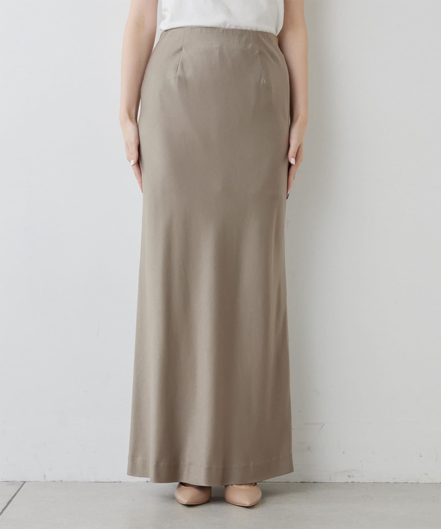 スタイリングを上品に纏めるサテンマキシスカート