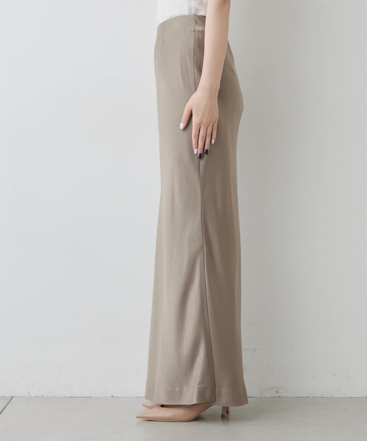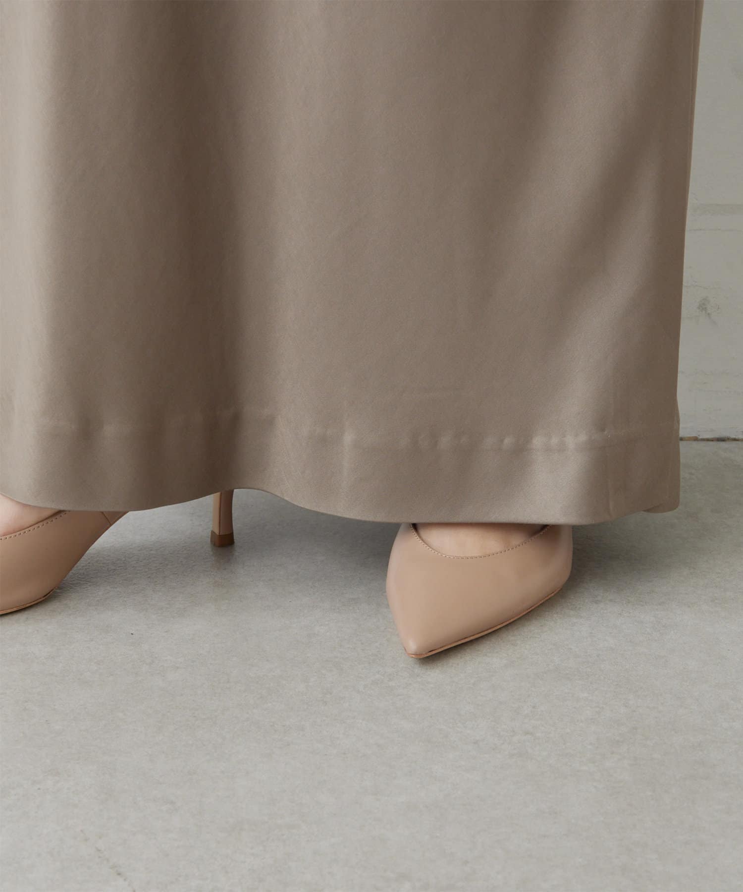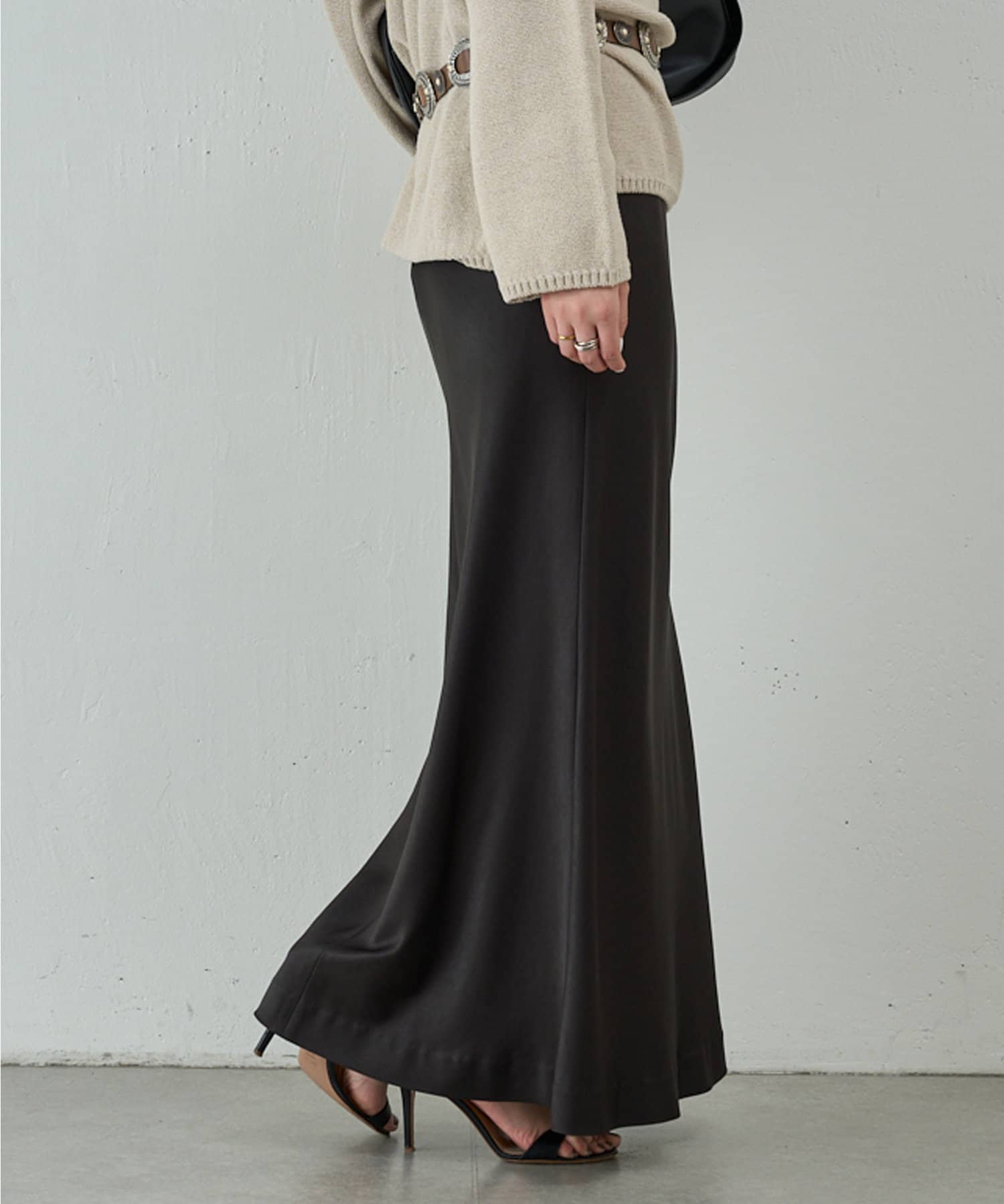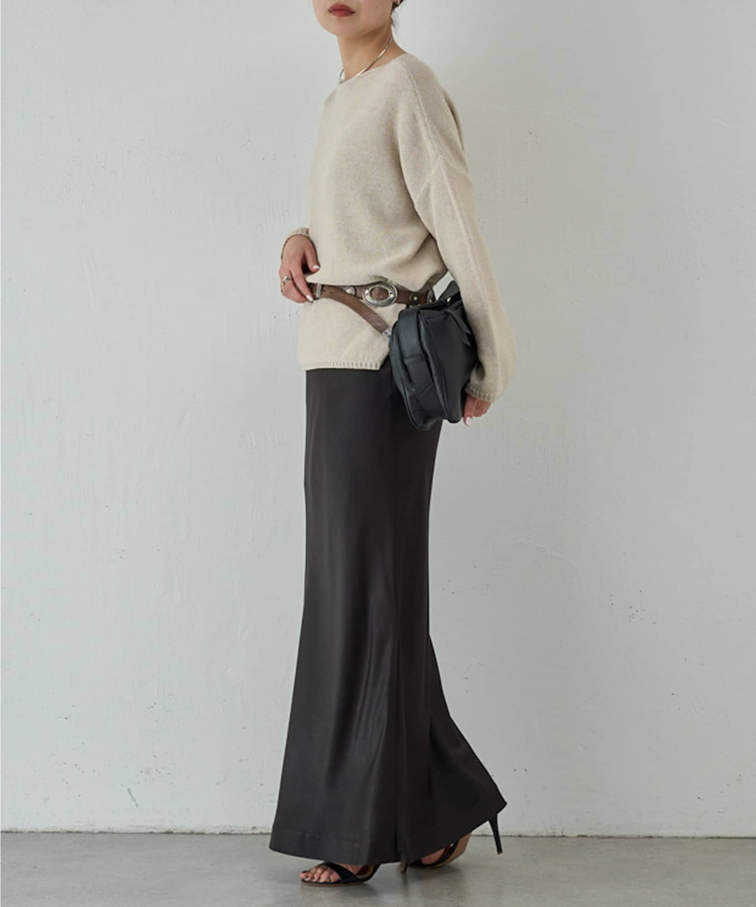 スタイリングを上品に纏めるサテンマキシスカート