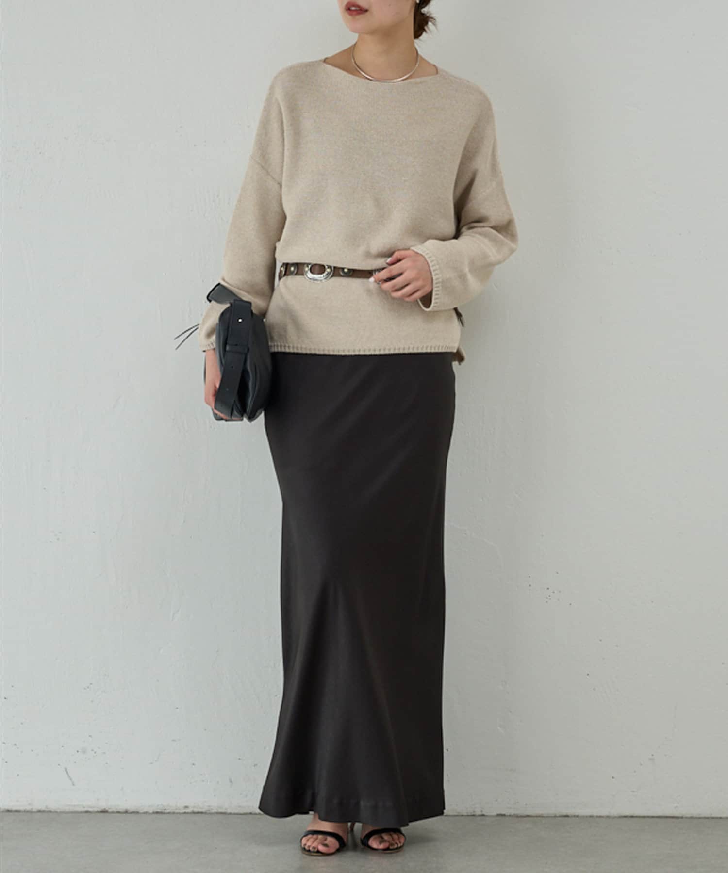 ●腰回りをすっきりと仕上げたロングスカート。