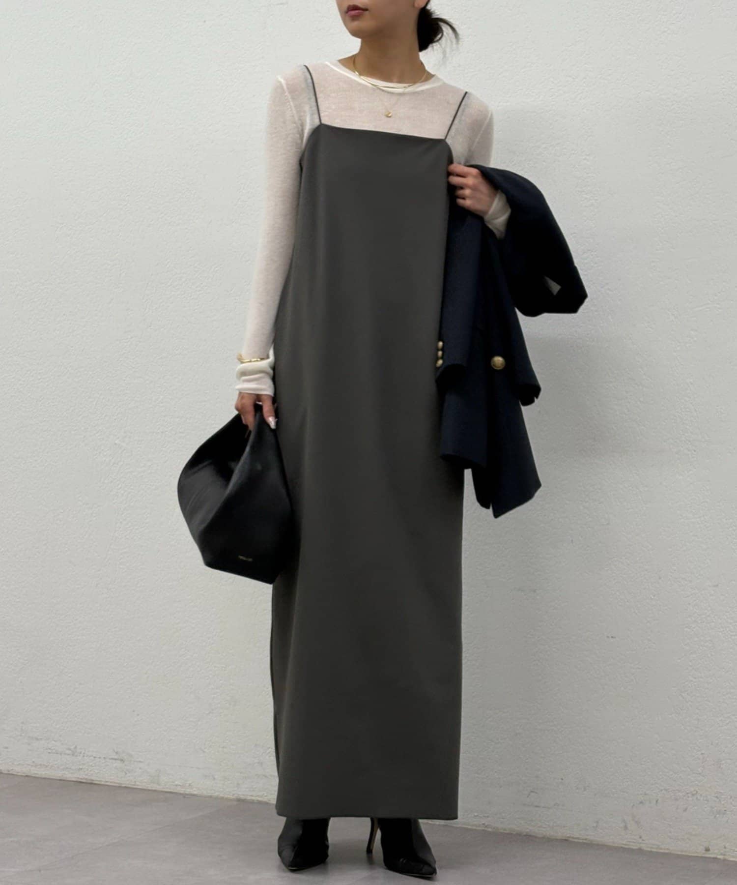 【シーズンレス】ミニマルなデザインのキャミマキシワンピース