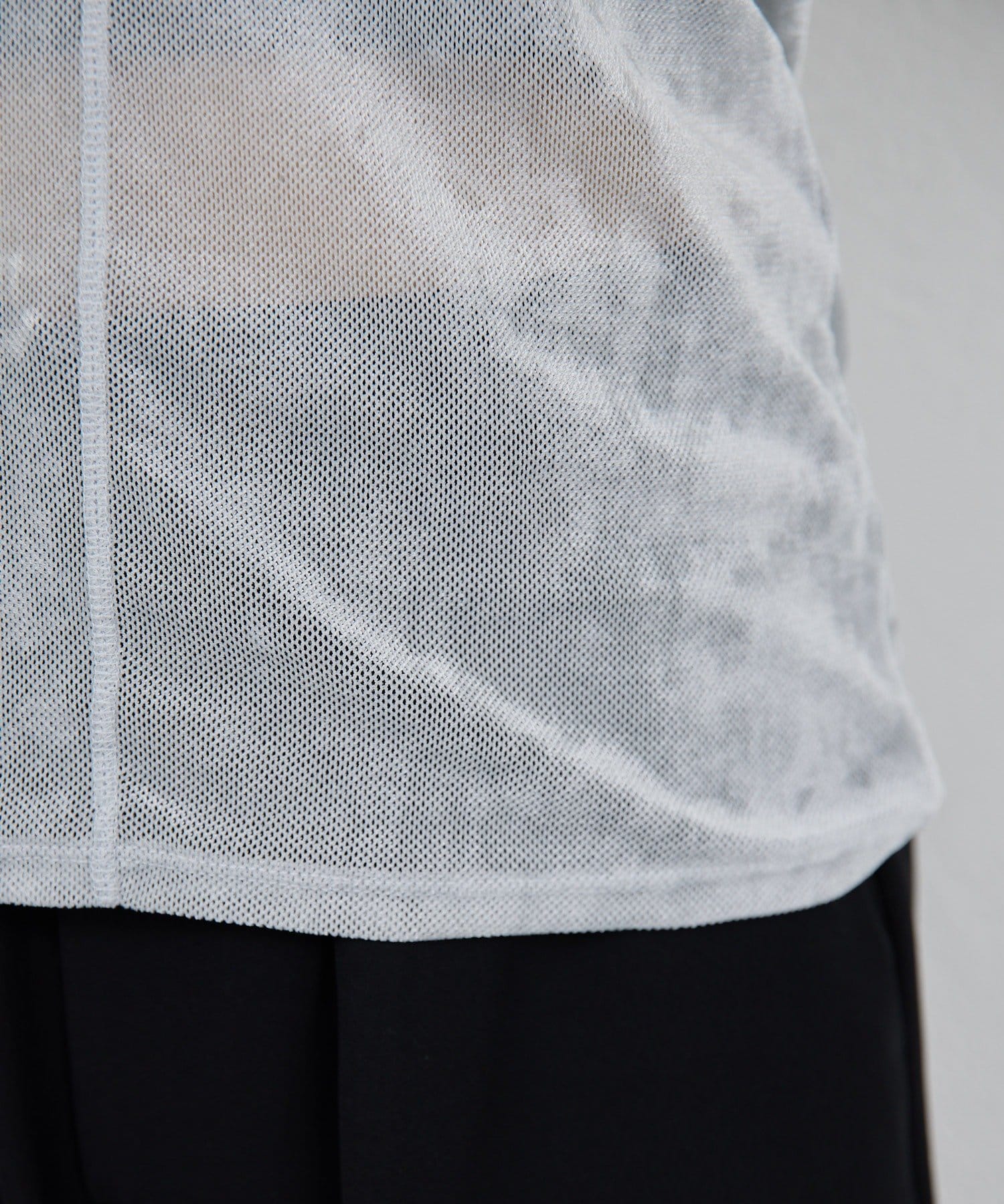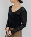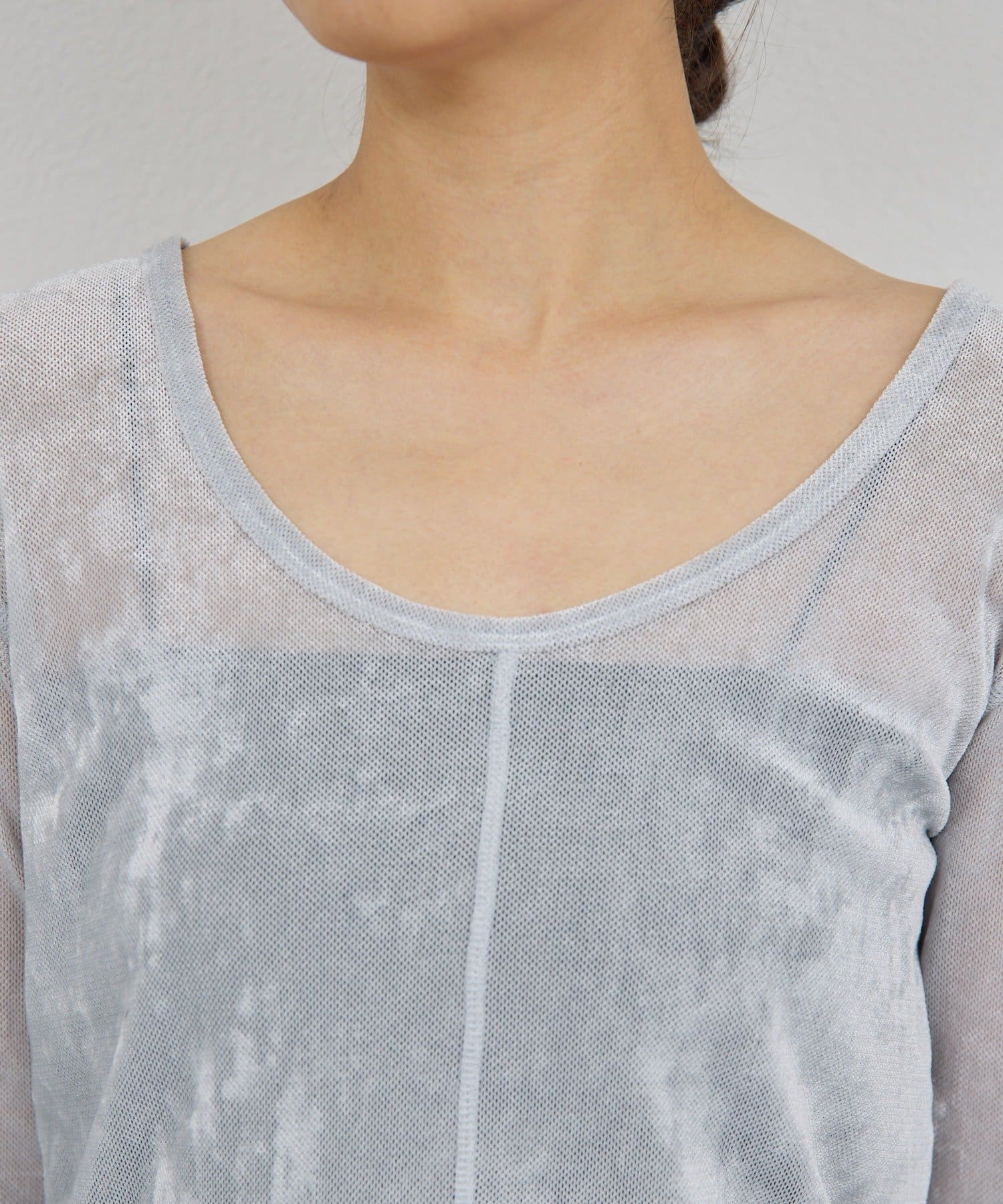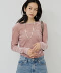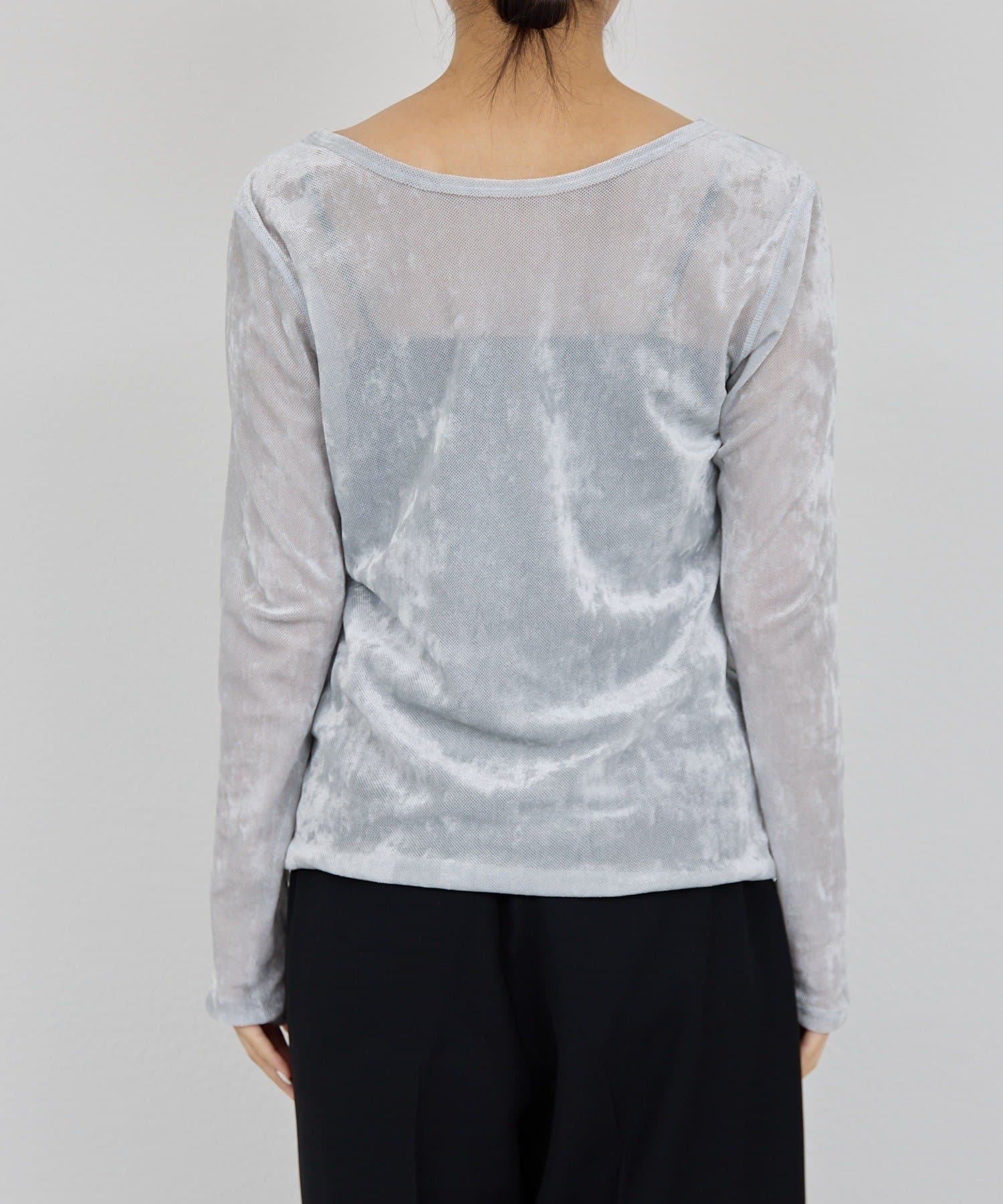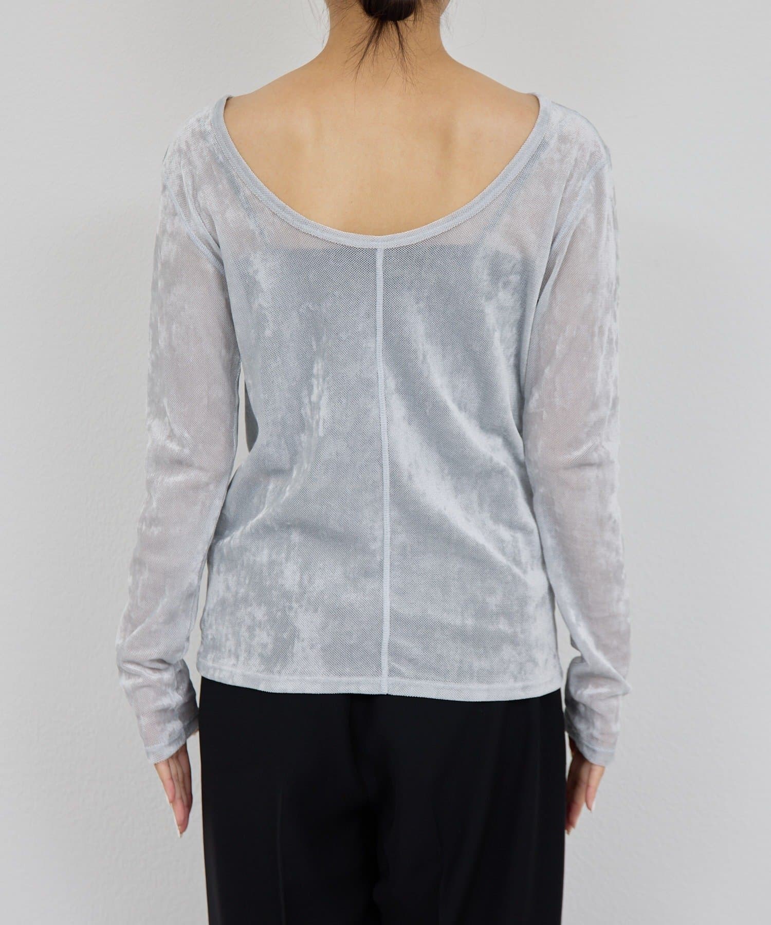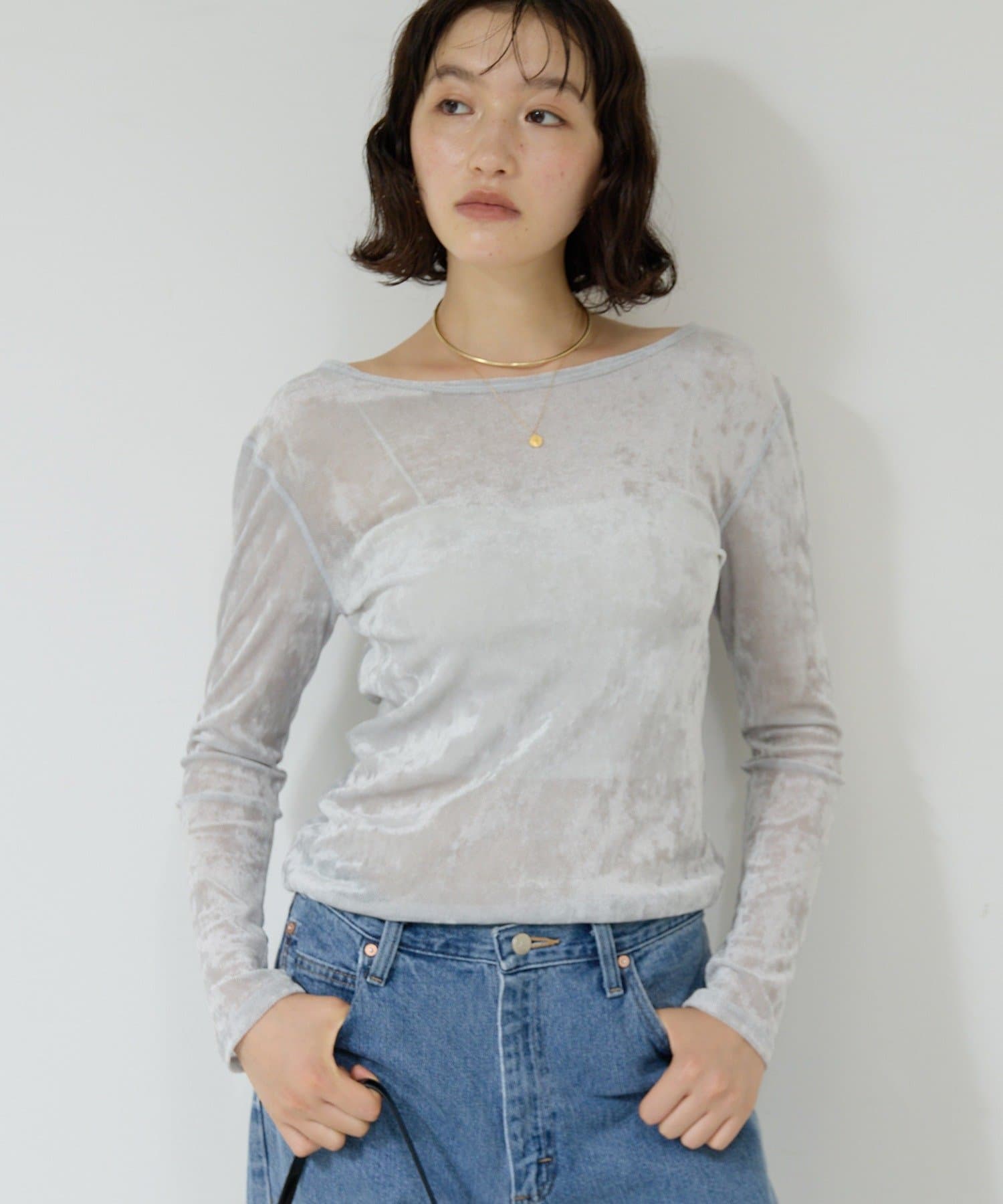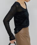 ●ベロアのような光沢と、メッシュの涼しさを併せ持つ秋見えトップス。