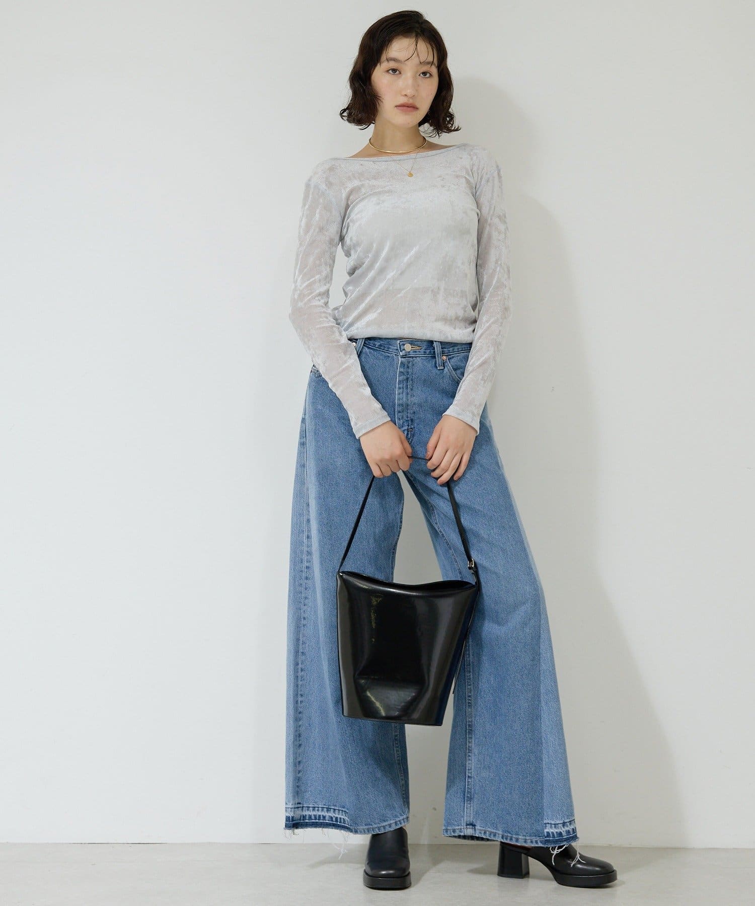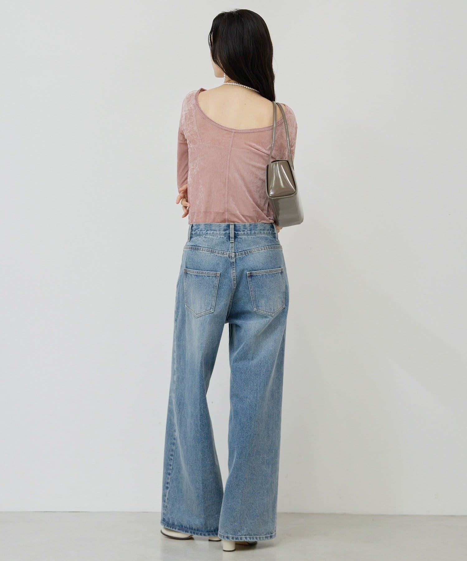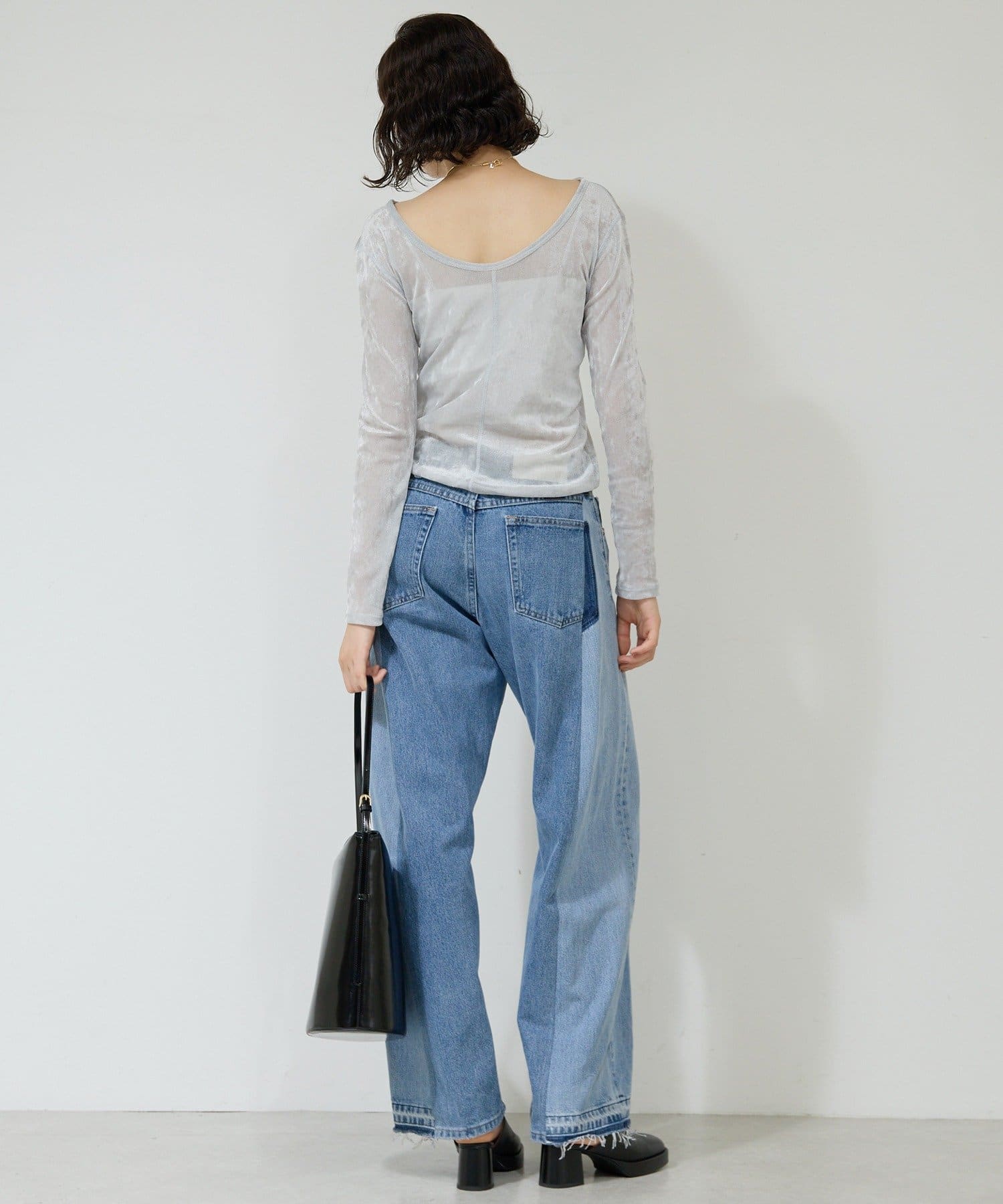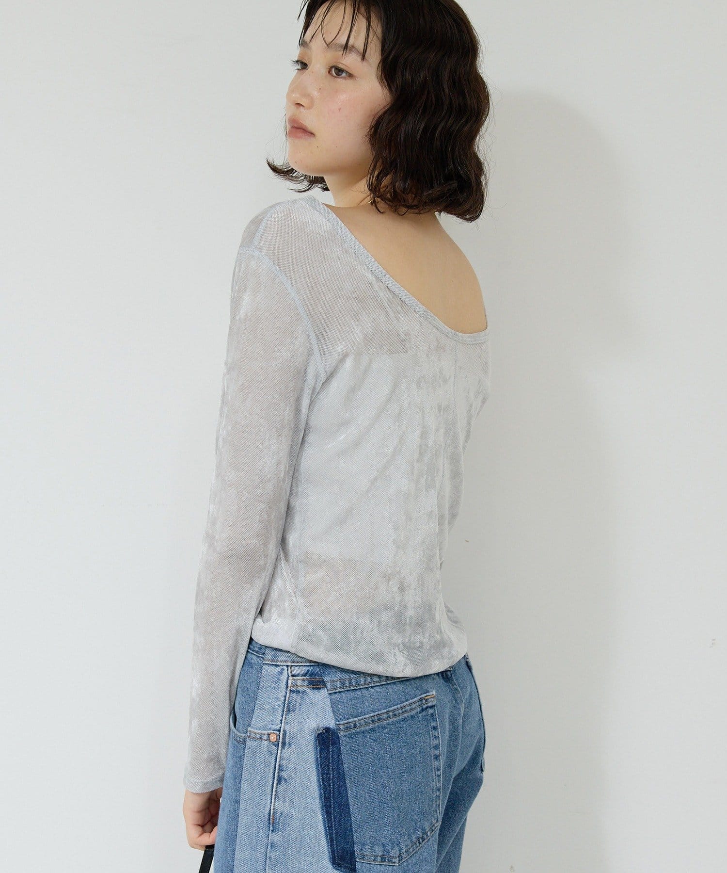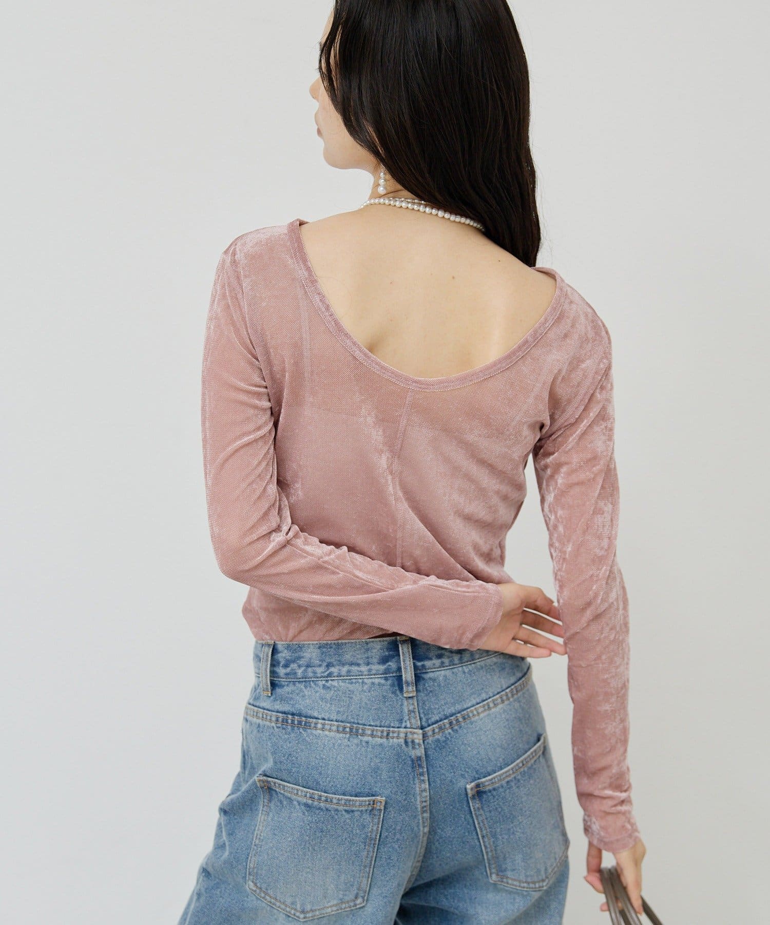 ●ベロアのような光沢と、メッシュの涼しさを併せ持つ秋見えトップス。