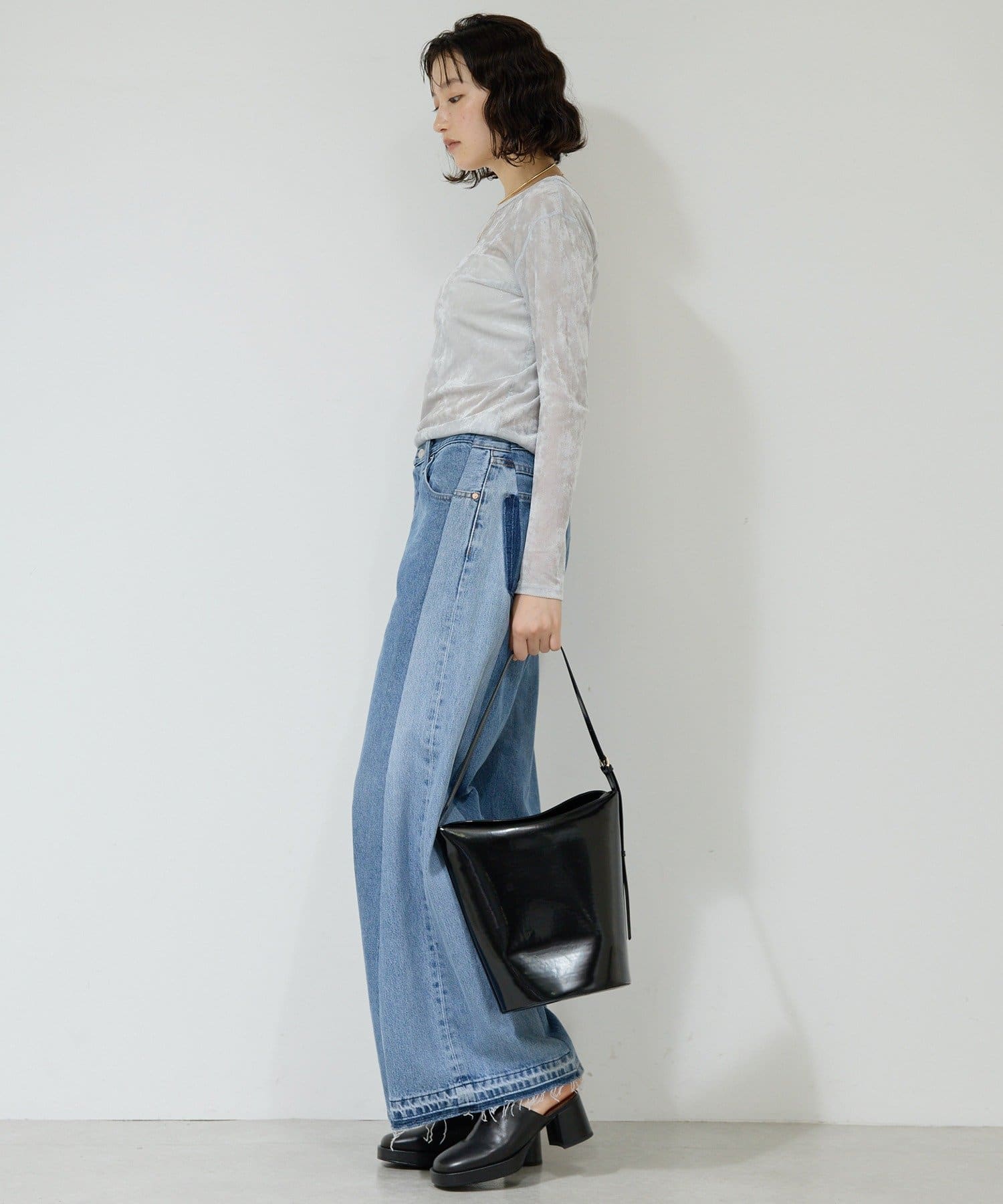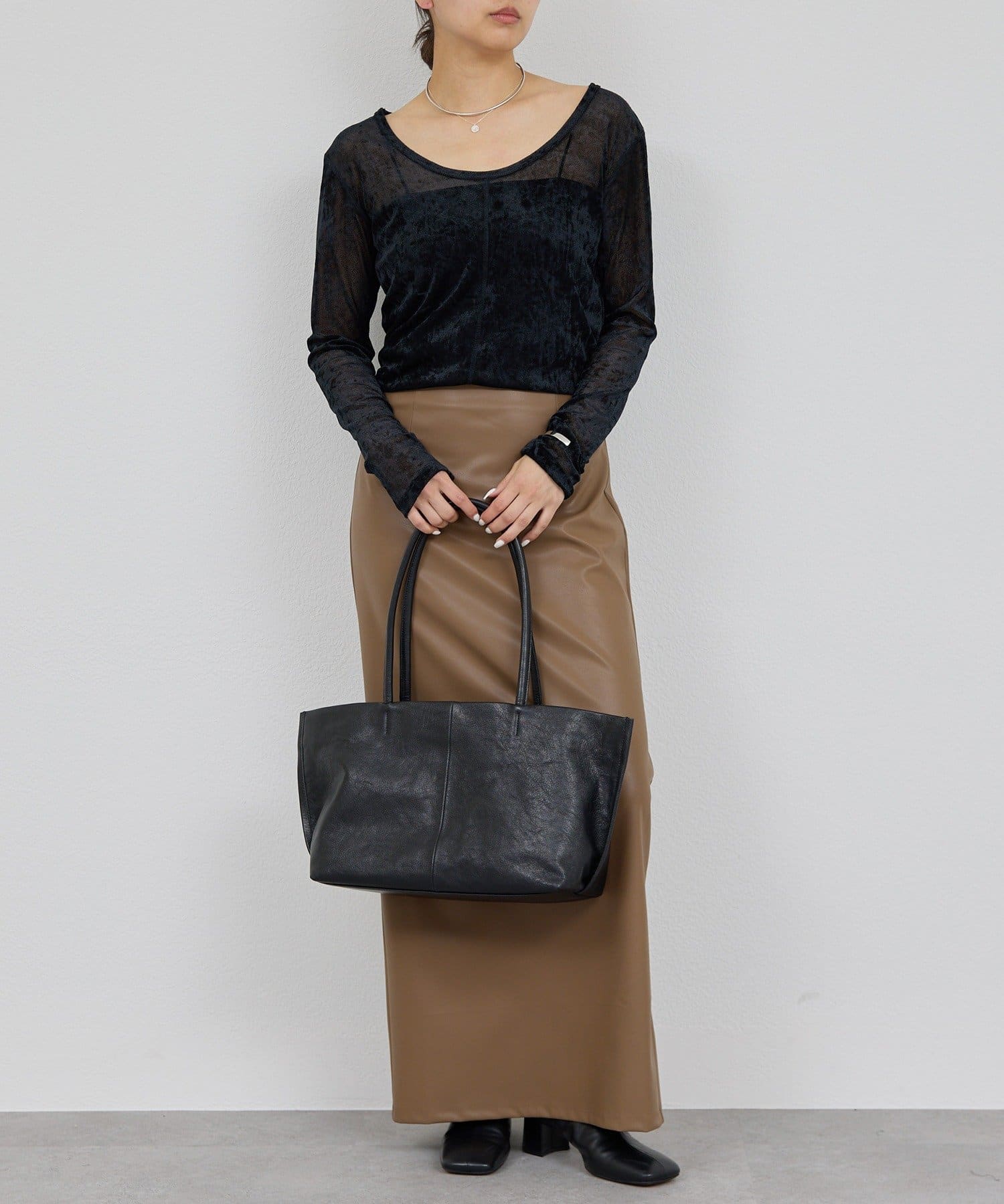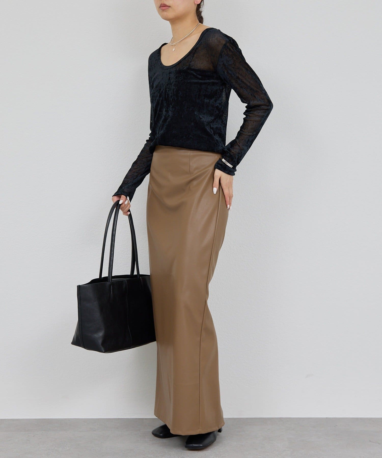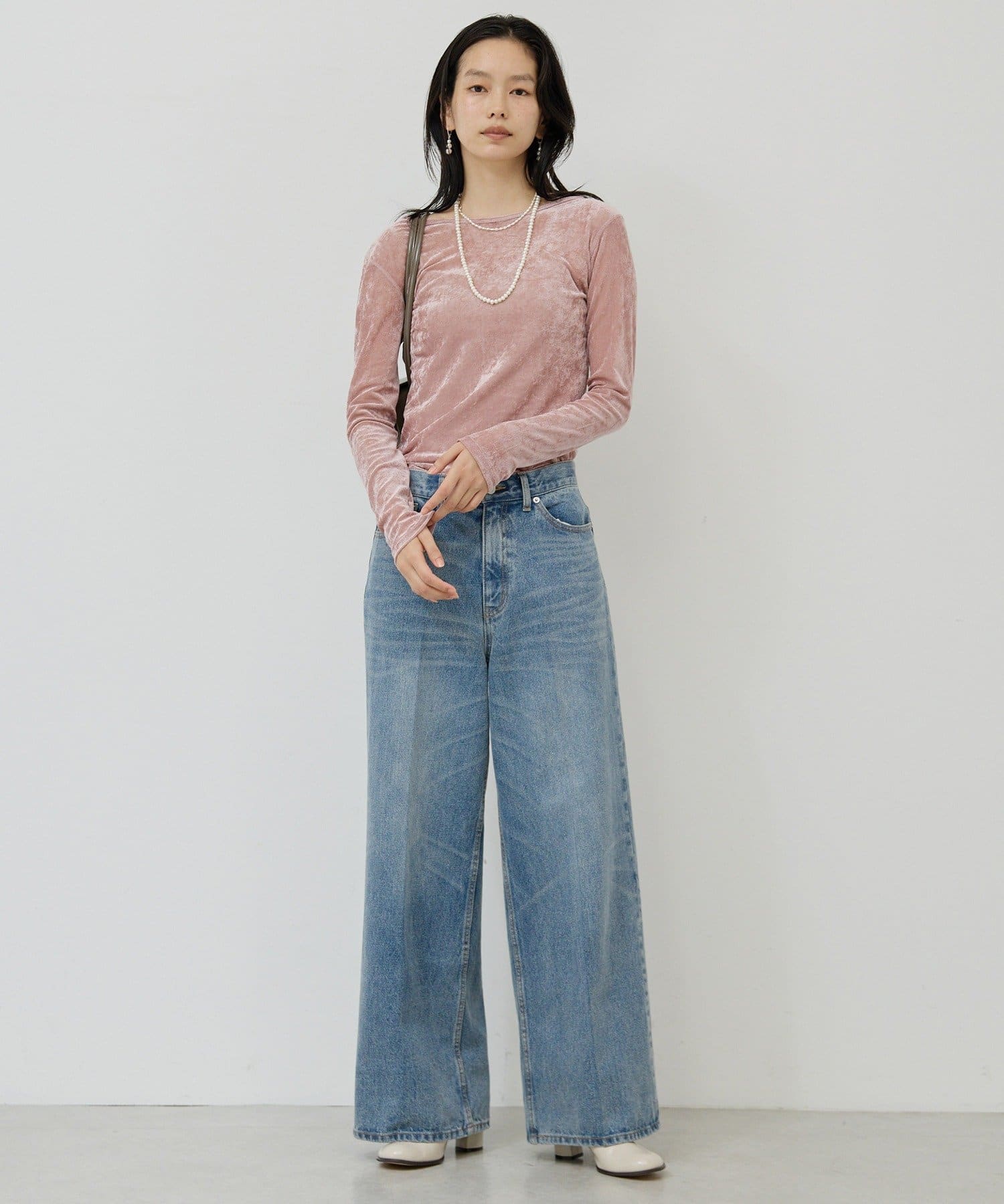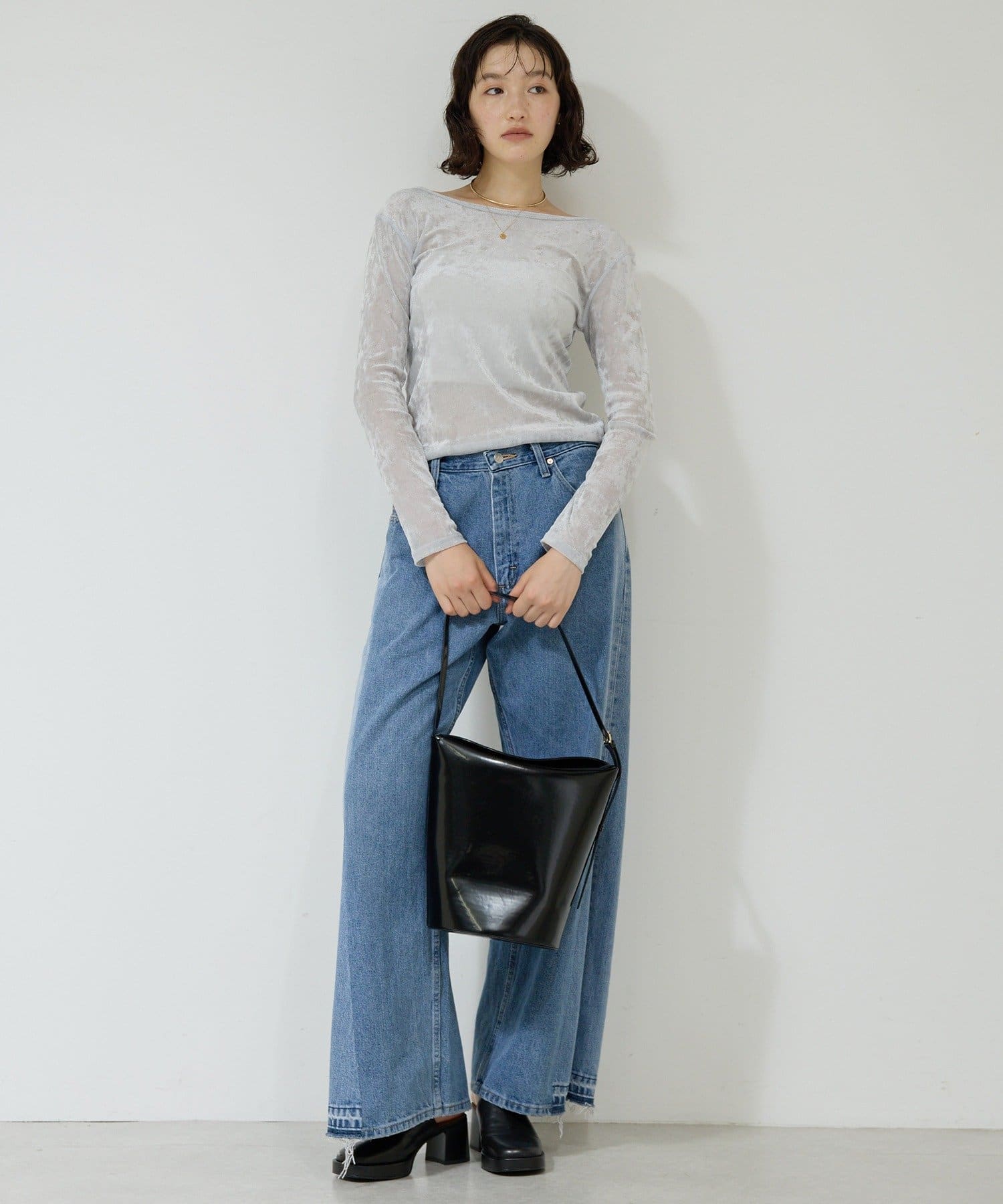 ●ベロアのような光沢と、メッシュの涼しさを併せ持つ秋見えトップス。