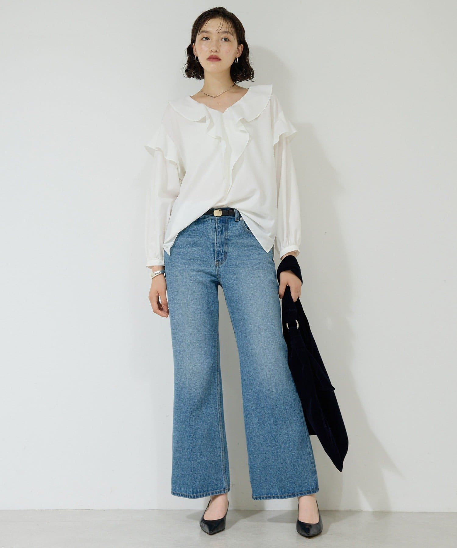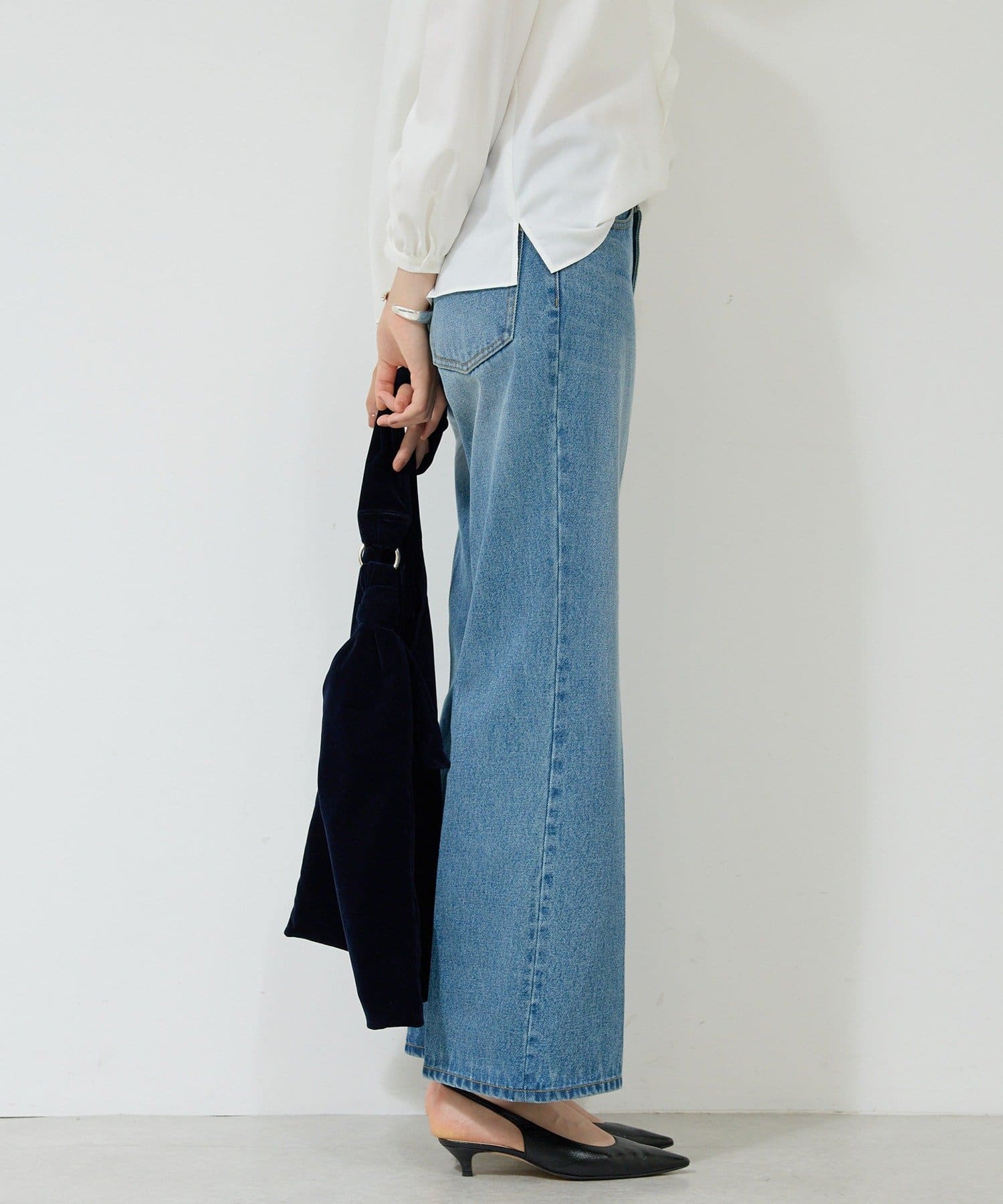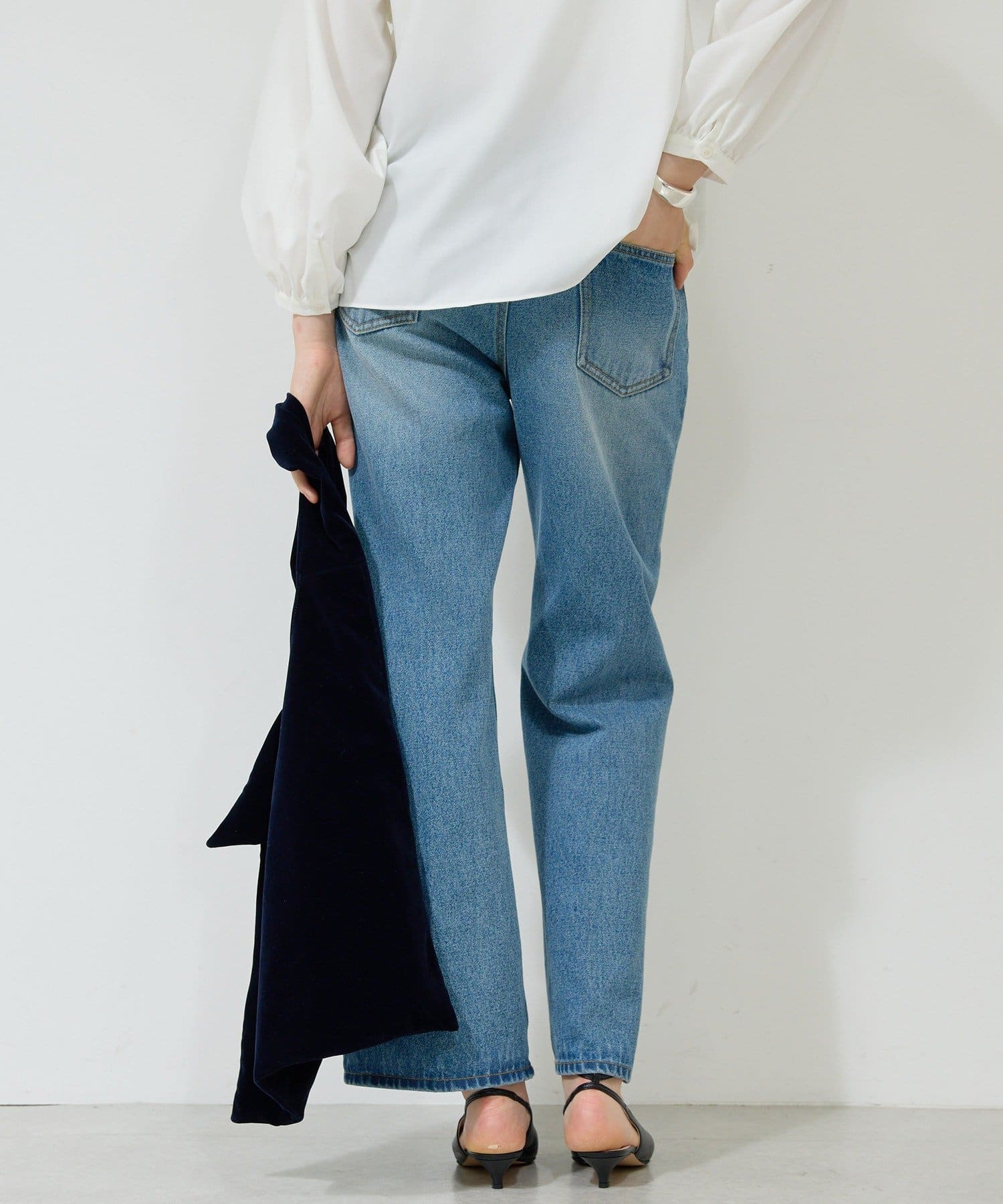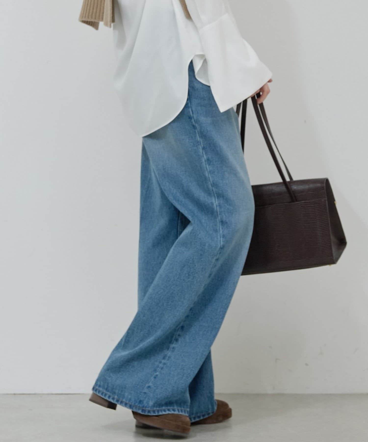 ●高めのウエスト位置が脚長効果を演出し、トップスインも綺麗に決まる。