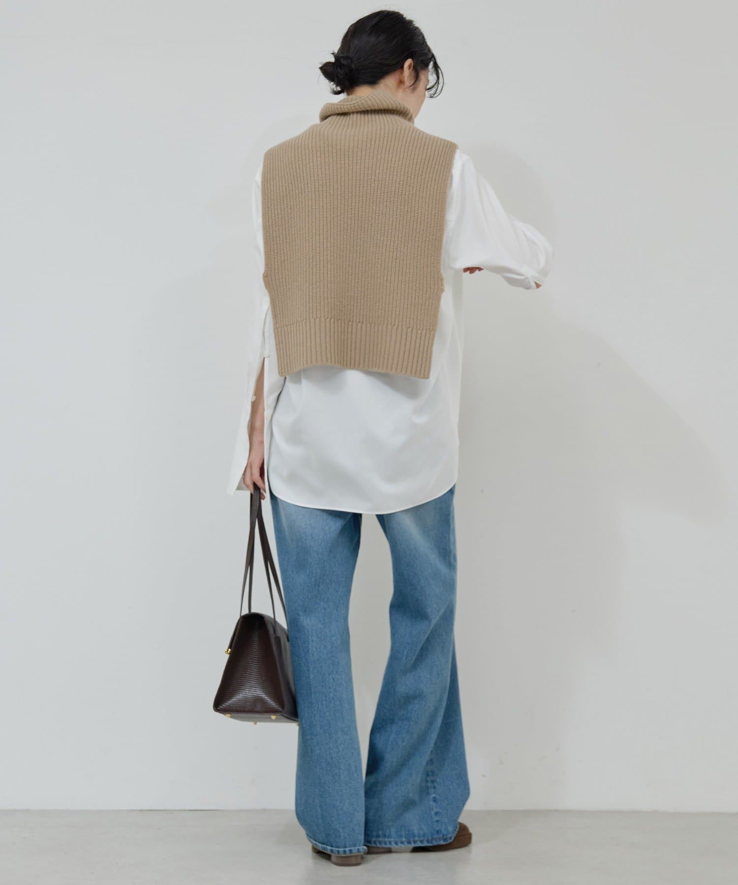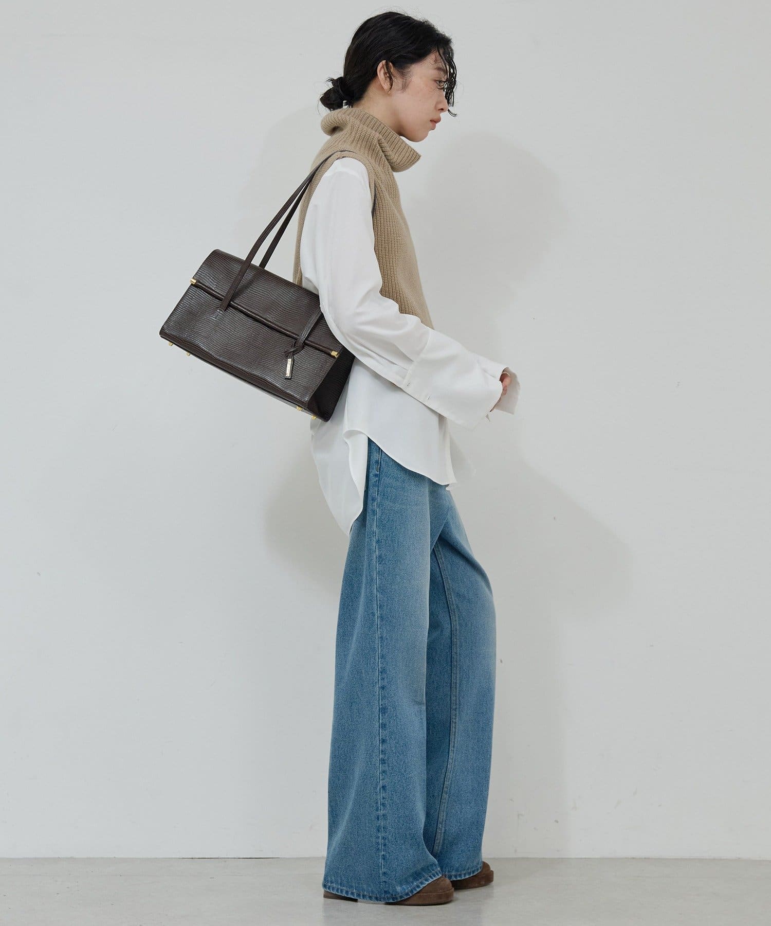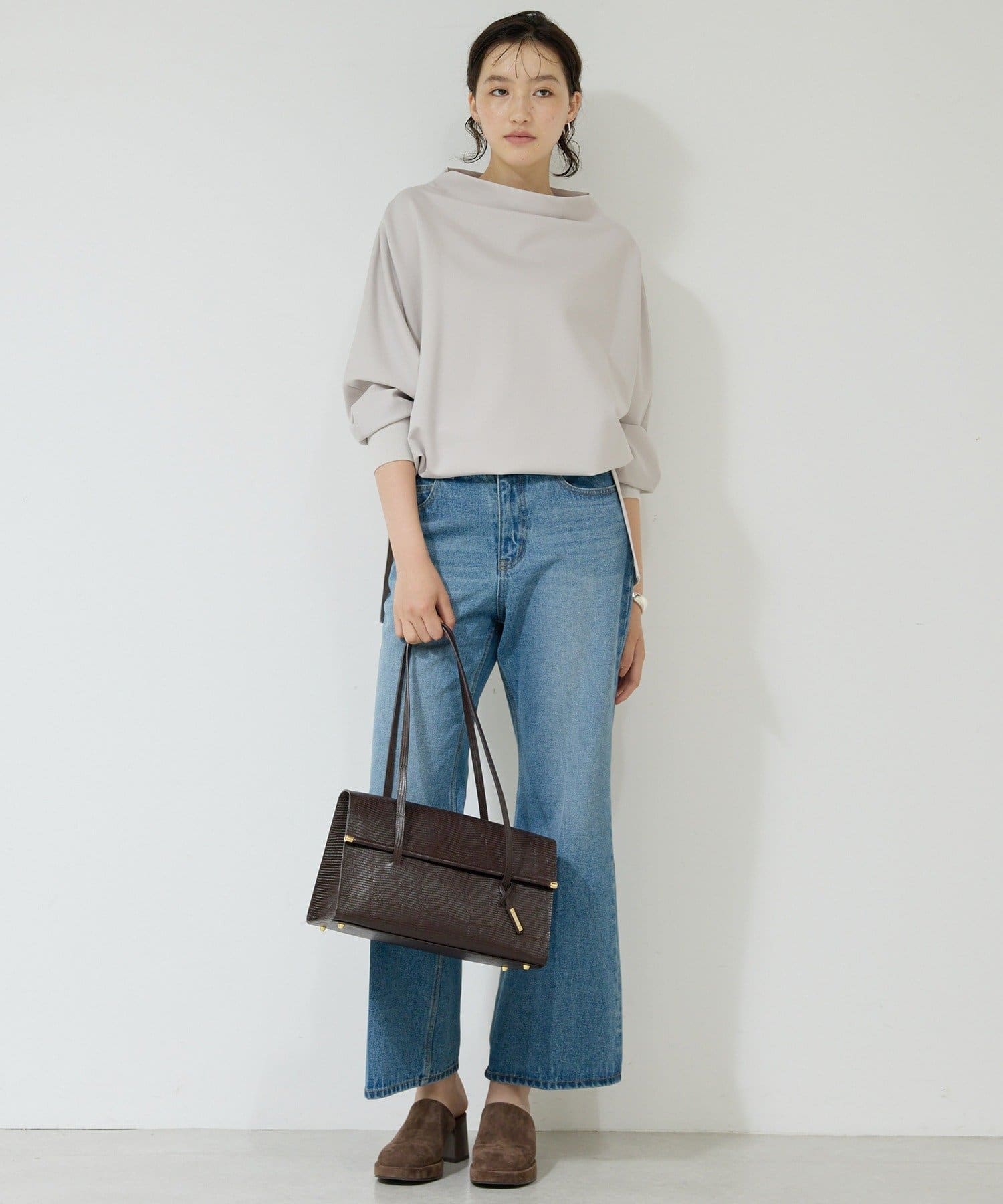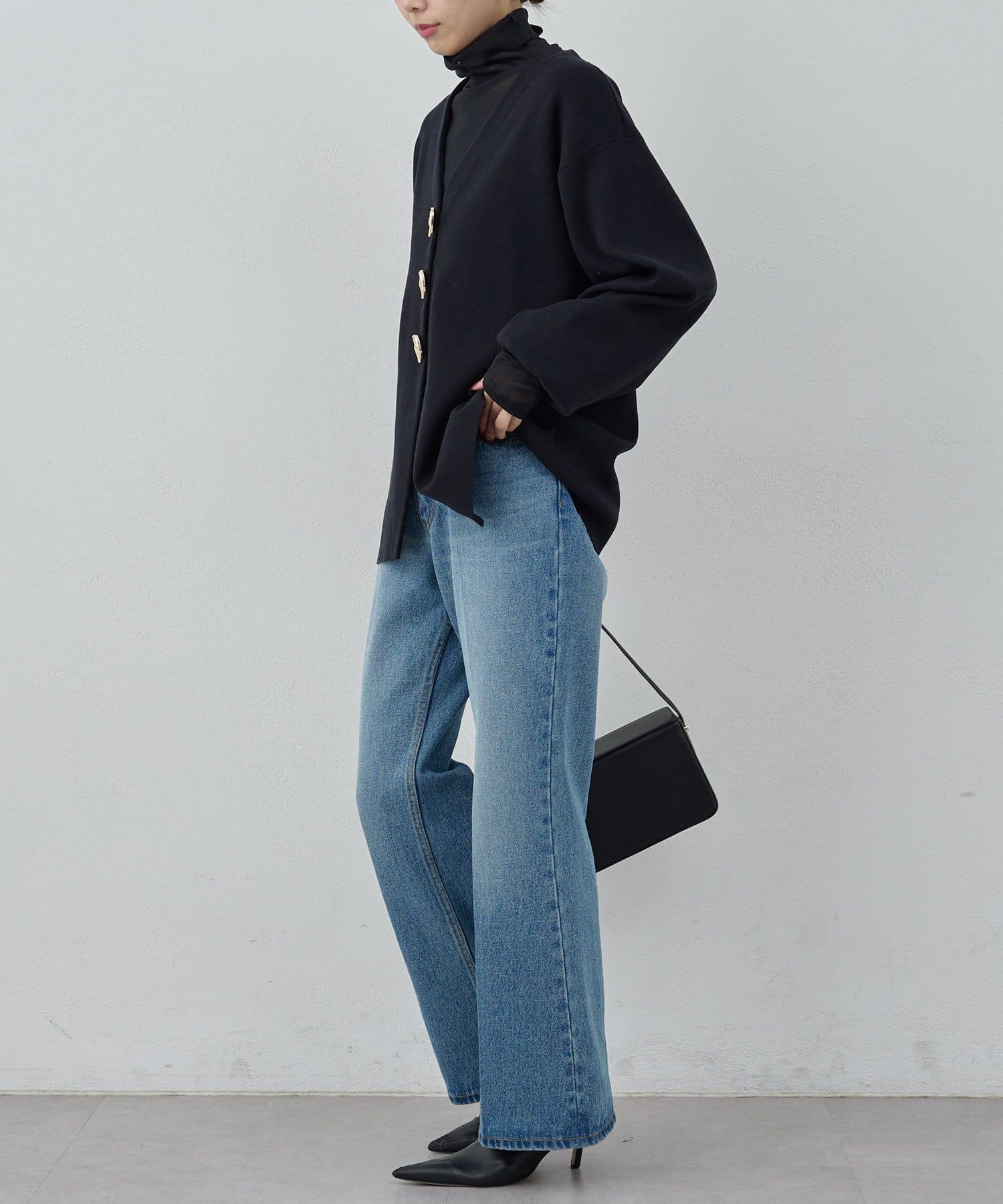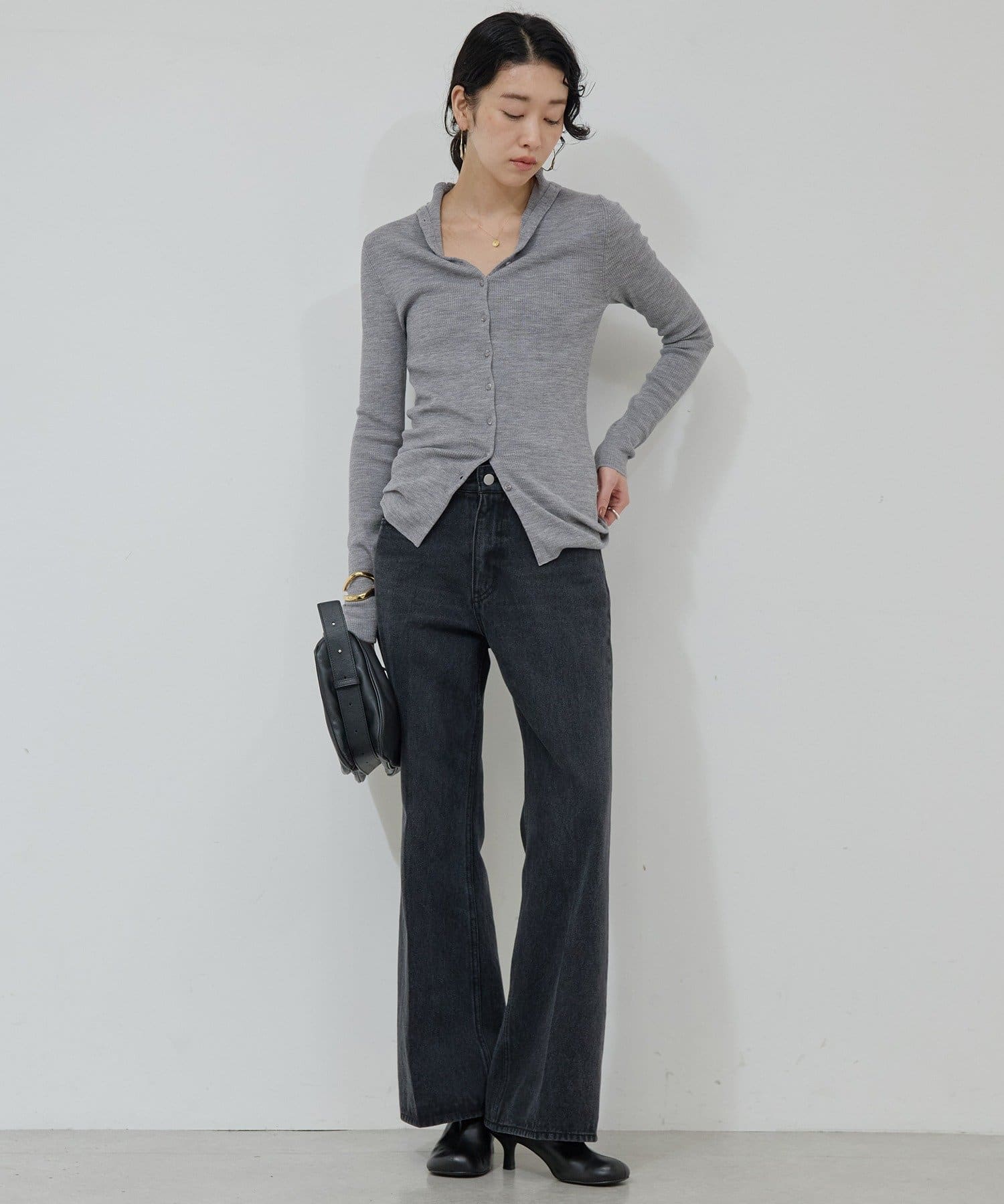 ●高めのウエスト位置が脚長効果を演出し、トップスインも綺麗に決まる。