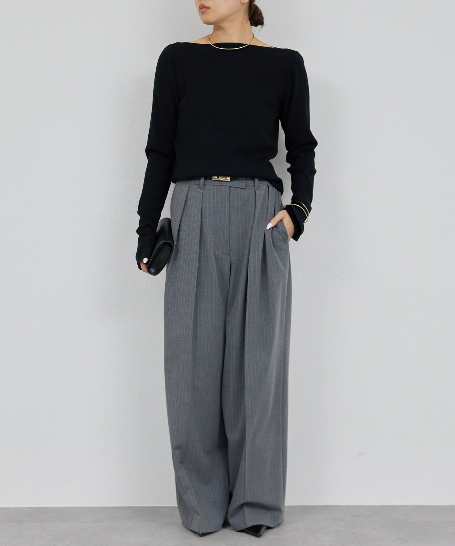 ●首元からデコルテにかけてのラインを美しく見せるボートネック。