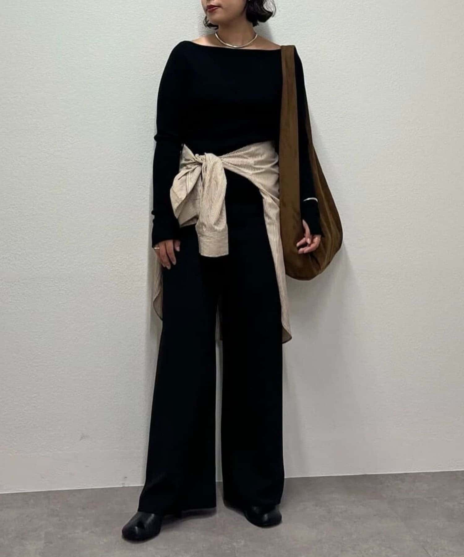 ●伸縮性がありフィットしつつも、体のラインを拾いすぎず着やすいのが◎。