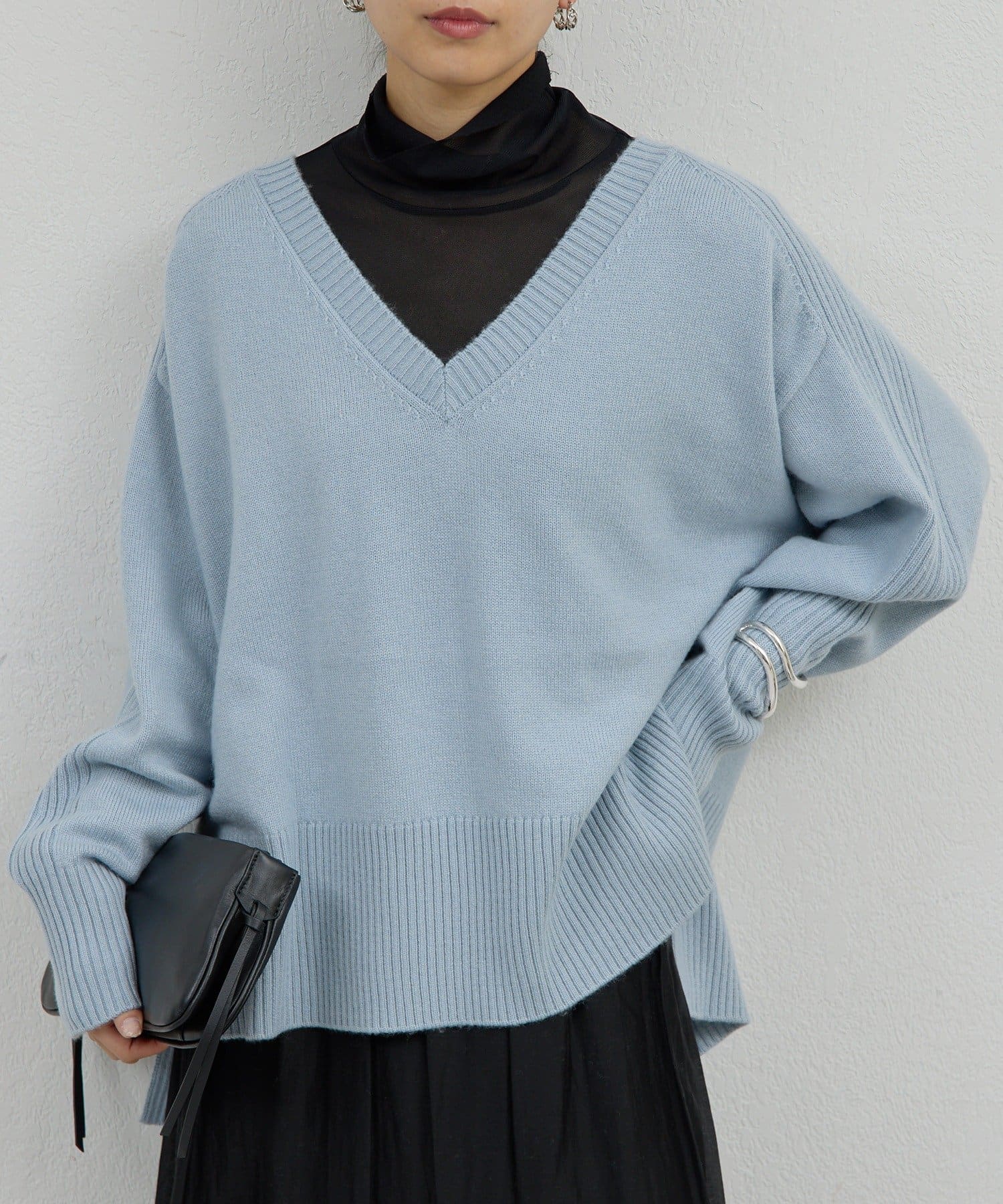●ニットでも着ぶくれしにくい、拘りのVネックデザイン。