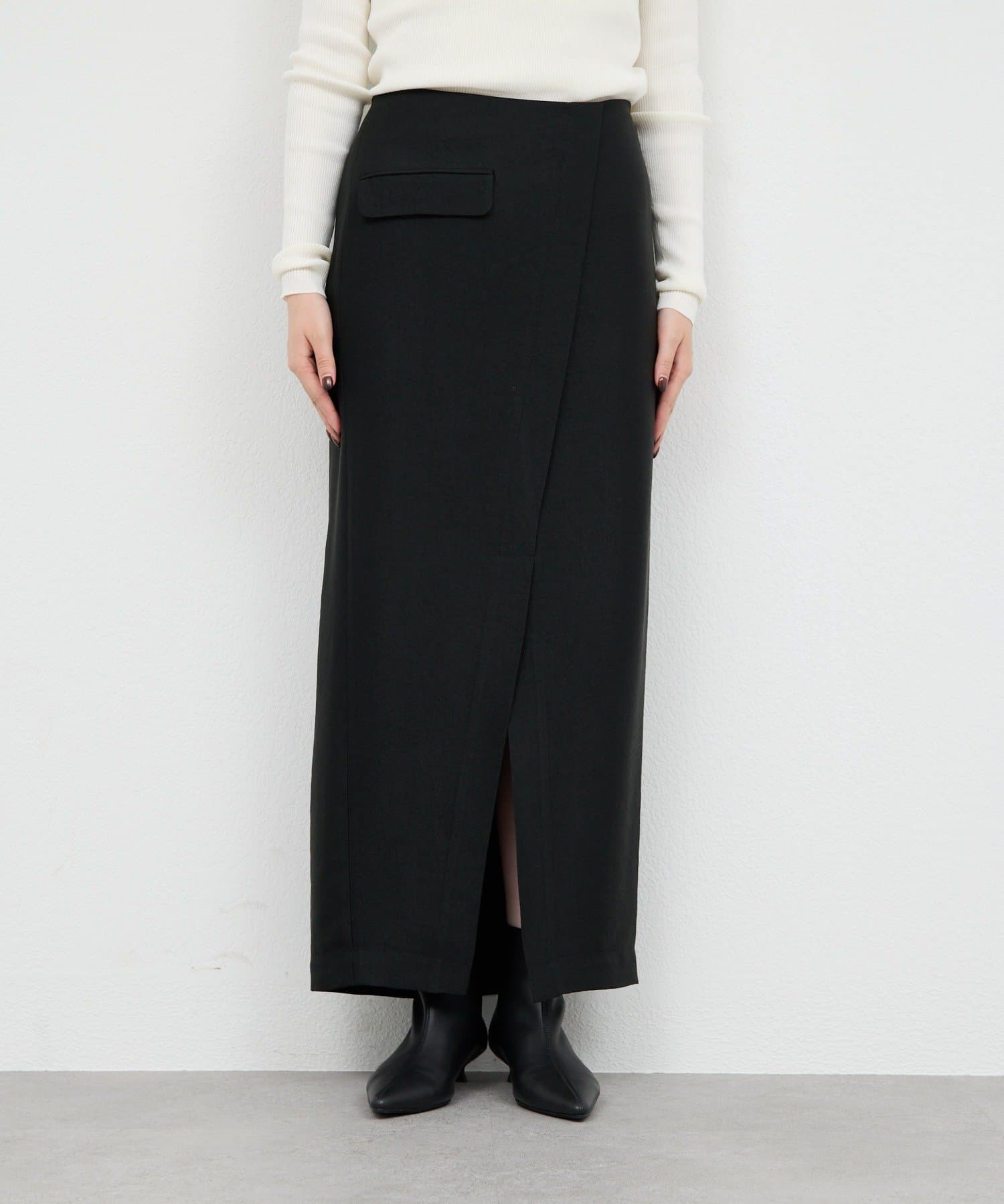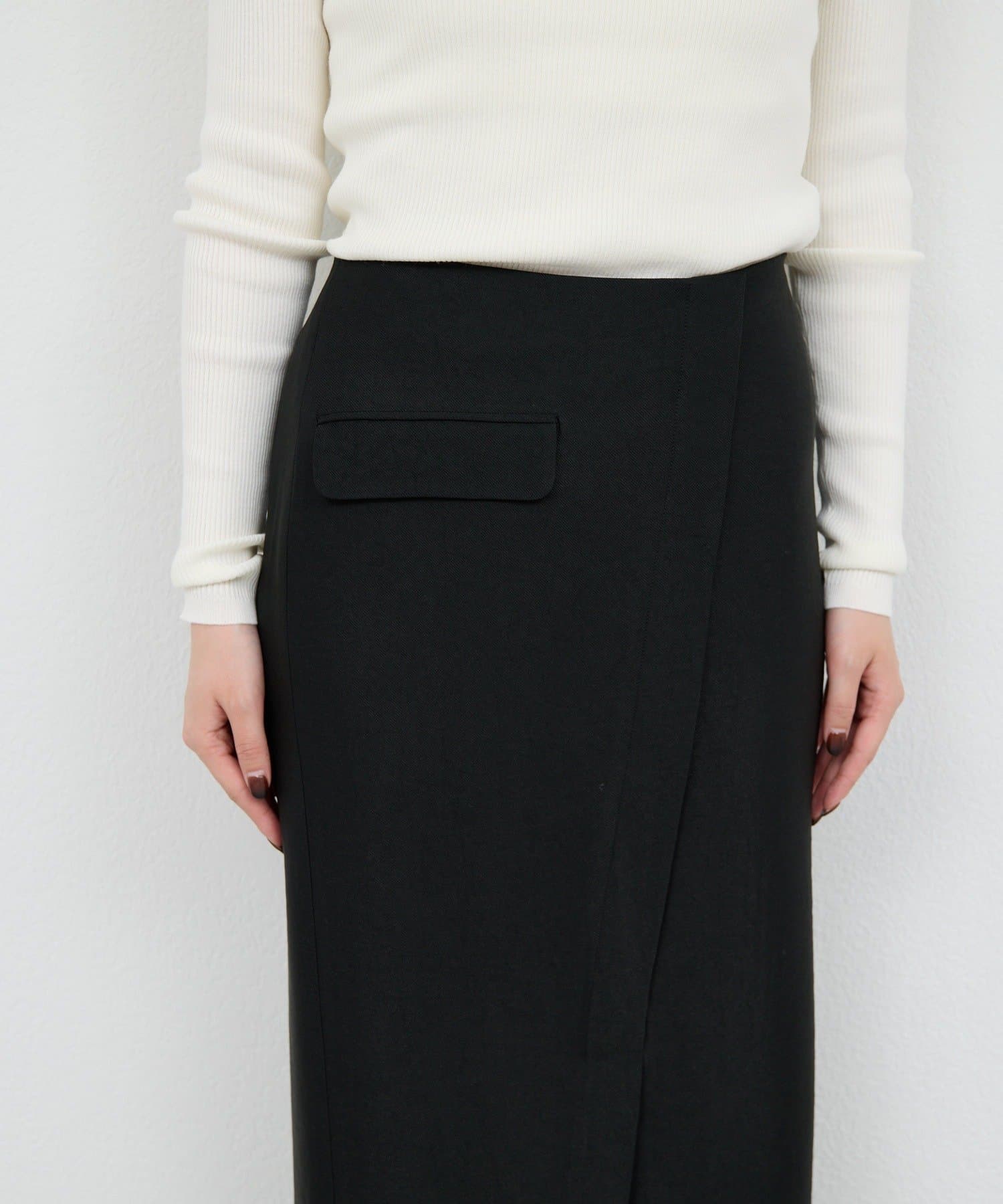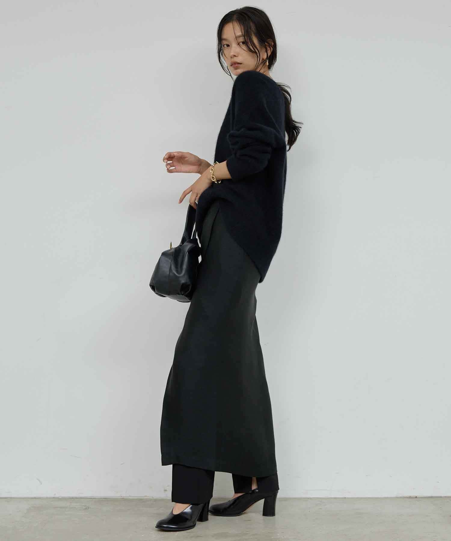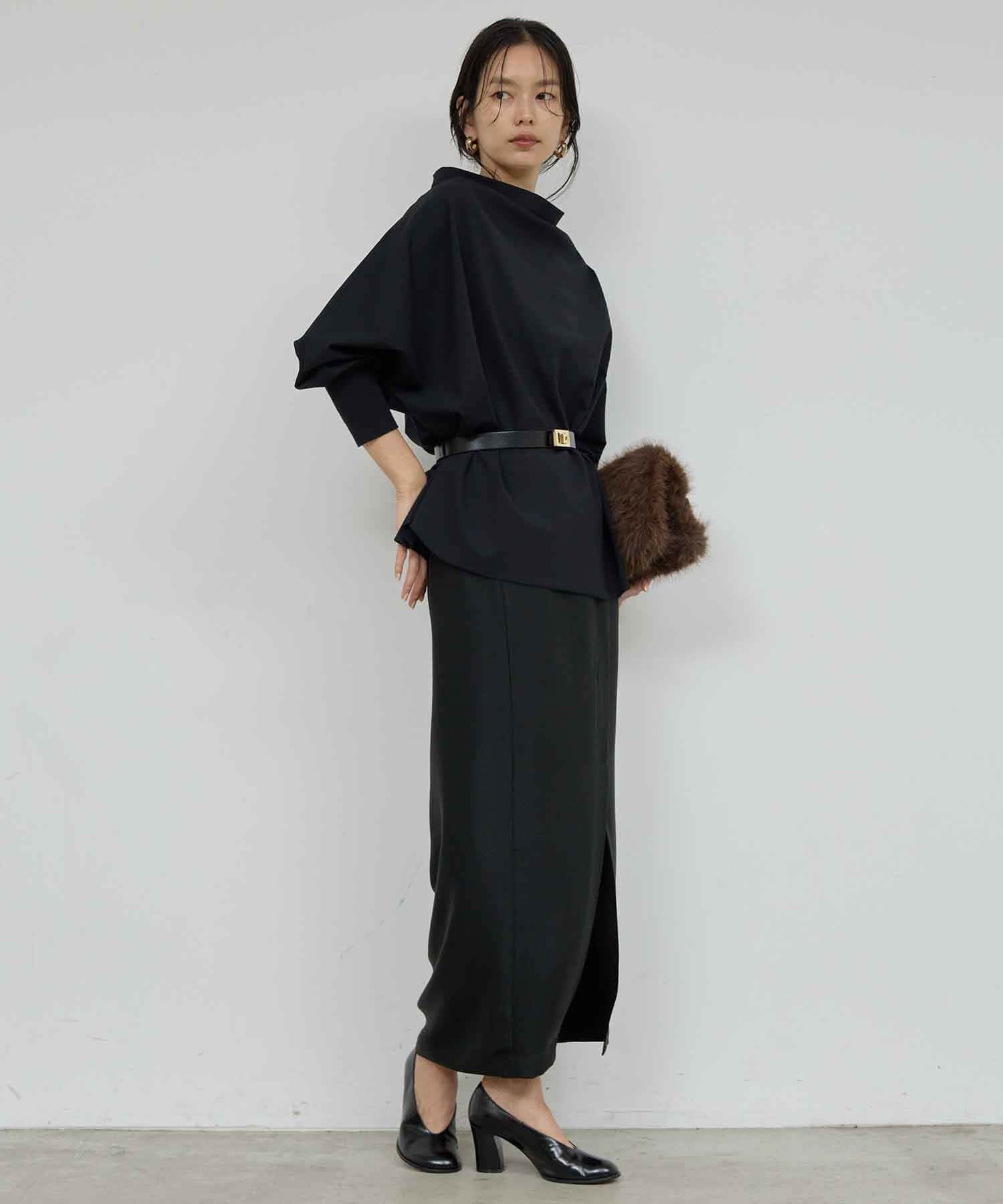 ●フロントの重なりとスリットで上品さと抜け感を両立。