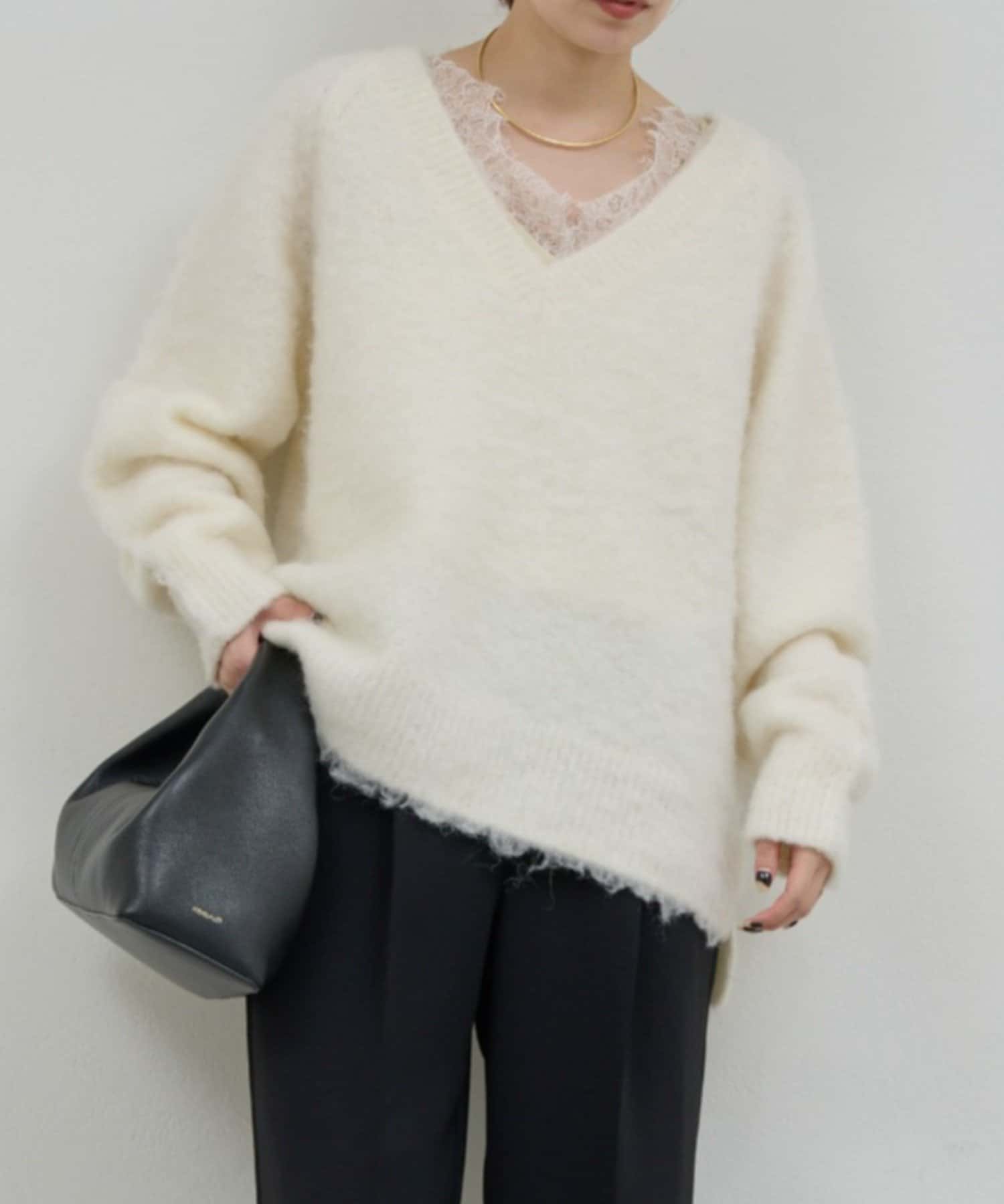 ●ネックラインにあしらわれた繊細なレースは女性らしい印象。