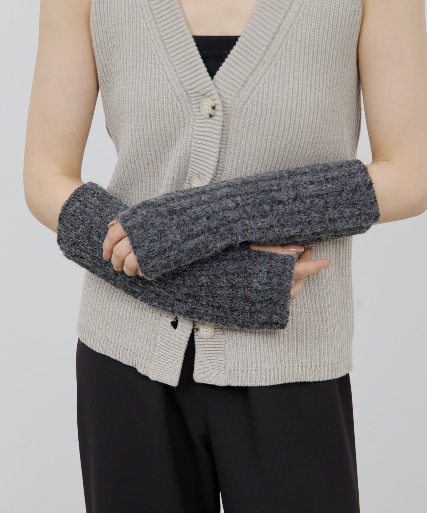 スタイリングのアクセントになるニットアームウォーマー