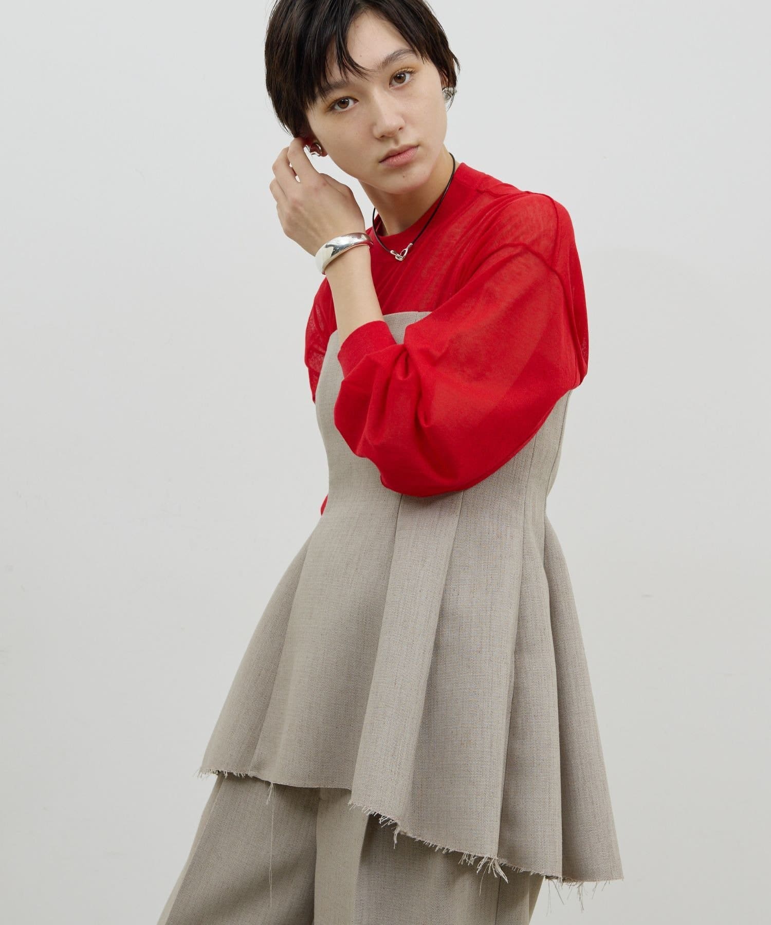 ●Tシャツ、タートルニット、ブラウスと合わせて、旬のレイヤードスタイルを楽しむのも◎