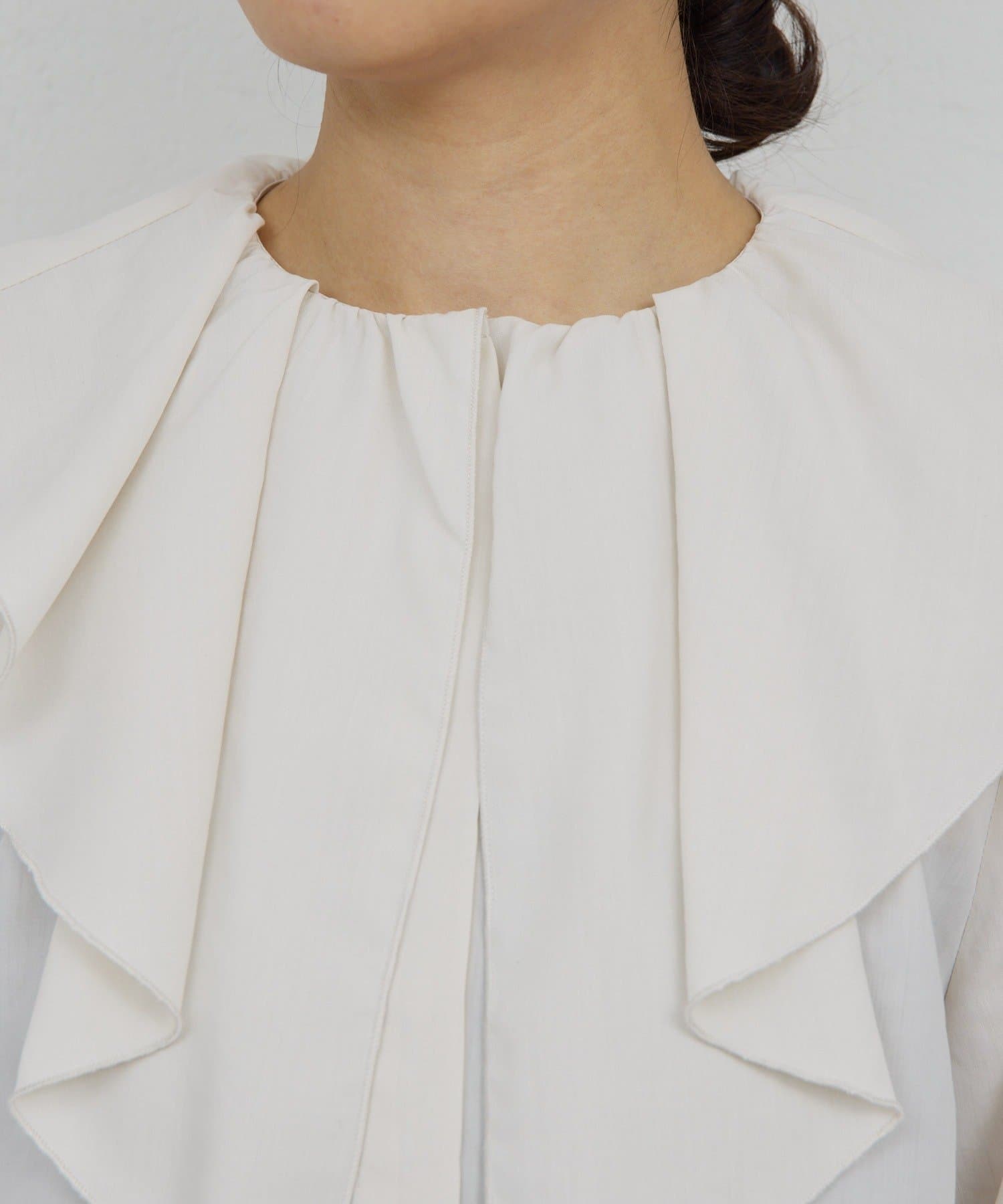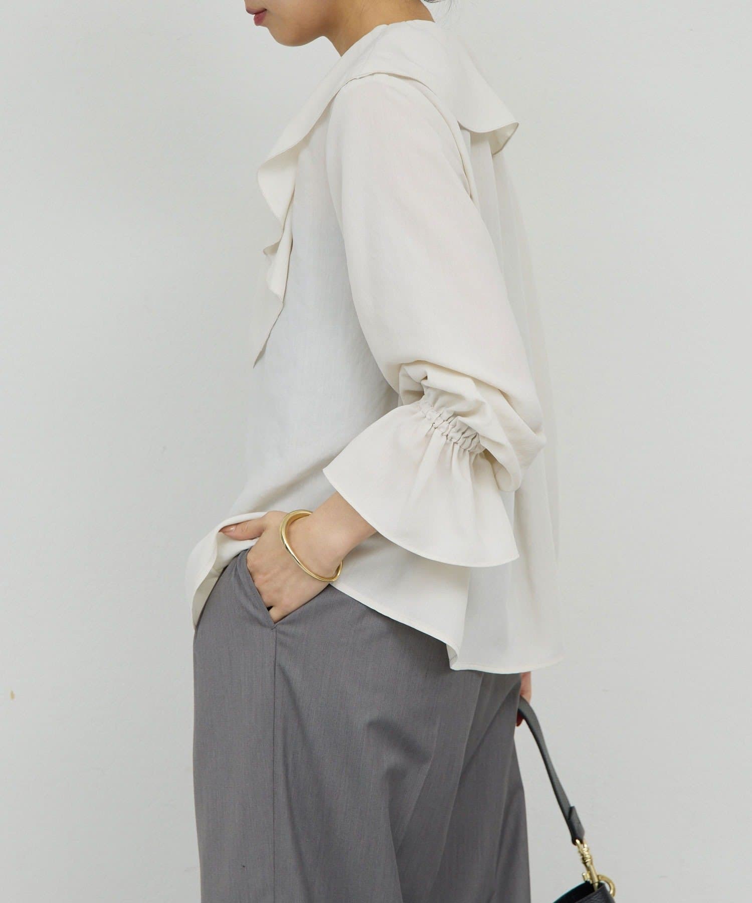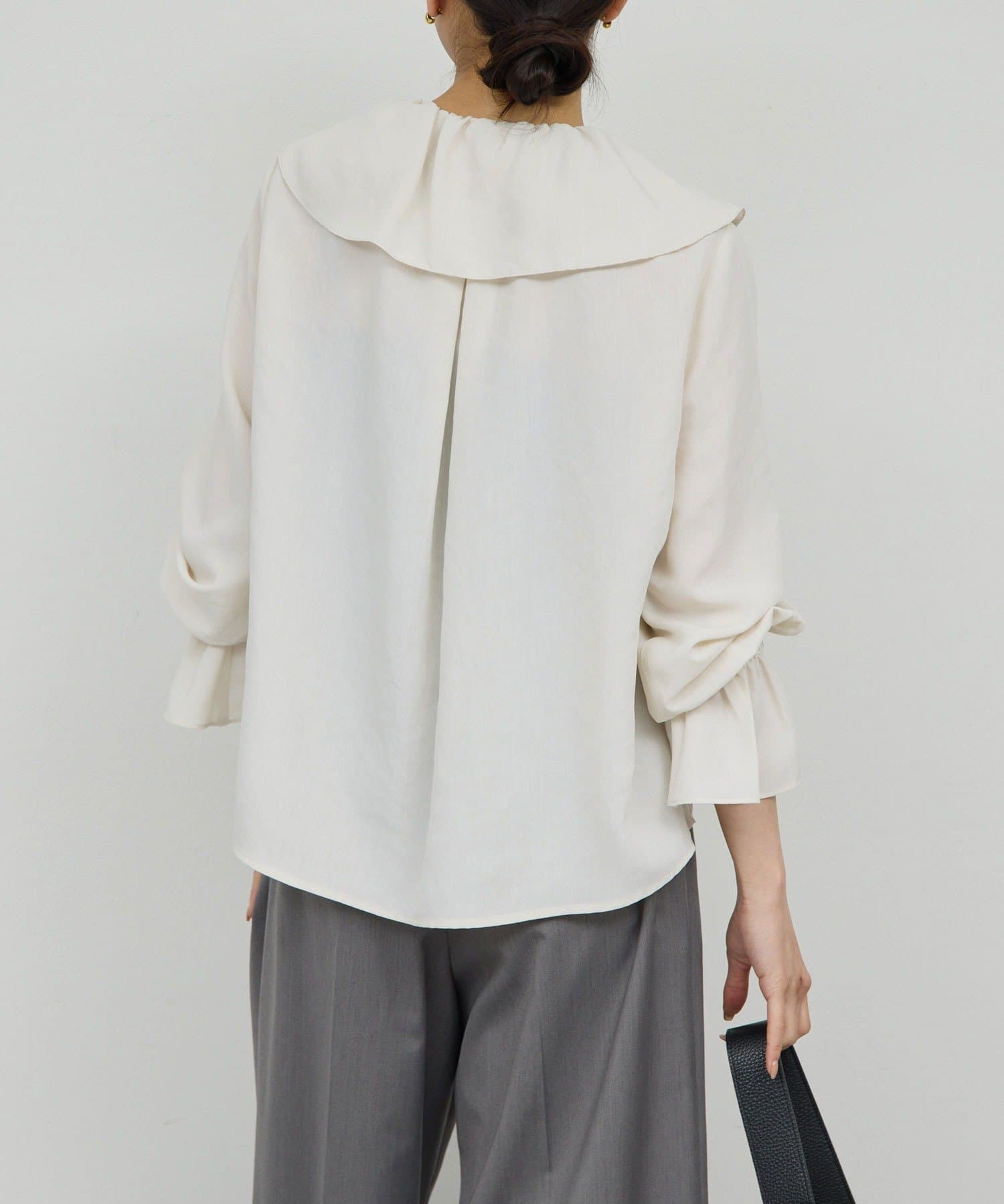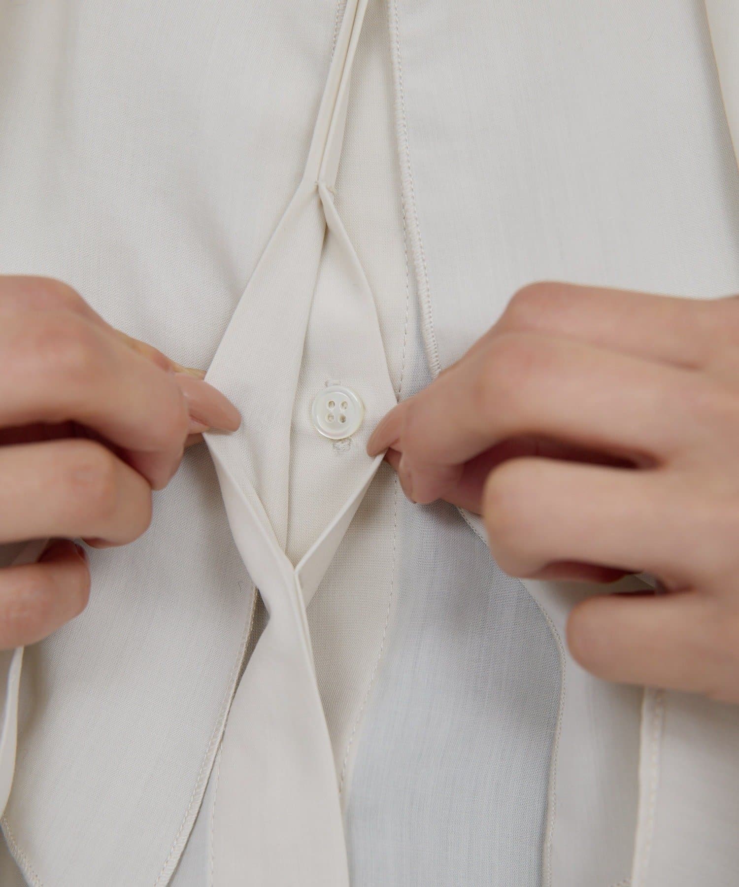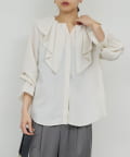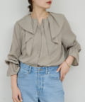 ●滑らかで肌あたりの良い素材を使用したデザインブラウス。
