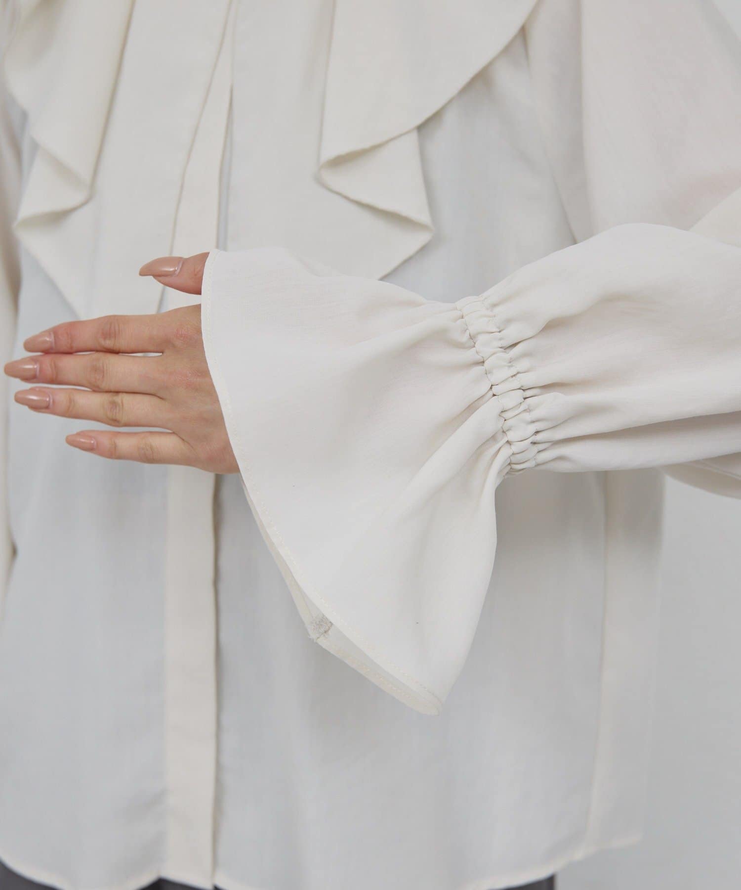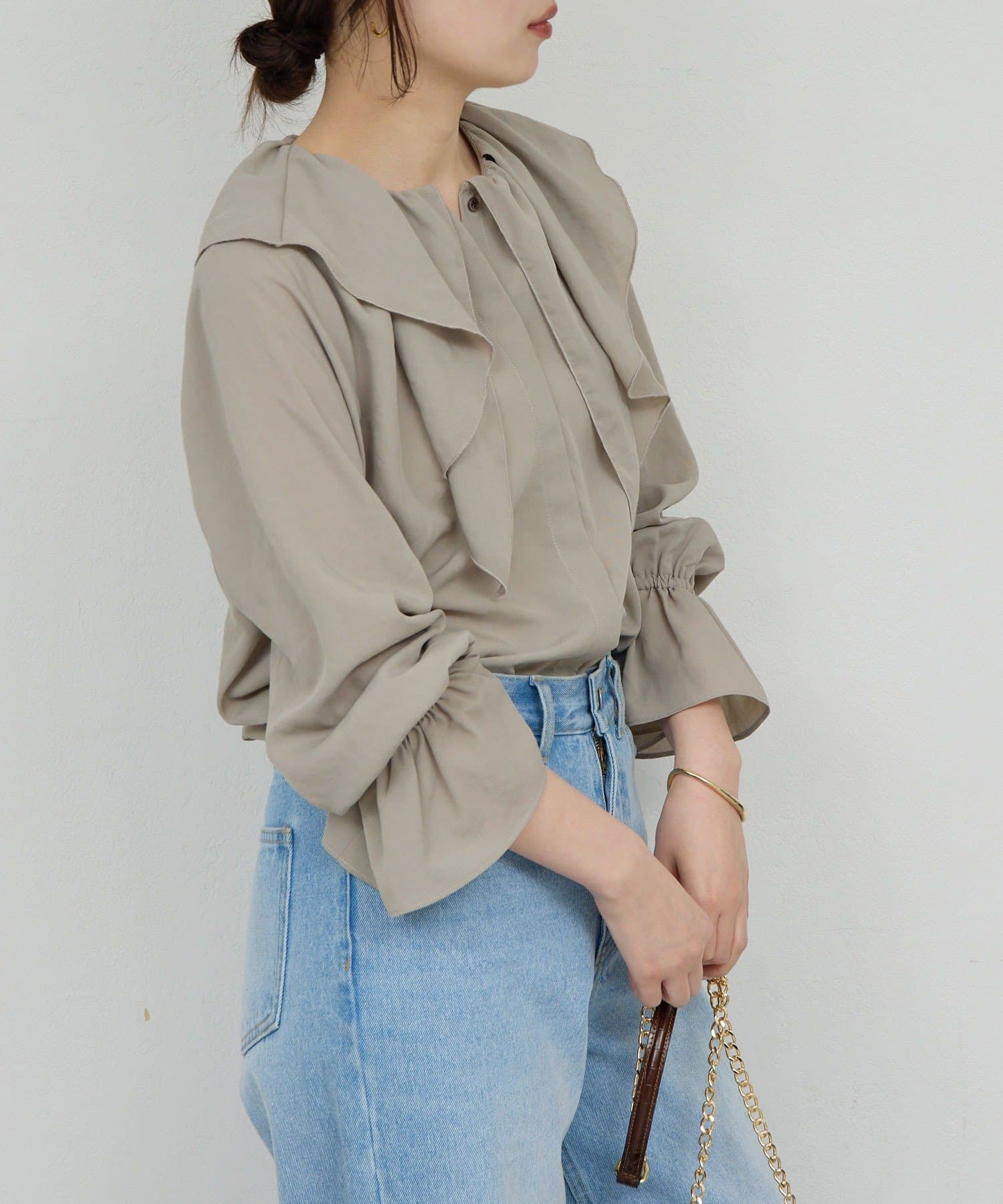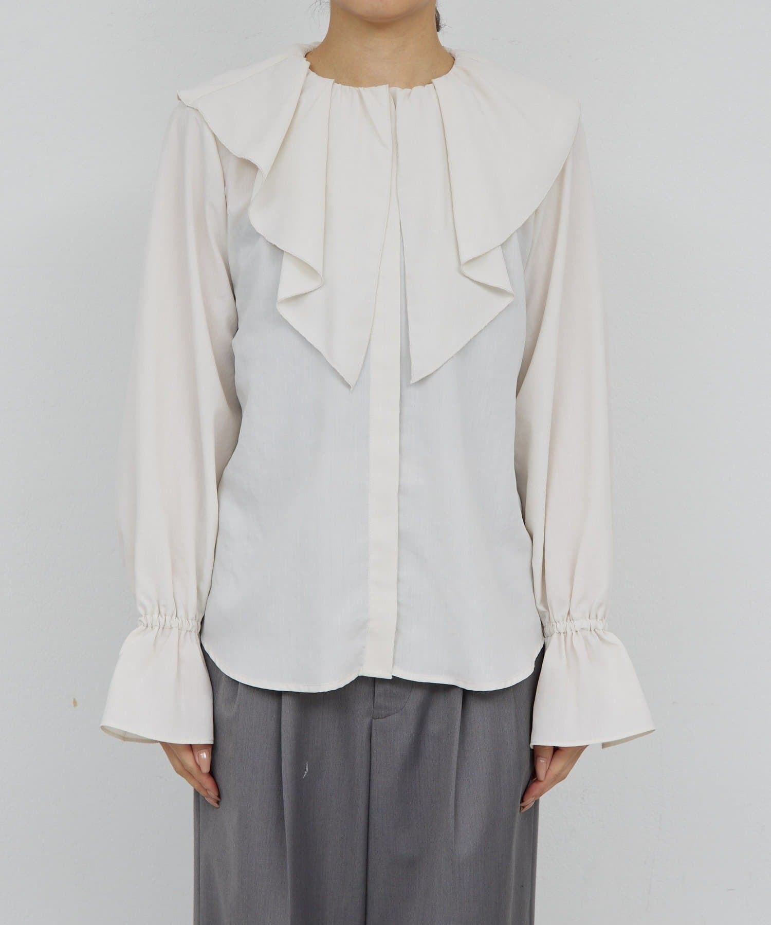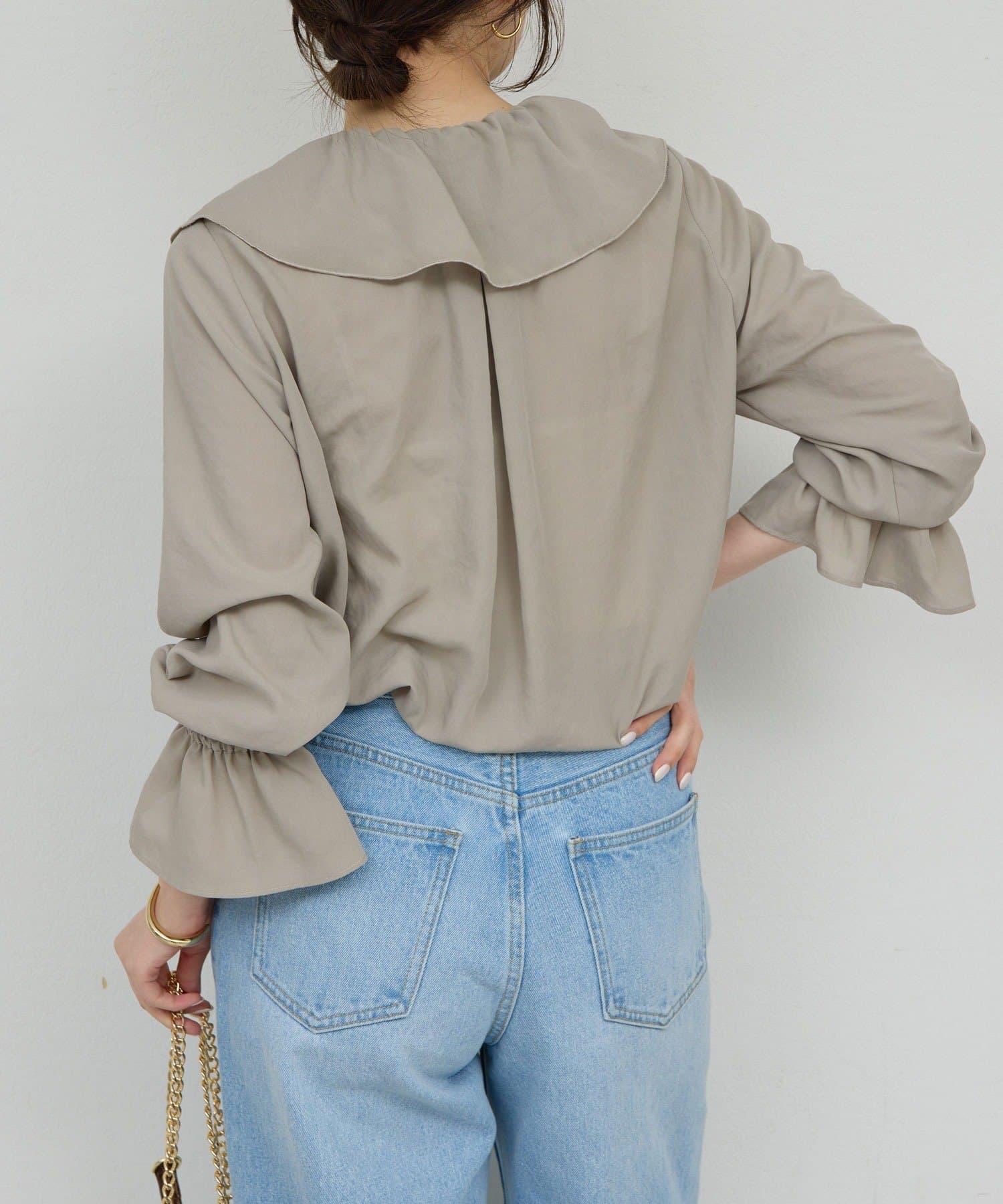 ●滑らかで肌あたりの良い素材を使用したデザインブラウス。