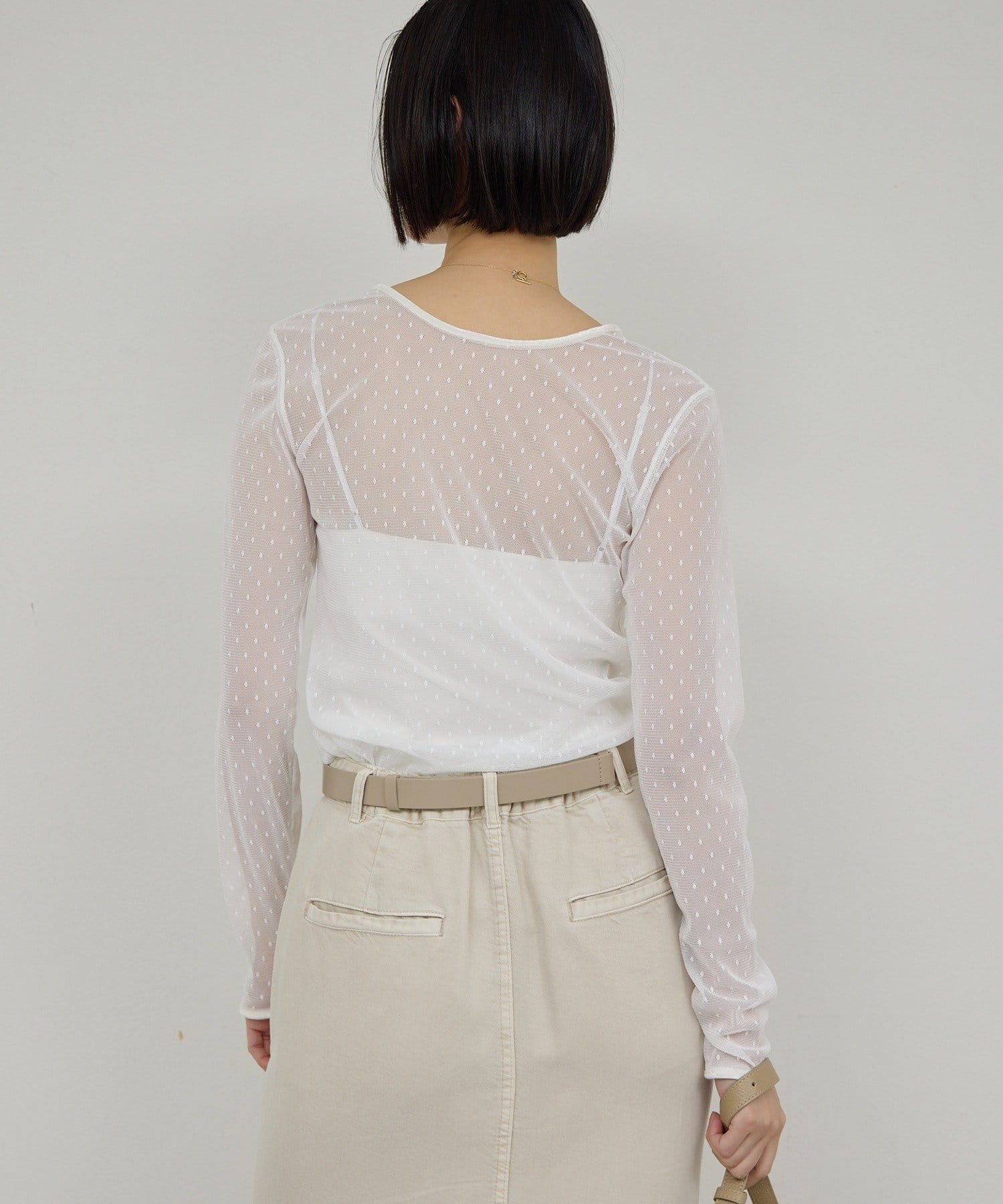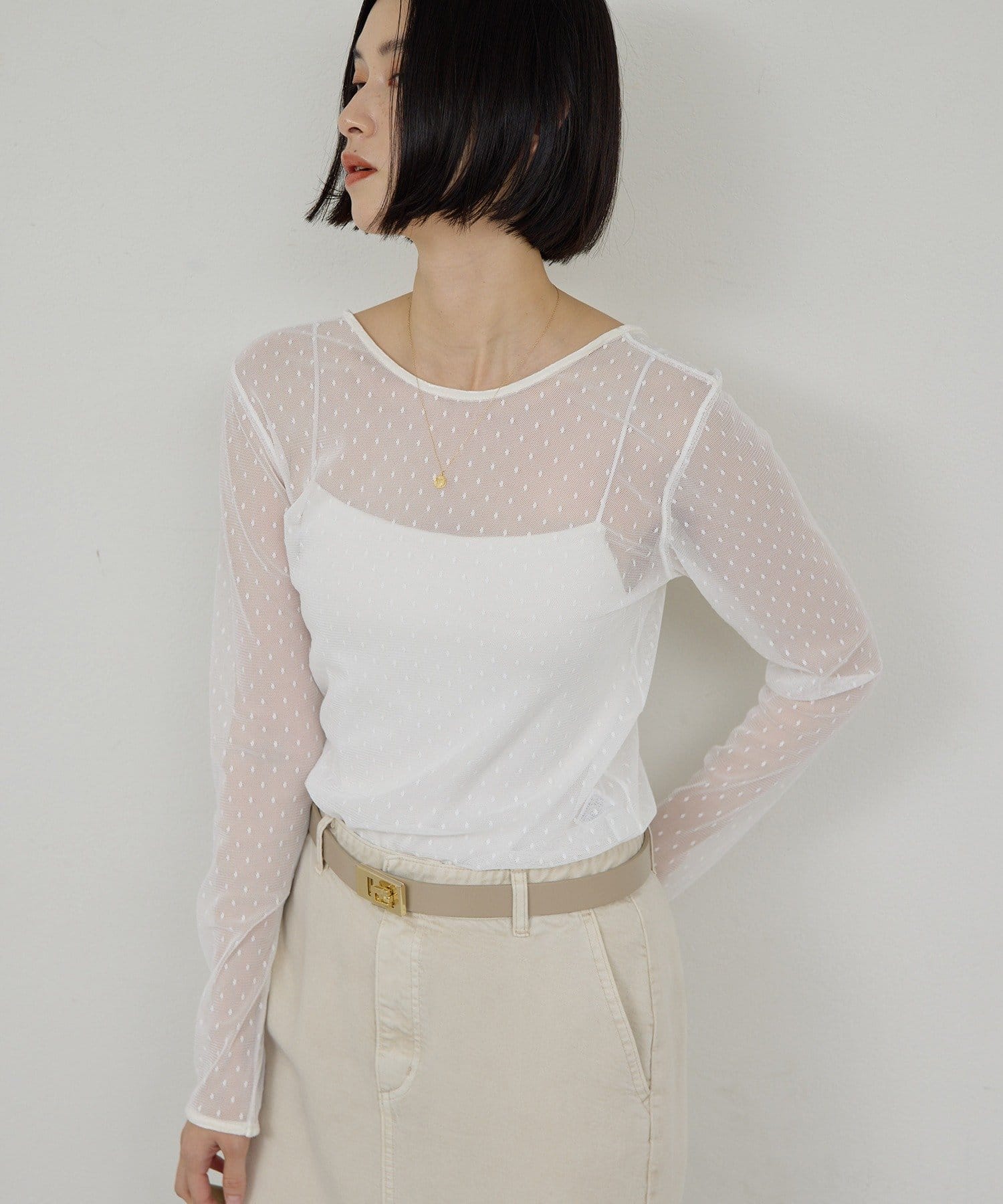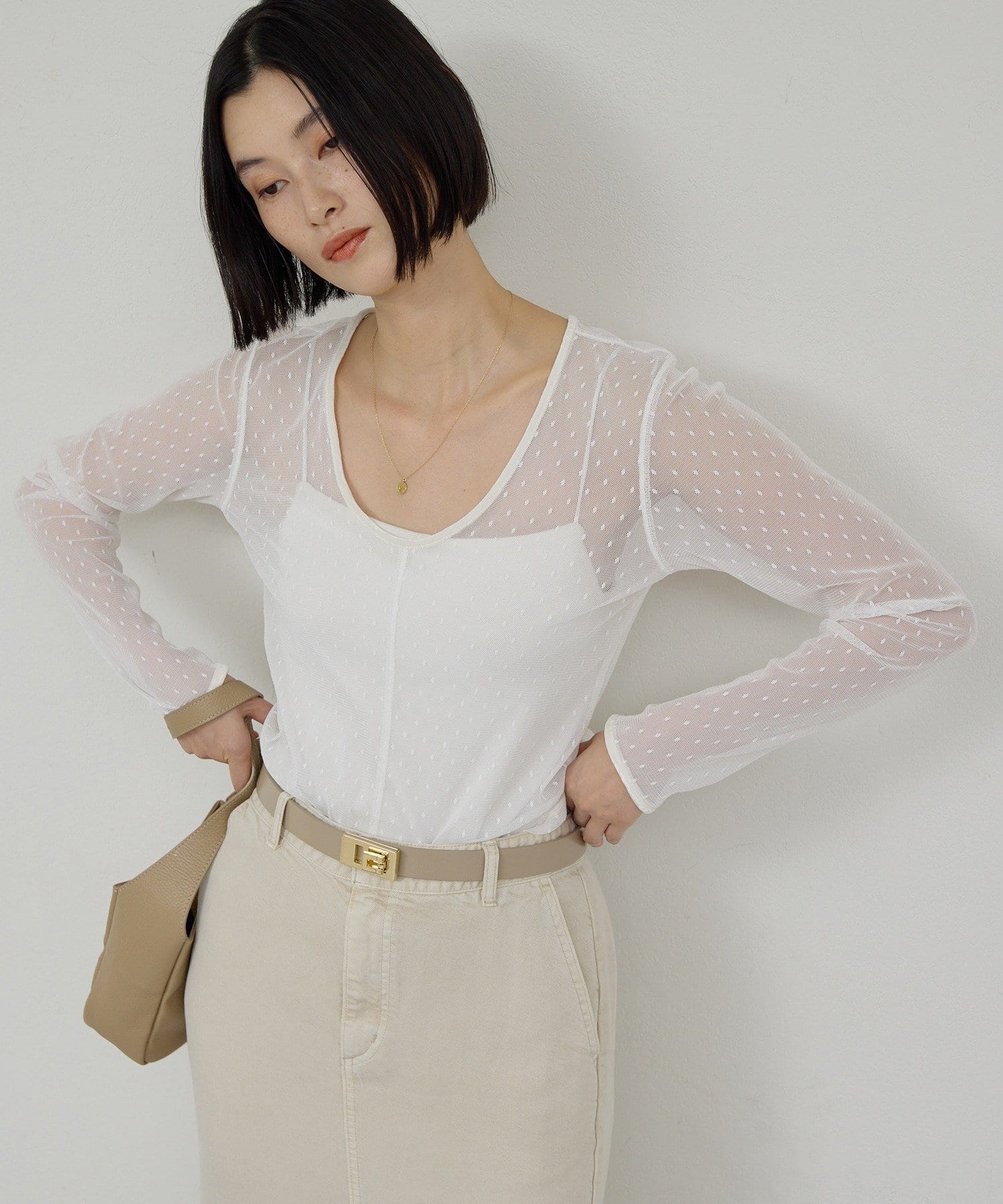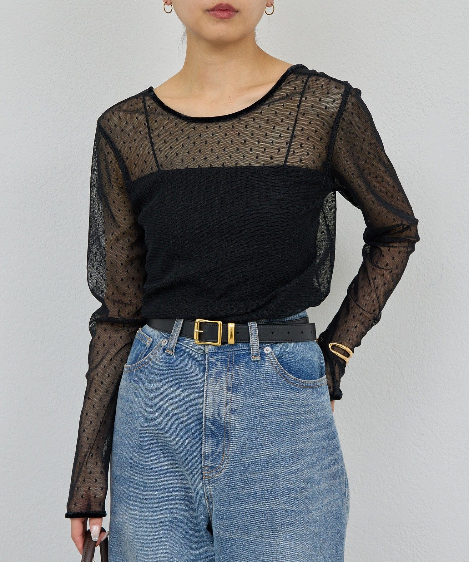 ●シアー素材が甘すぎない印象をプラスするシアートップス。