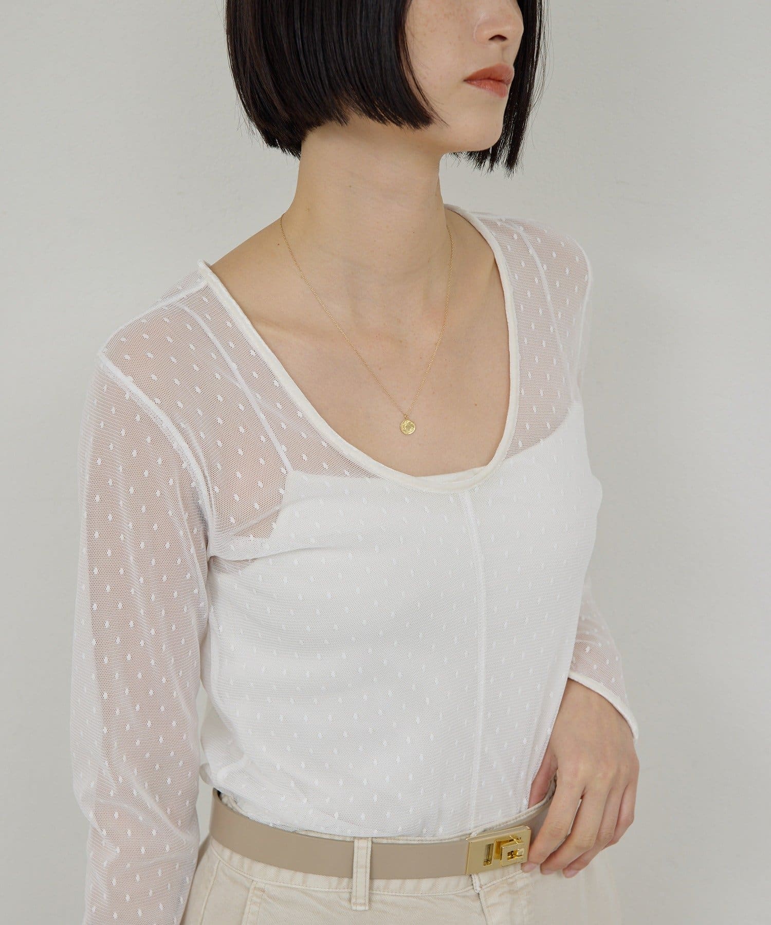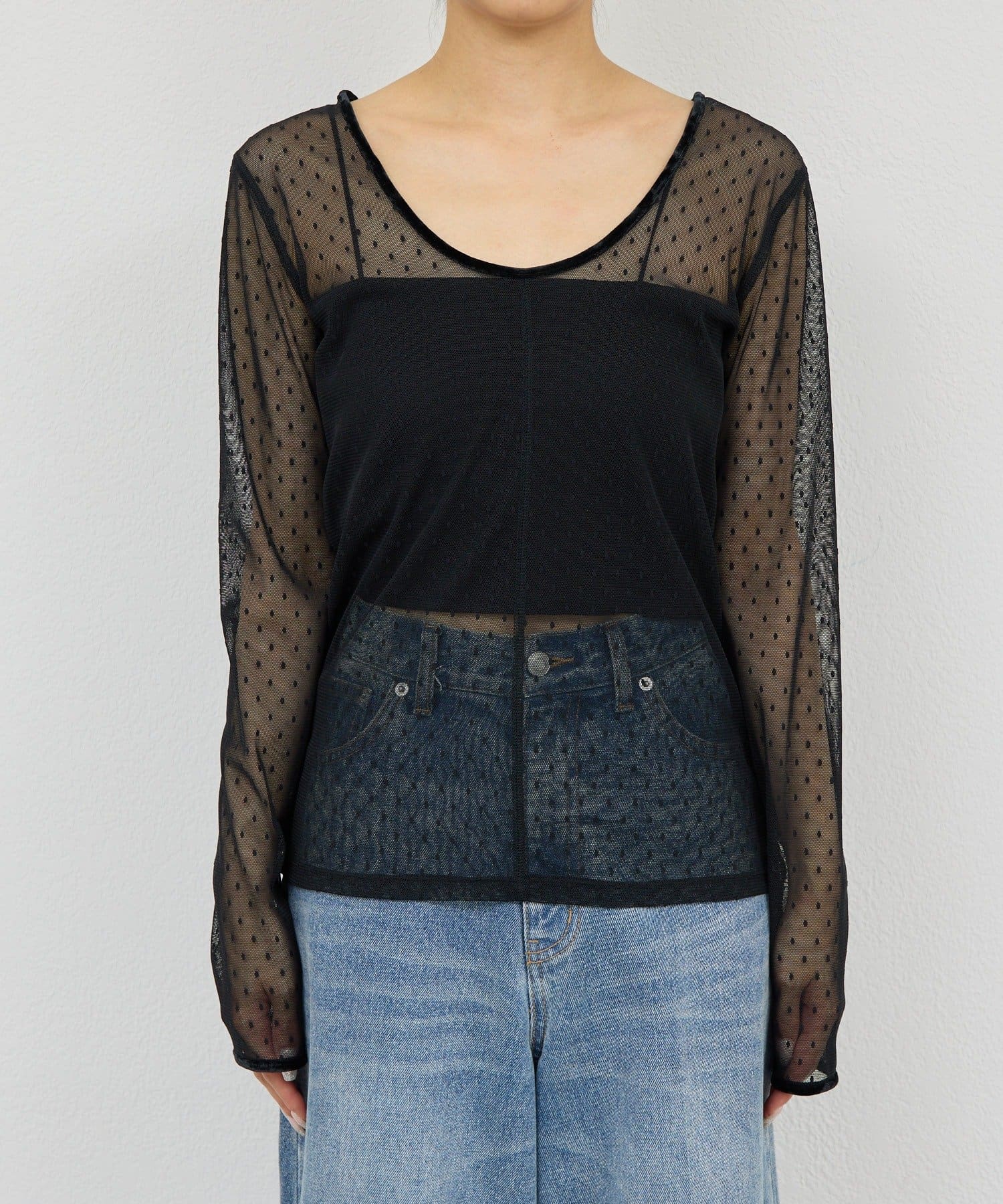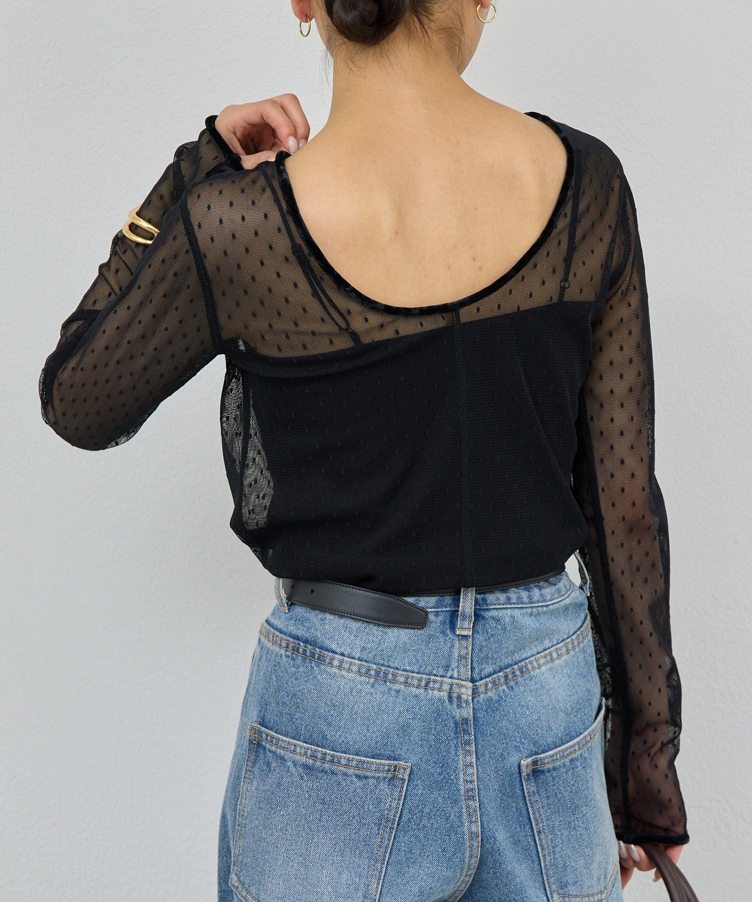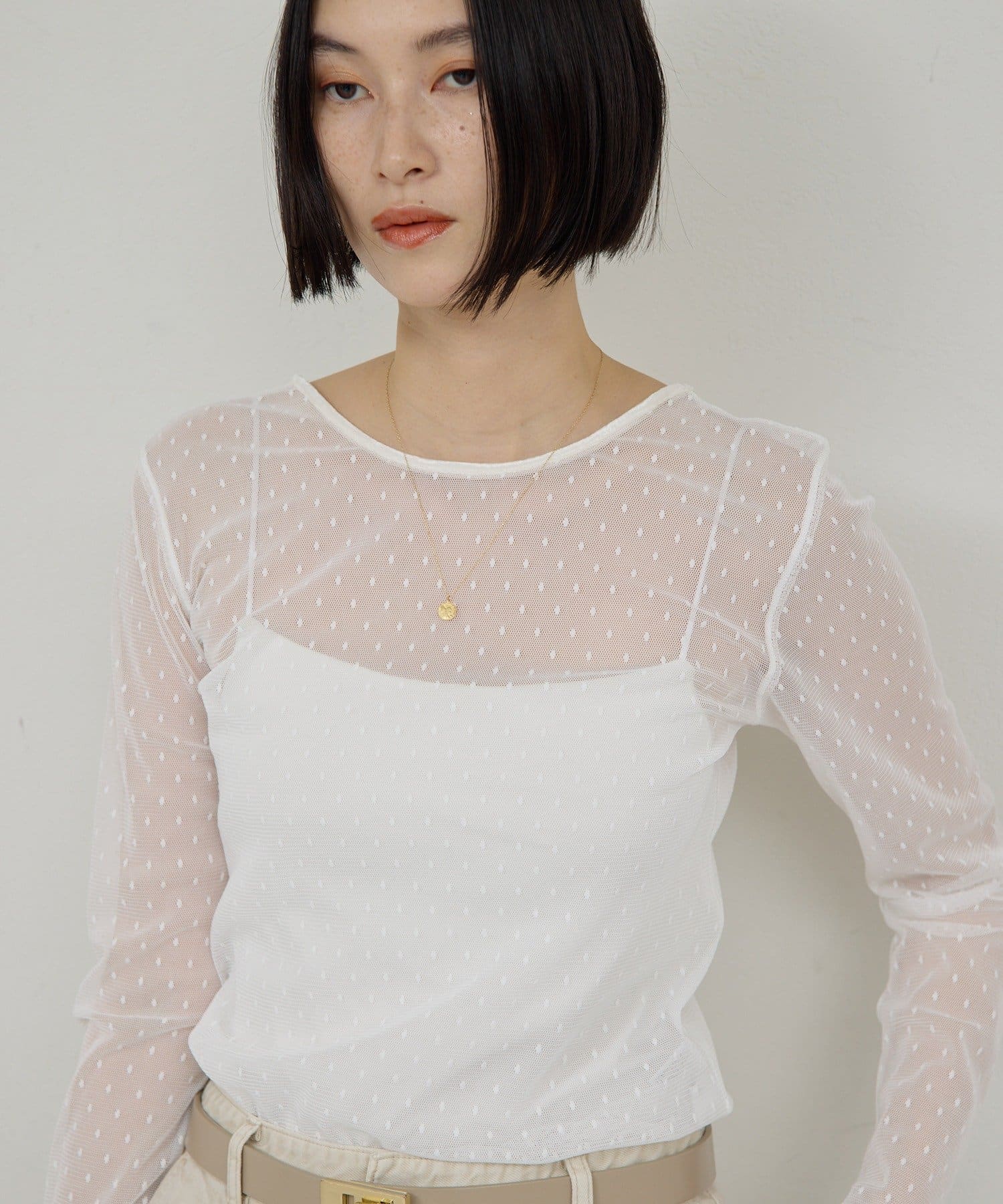 ●シアー素材が甘すぎない印象をプラスするシアートップス。