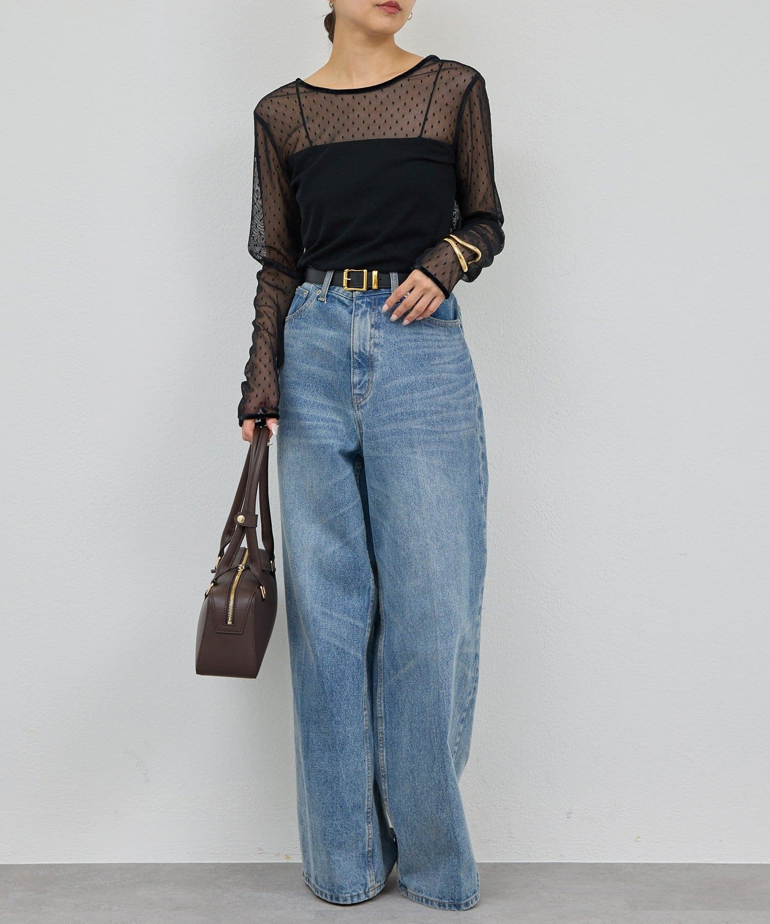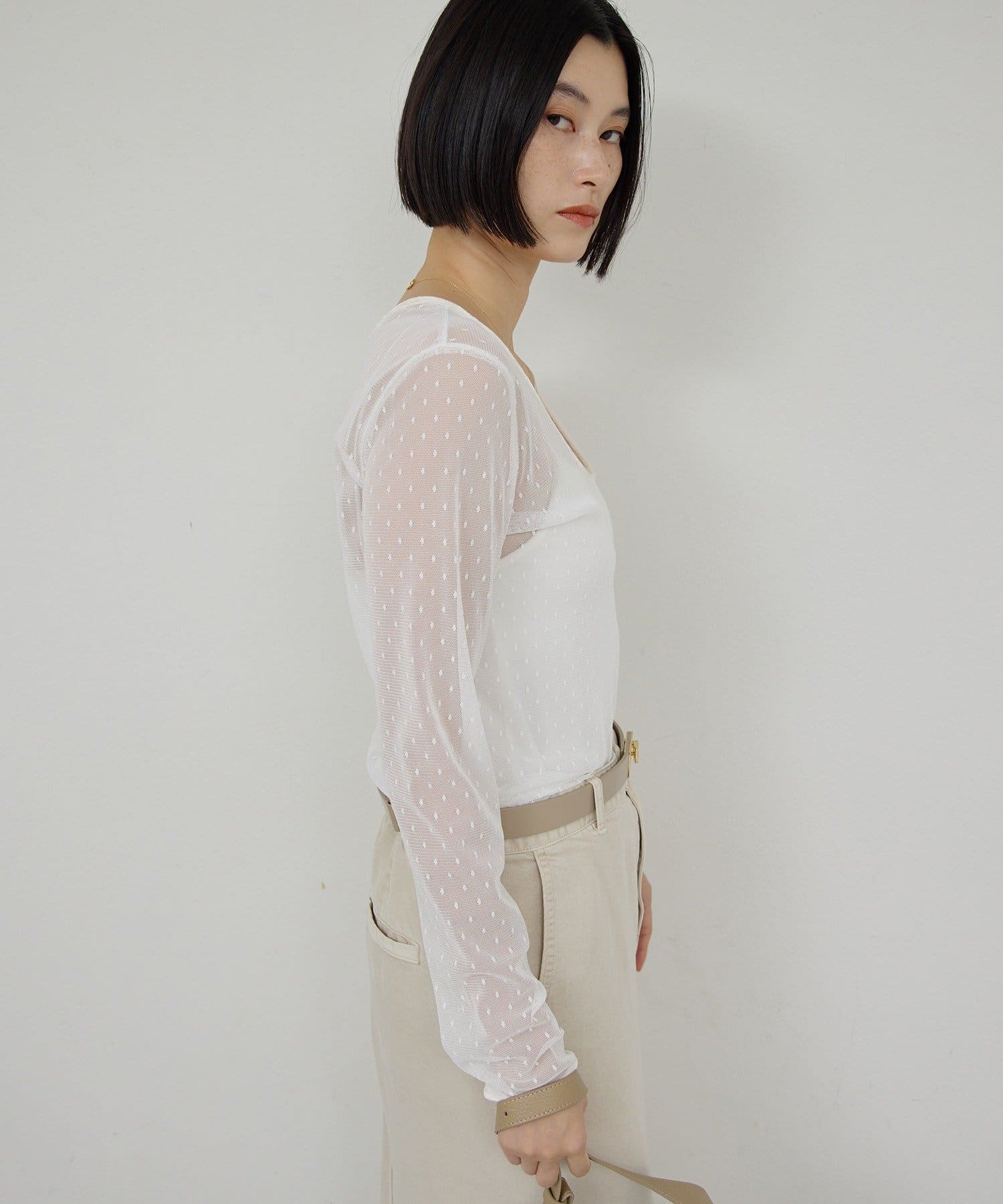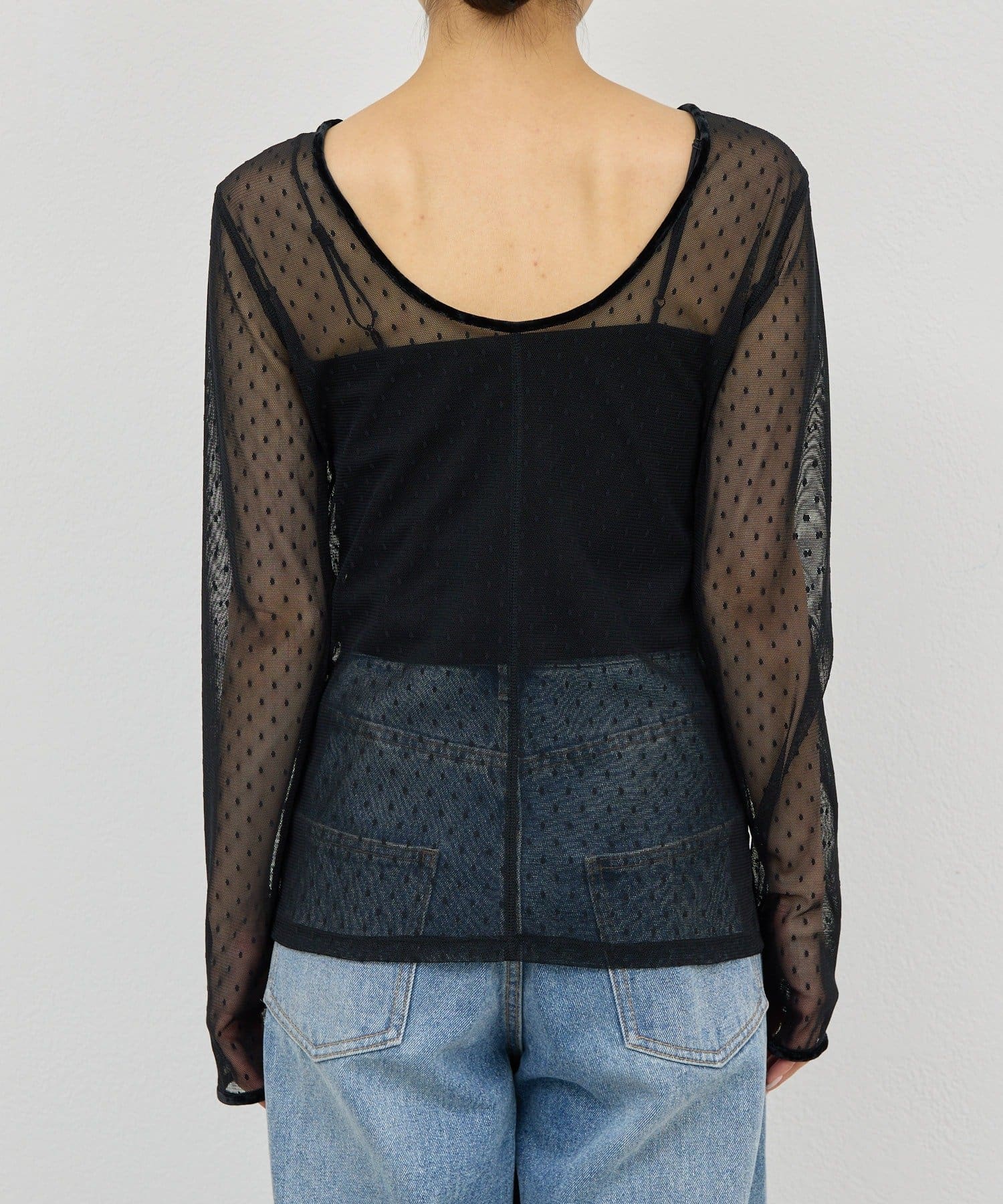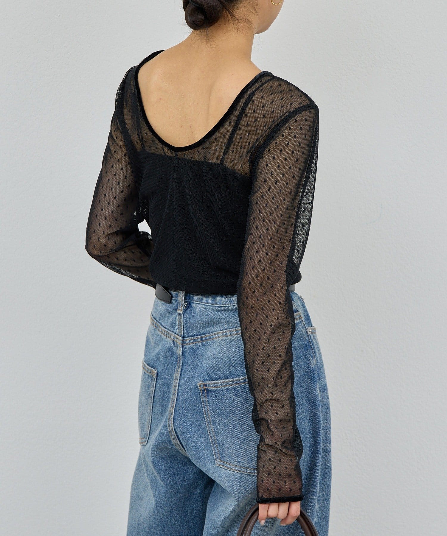 ●シアー素材が甘すぎない印象をプラスするシアートップス。