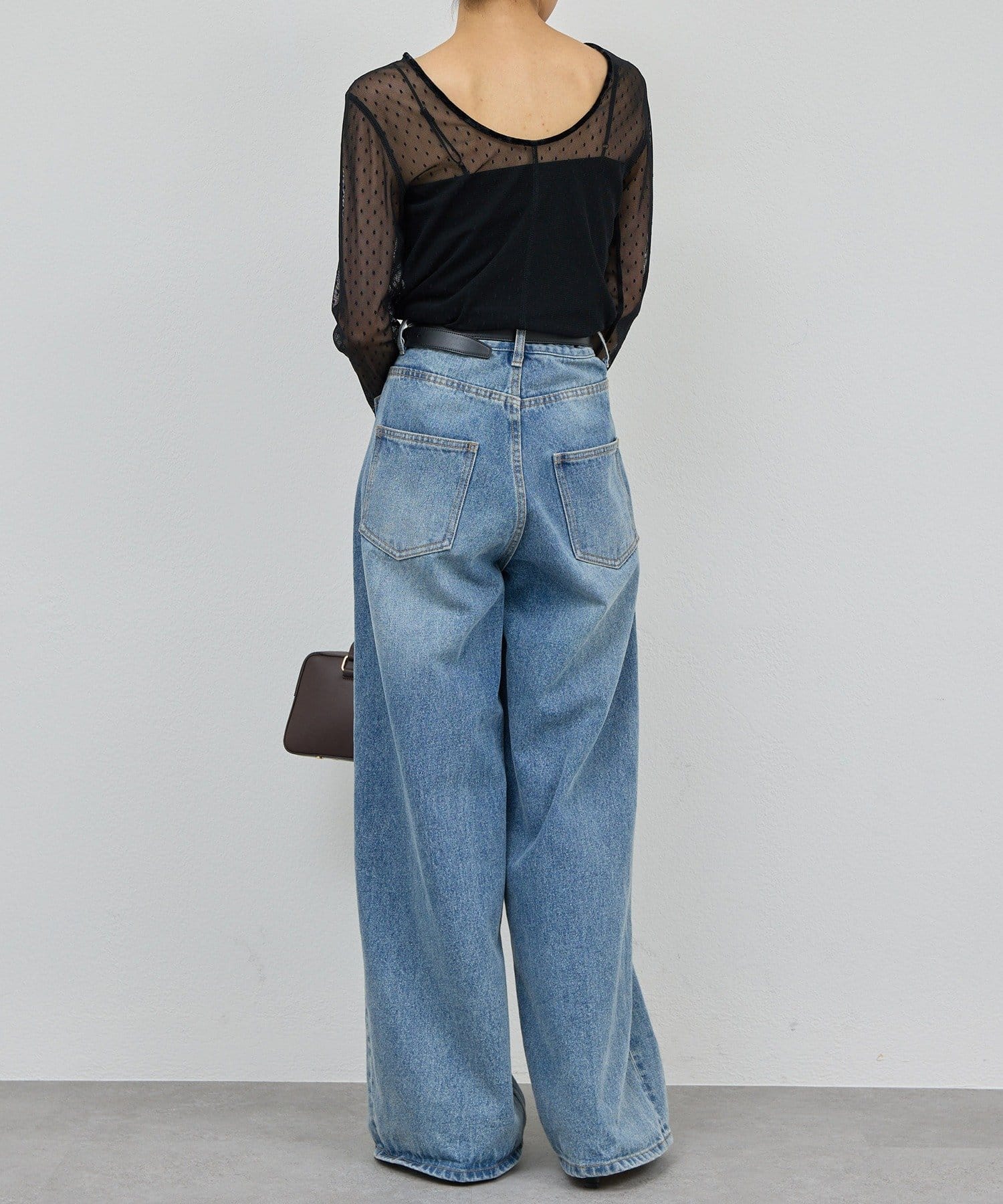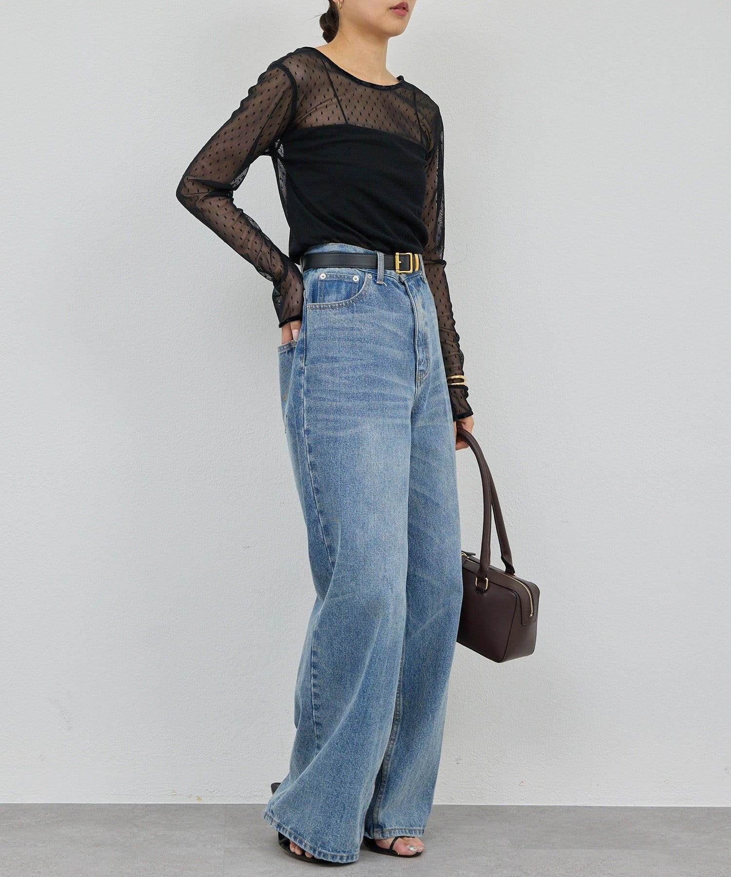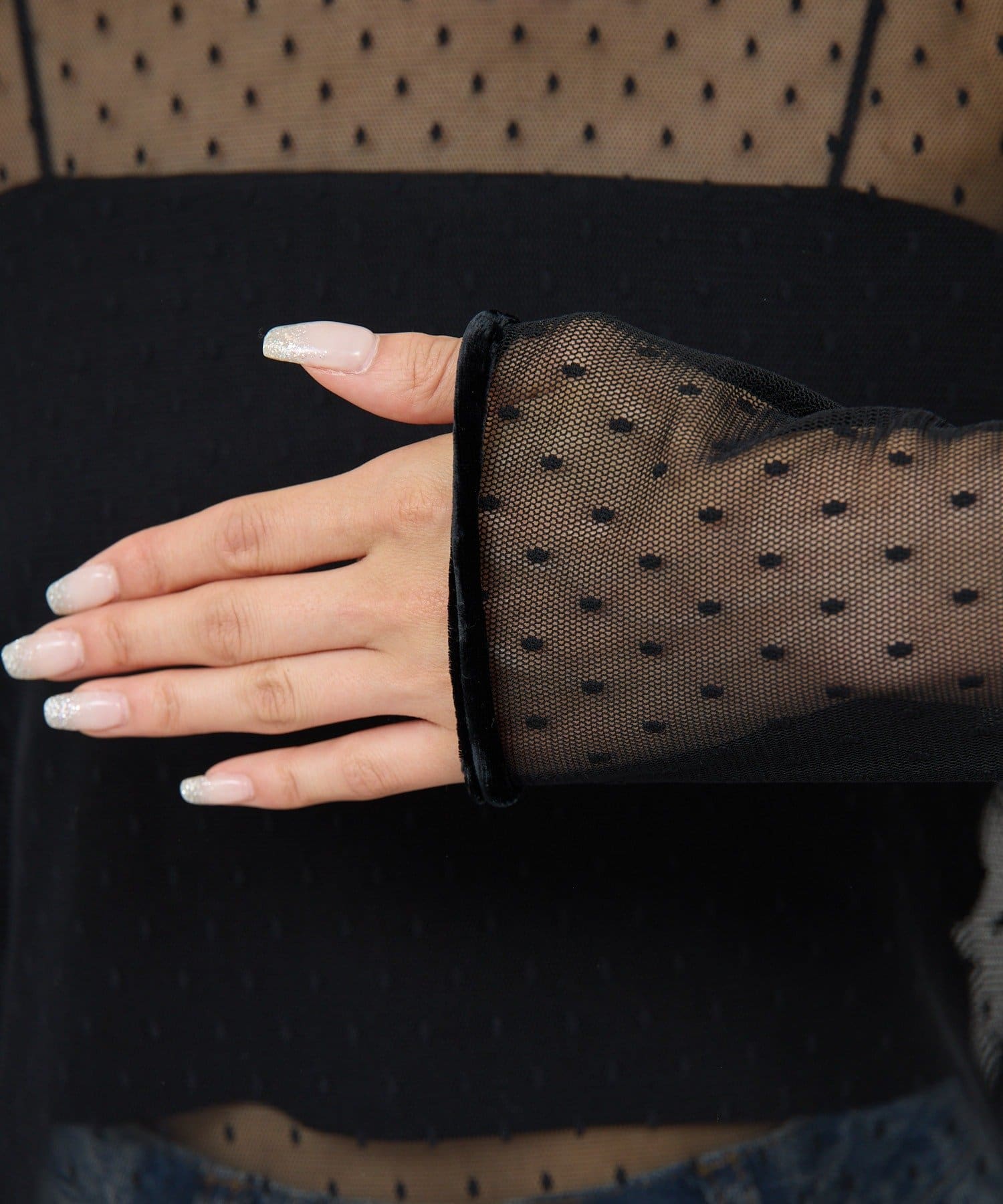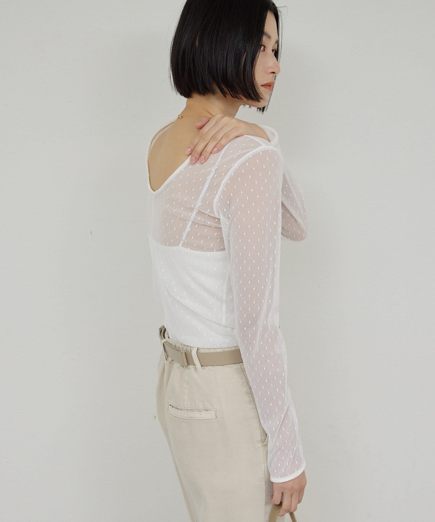 ●シアー素材が甘すぎない印象をプラスするシアートップス。