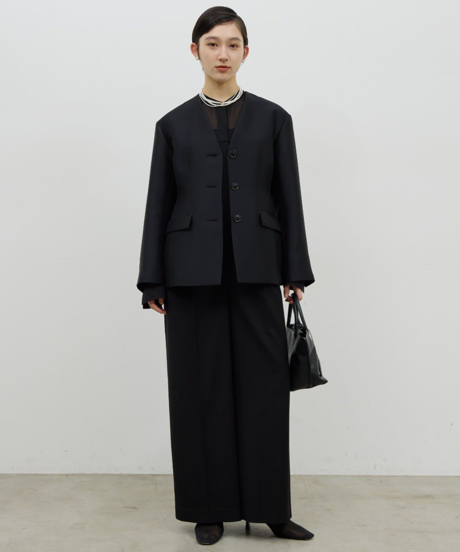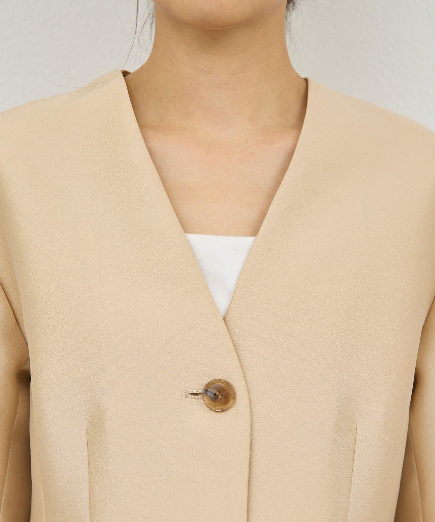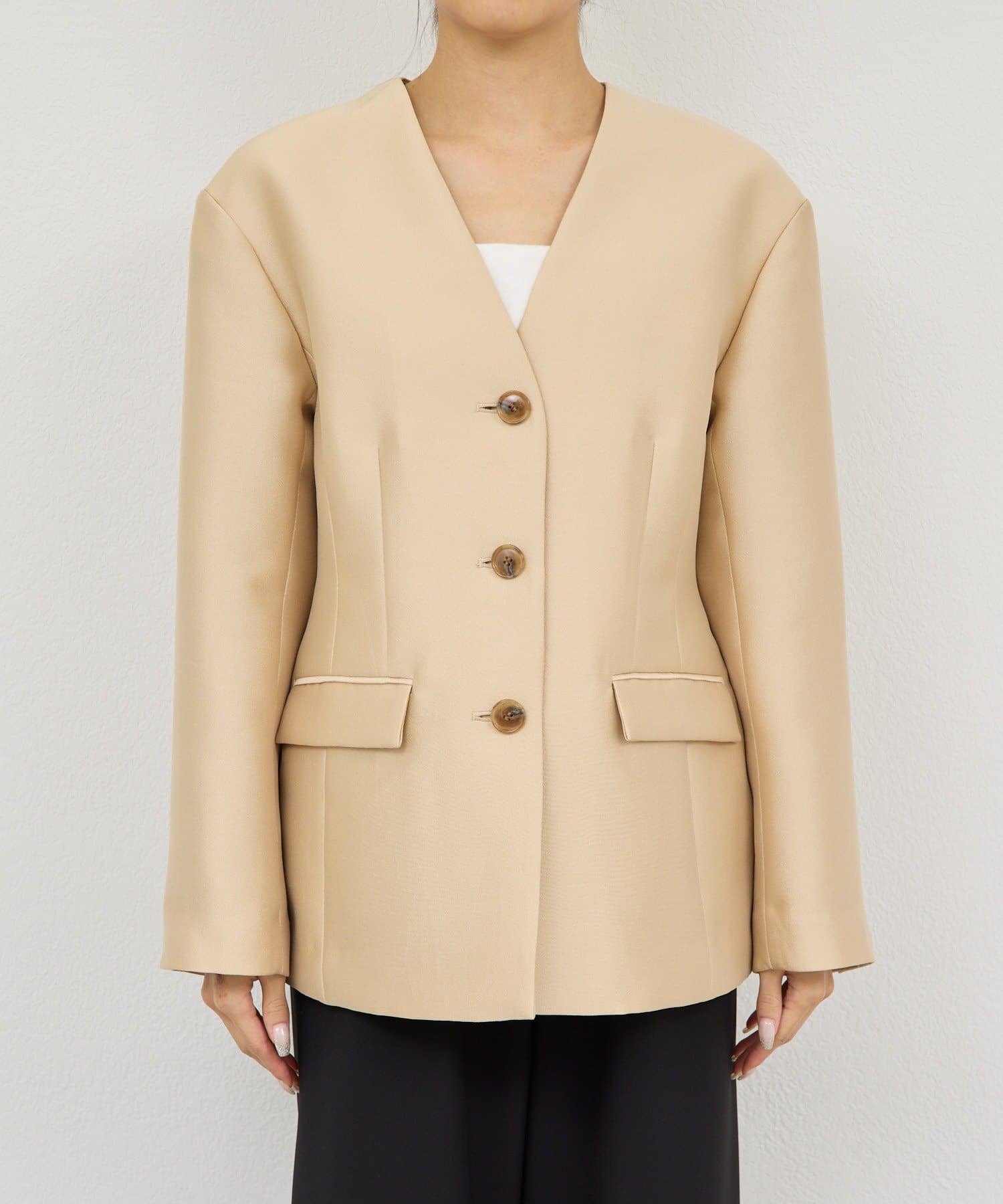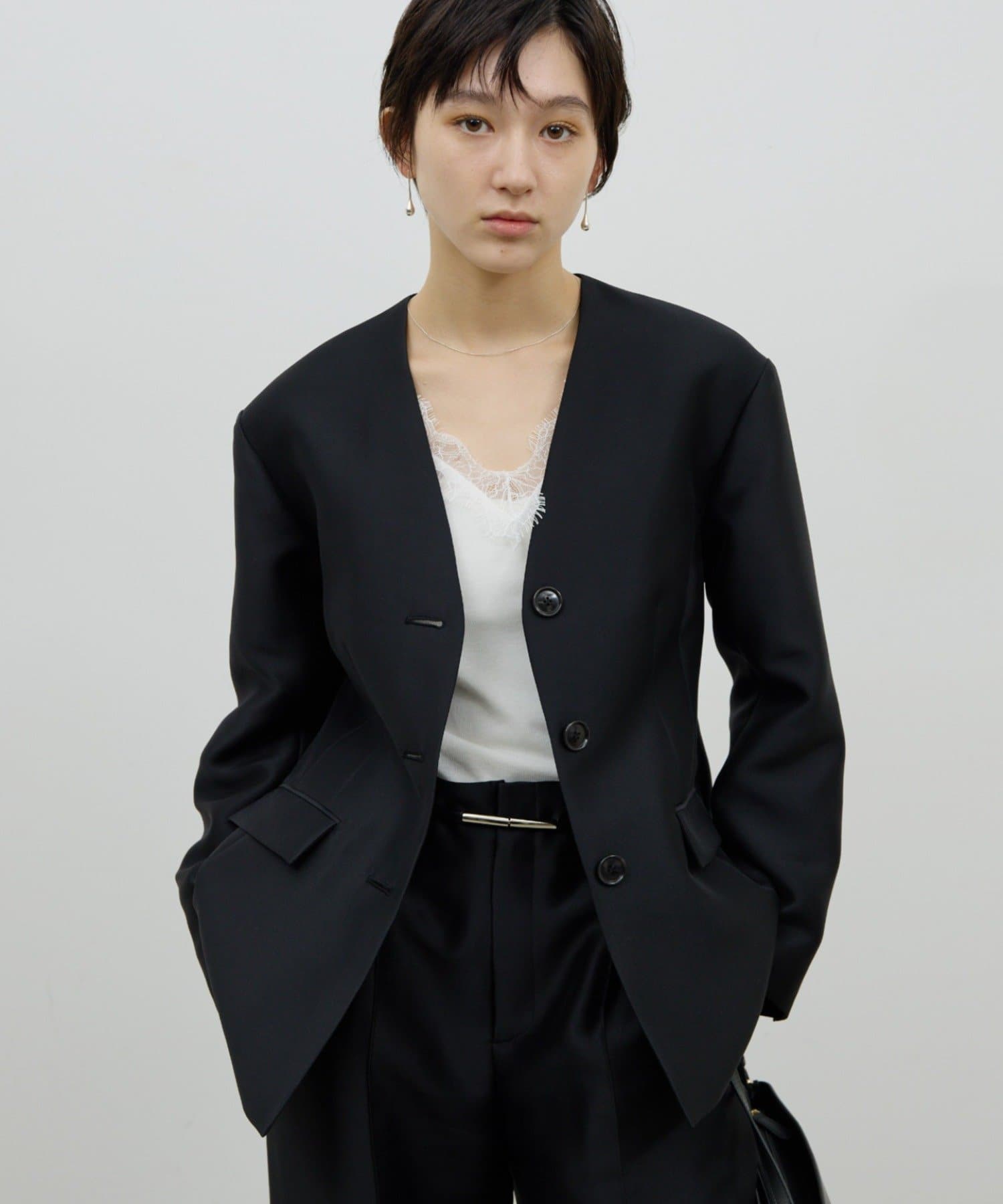 ●スマートなノーカラーデザインは顔周りをすっきりした印象に。