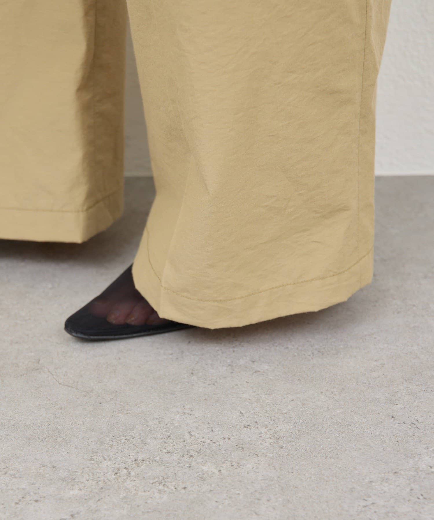 ●カジュアルダウンしすぎないシャリ感のある素材で、上品見えも叶える一着。
