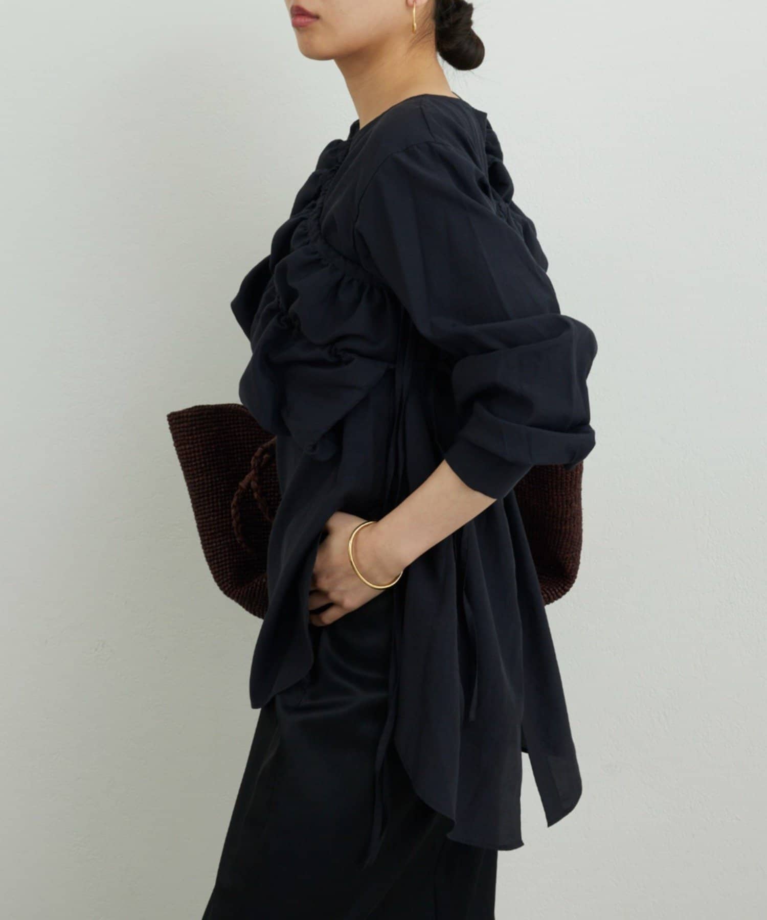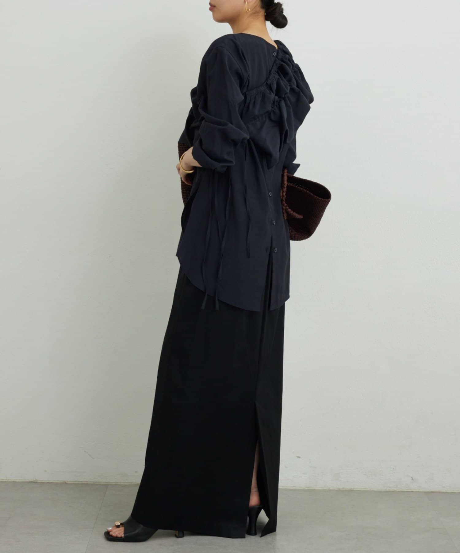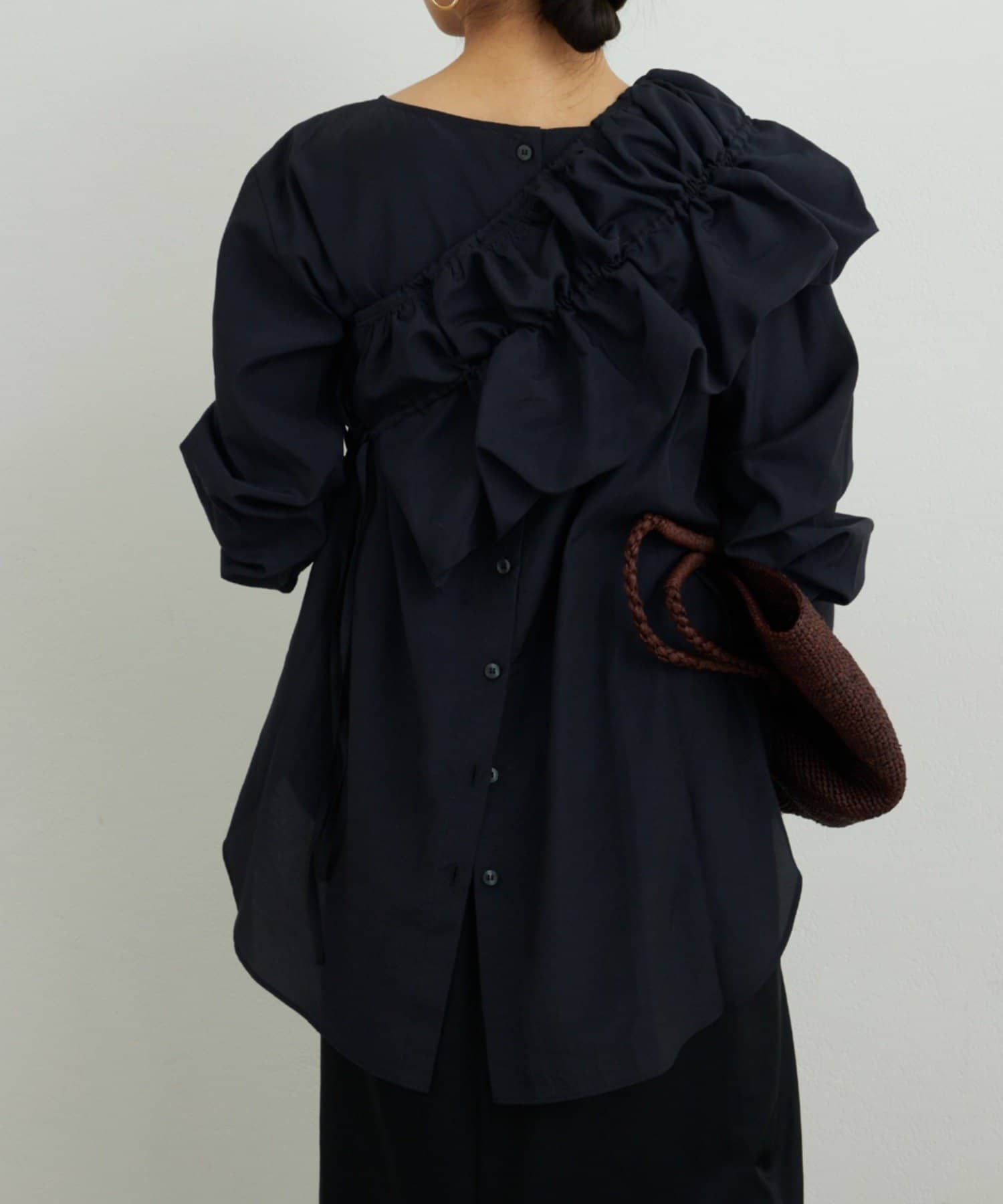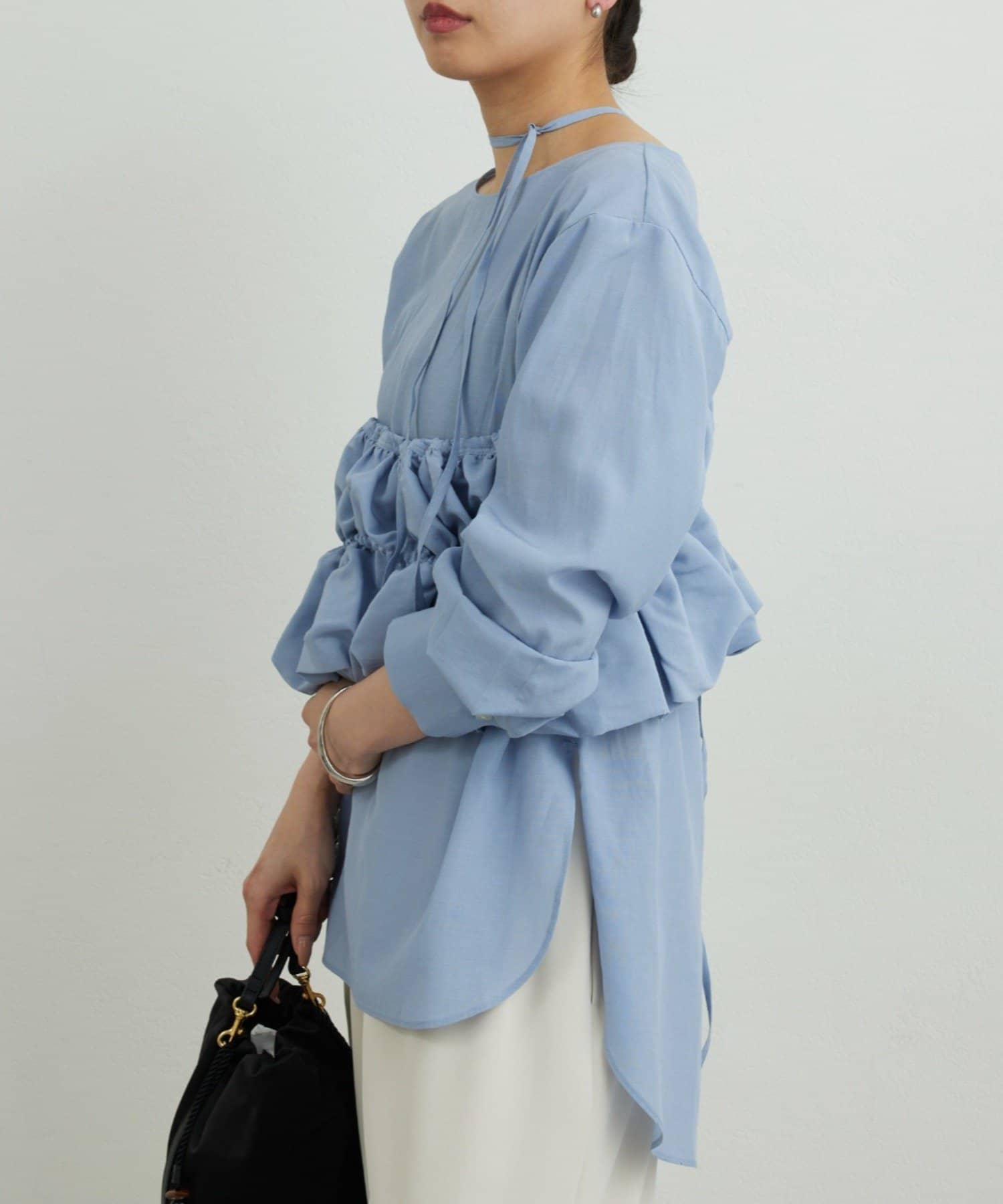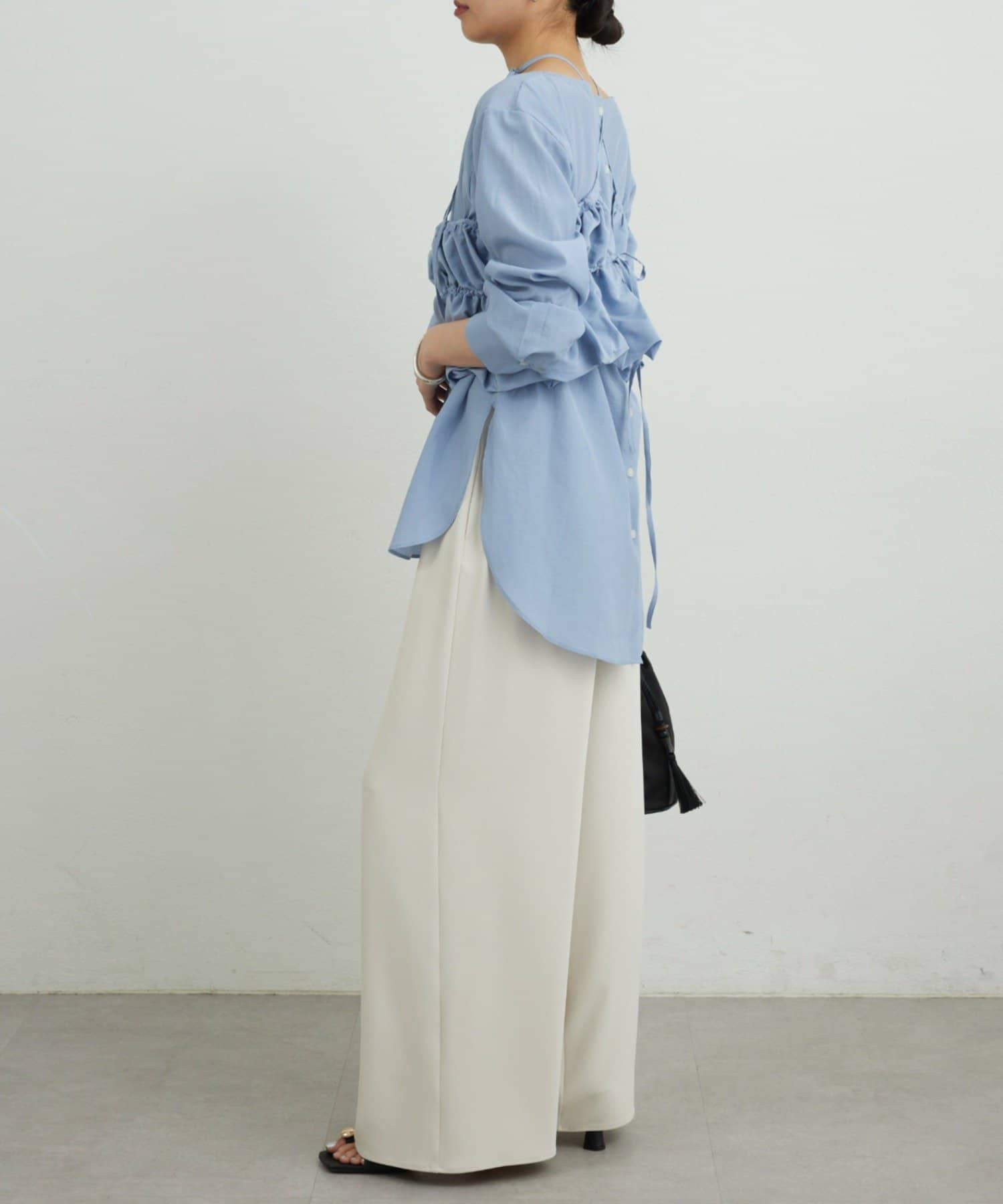 ●長めの着丈でヒップをカバーする安心感のあるシャツ。